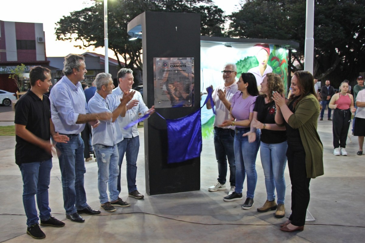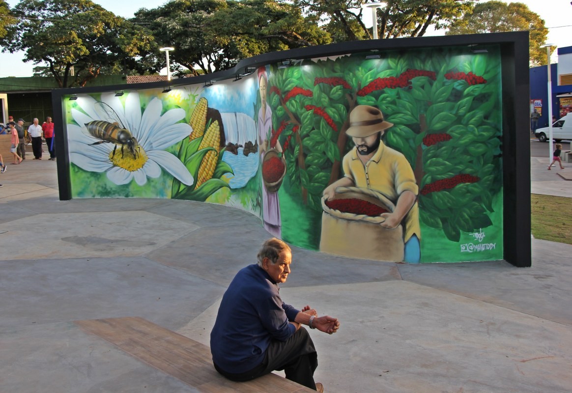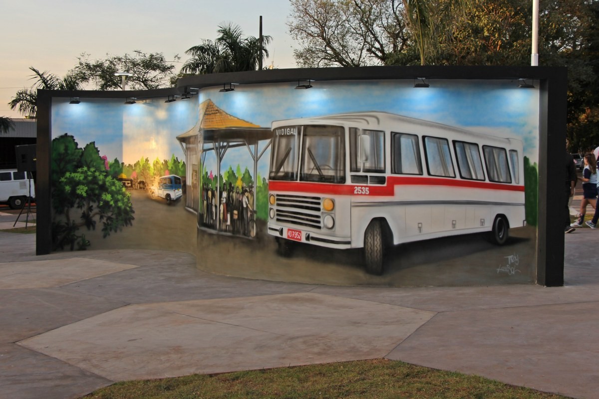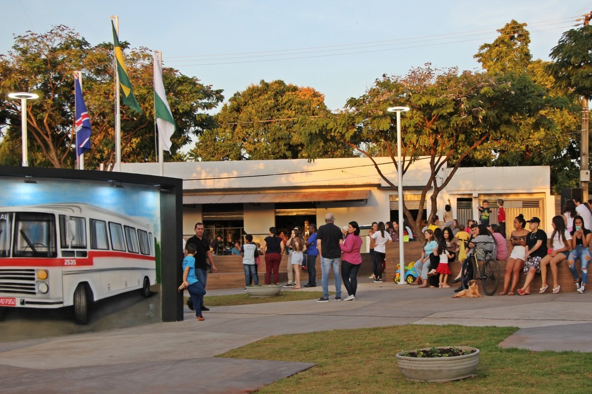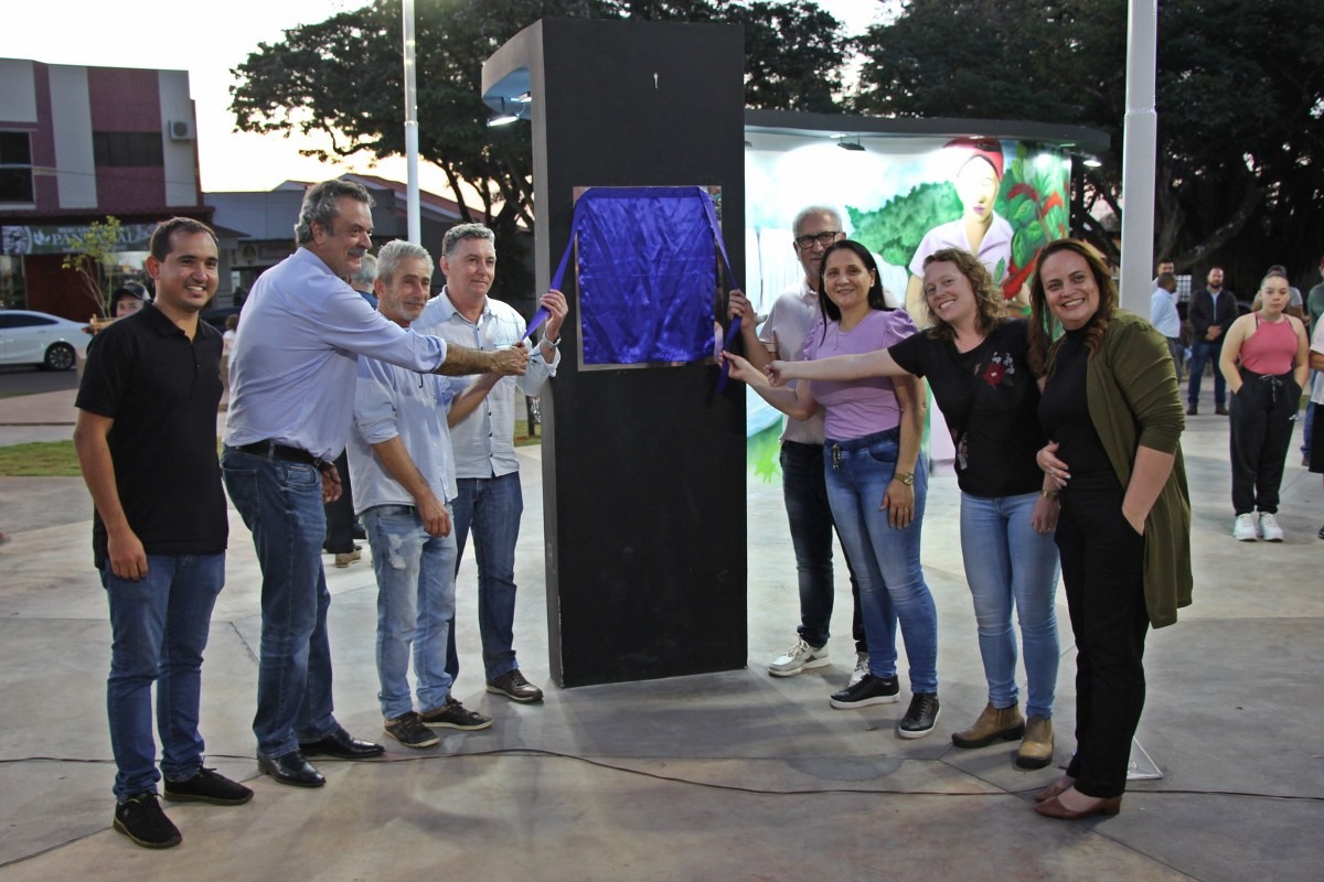 “O projeto inovador tem a bandeira municipal como conceito, pois o piso possui formato hexagonal, lembrando uma grande colmeia, que remete ao brasão da cidade, trazendo uma composição arquitetônica contemporânea”, disse a secretária, Mariana Affonço, acompanhada por servidores da pasta. A praça também recebeu o Memorial do Pioneiro, uma homenagem àqueles que chegaram ao distrito até 1959. O mural conta com várias imagens grafitadas pelo artista Evandro Manoel de França (Mano Tody).