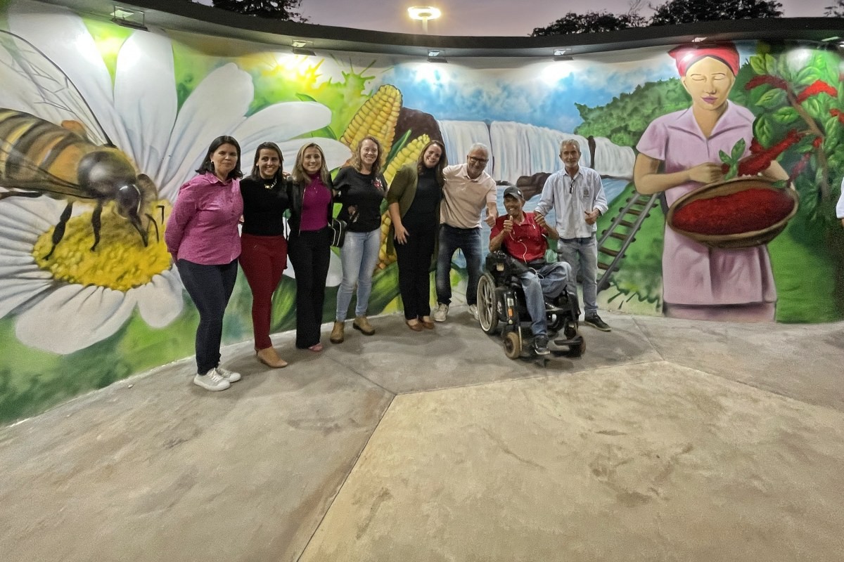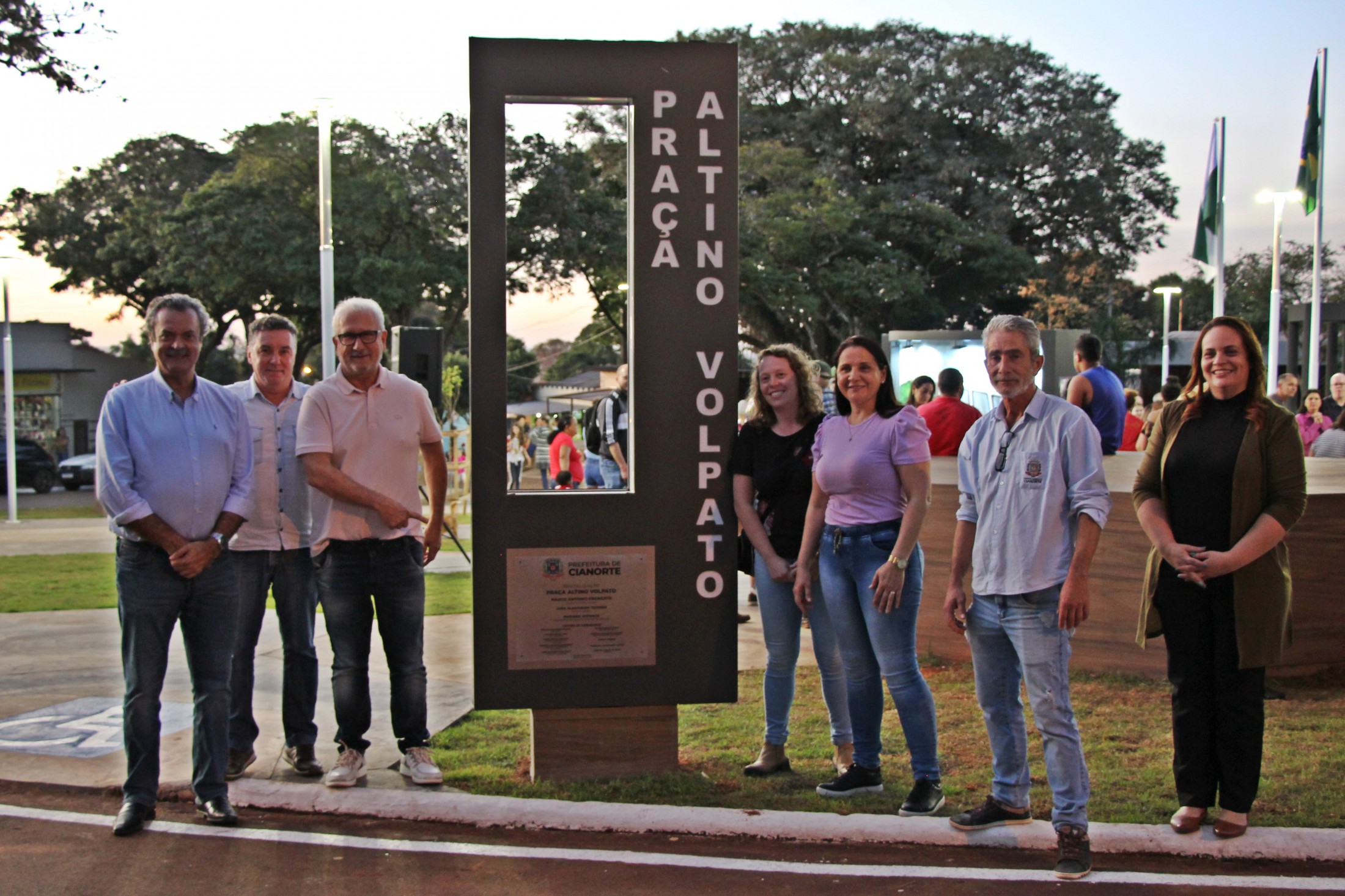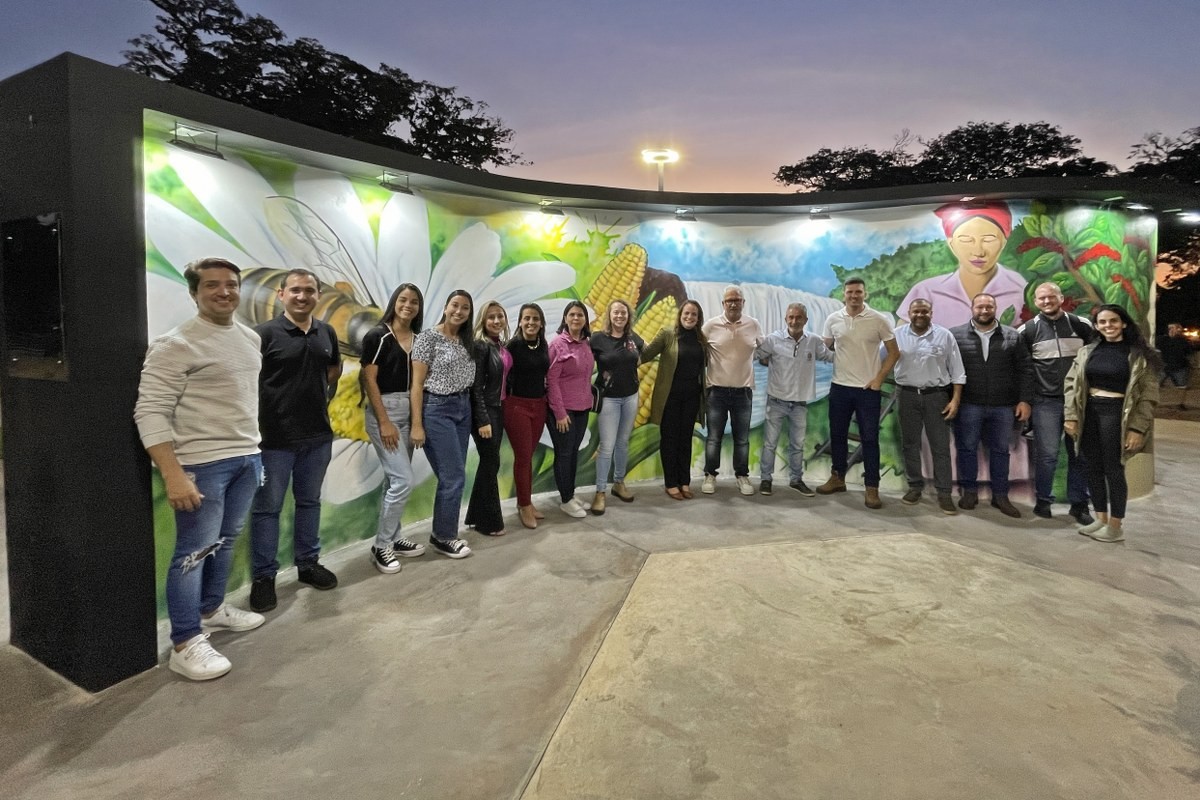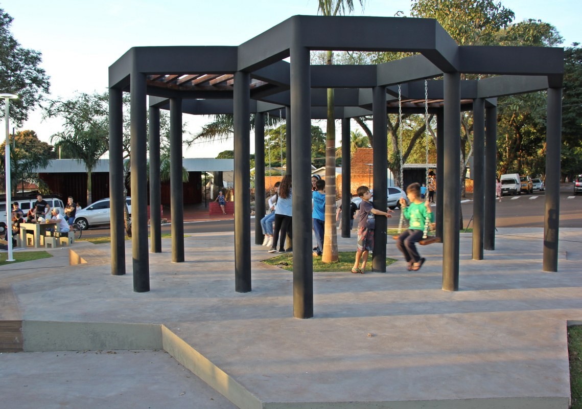 “O projeto inovador tem a bandeira municipal como conceito, pois o piso possui formato hexagonal, lembrando uma grande colmeia, que remete ao brasão da cidade, trazendo uma composição arquitetônica contemporânea”, disse a secretária, Mariana Affonço, acompanhada por servidores da pasta. A praça também recebeu o Memorial do Pioneiro, uma homenagem àqueles que chegaram ao distrito até 1959. O mural conta com várias imagens grafitadas pelo artista Evandro Manoel de França (Mano Tody).
