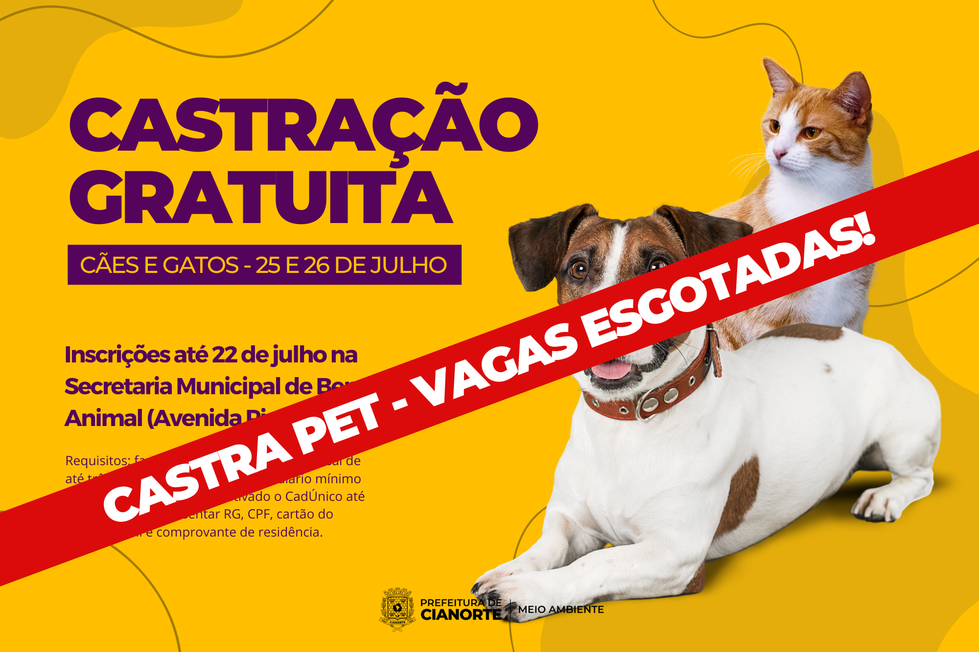 A Secretaria Municipal de Meio Ambiente e Bem-Estar Animal informa que as 434 vagas para a castração gratuita de cães e gatos pelo programa estadual CastraPet em Cianorte já foram preenchidas, inclusive, com os cadastros necessários para suprir possíveis casos de desistência. Por isso, as inscrições foram encerradas nesta terça-feira (19), antes do prazo previsto, que seria na sexta-feira (22).