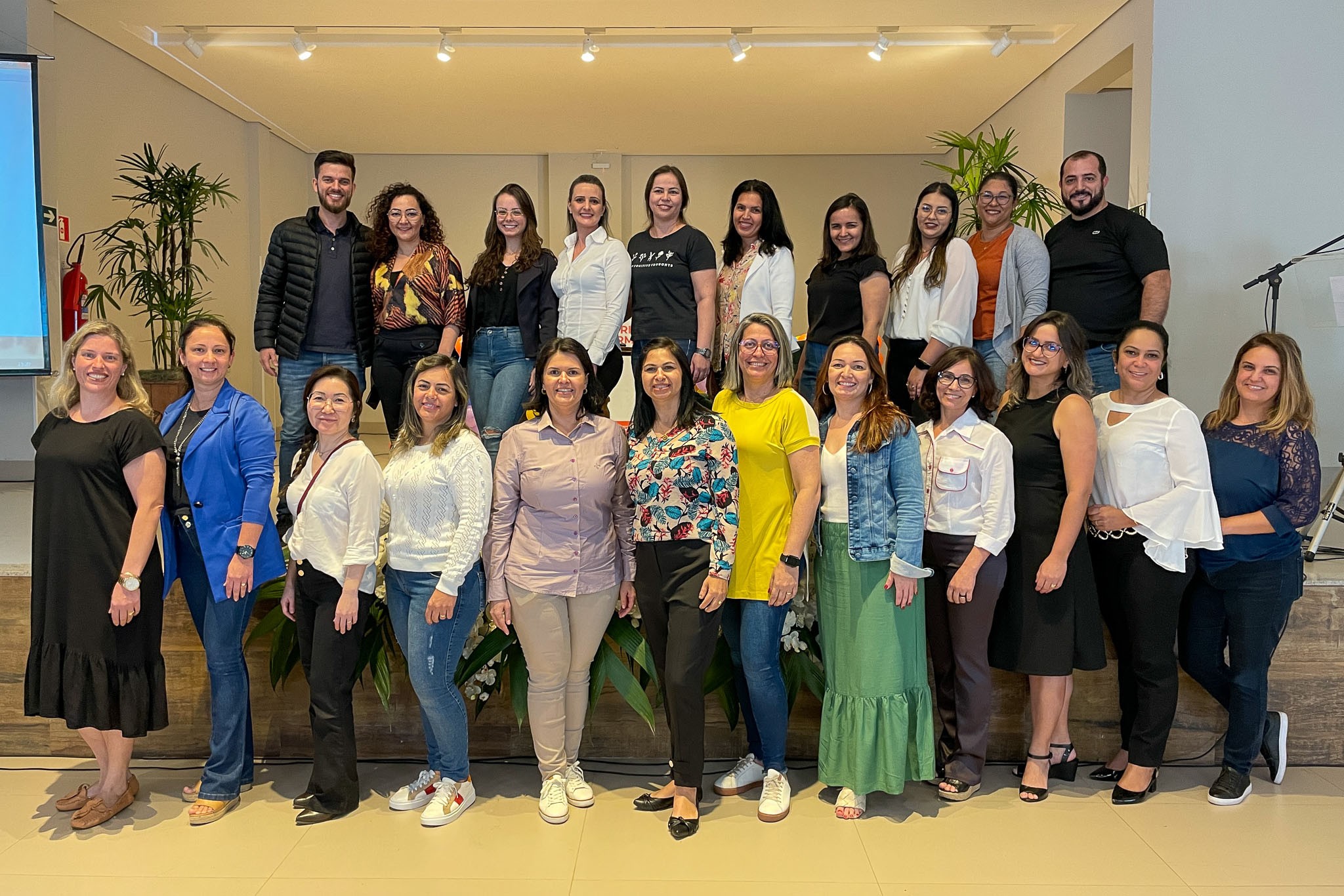 Na tarde dessa terça-feira (19), os professores da Rede Municipal participaram da palestra “Educação Escolar e Desenvolvimento da Criança: o papel do Currículo”, com a doutora em psicologia, Ligia Marcia Martins, e conduzida pela Coordenadora Pedagógica da Alfabetização, Juliana Piovesan. A formação buscou preparar os educadores para a elaboração de um currículo municipal, documento que tratará questões relacionadas ao desenvolvimento, aprendizagem, didática e ao conteúdo trabalhado com os alunos, da Educação Infantil ao Ensino Fundamental.