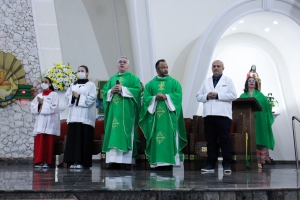 A história de fundação de Cianorte é marcada pela celebração da Santa Missa. A exemplo do que acontece desde 1953, fiéis e autoridades reuniram-se, no último sábado (23), para agradecer a Deus pelas bênçãos derramadas sobre a cidade, que completa 69 anos neste 26 de julho. A tradicional missa em ação de graças pelo aniversário, realizada na Paróquia Nossa Senhora de Fátima (Igreja Matriz), foi presidida pelo pároco, Pe. João Mendes, e concelebrada pelo Pe. Paulo Sérgio Aguilar, pároco da Paróquia Sagrada Família.