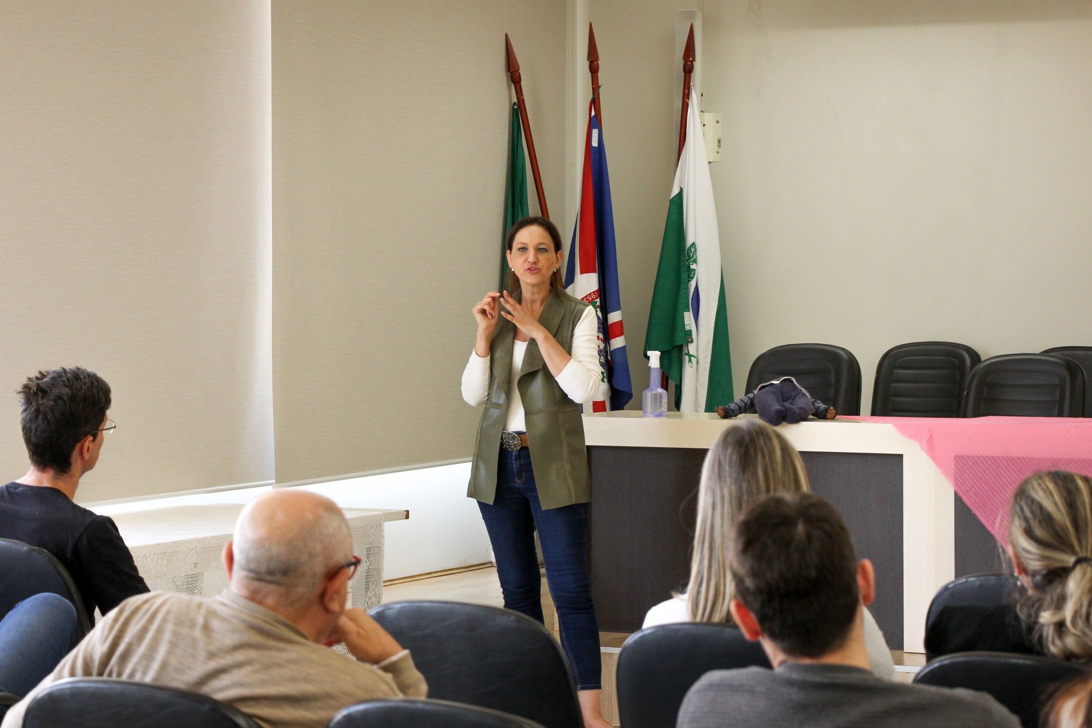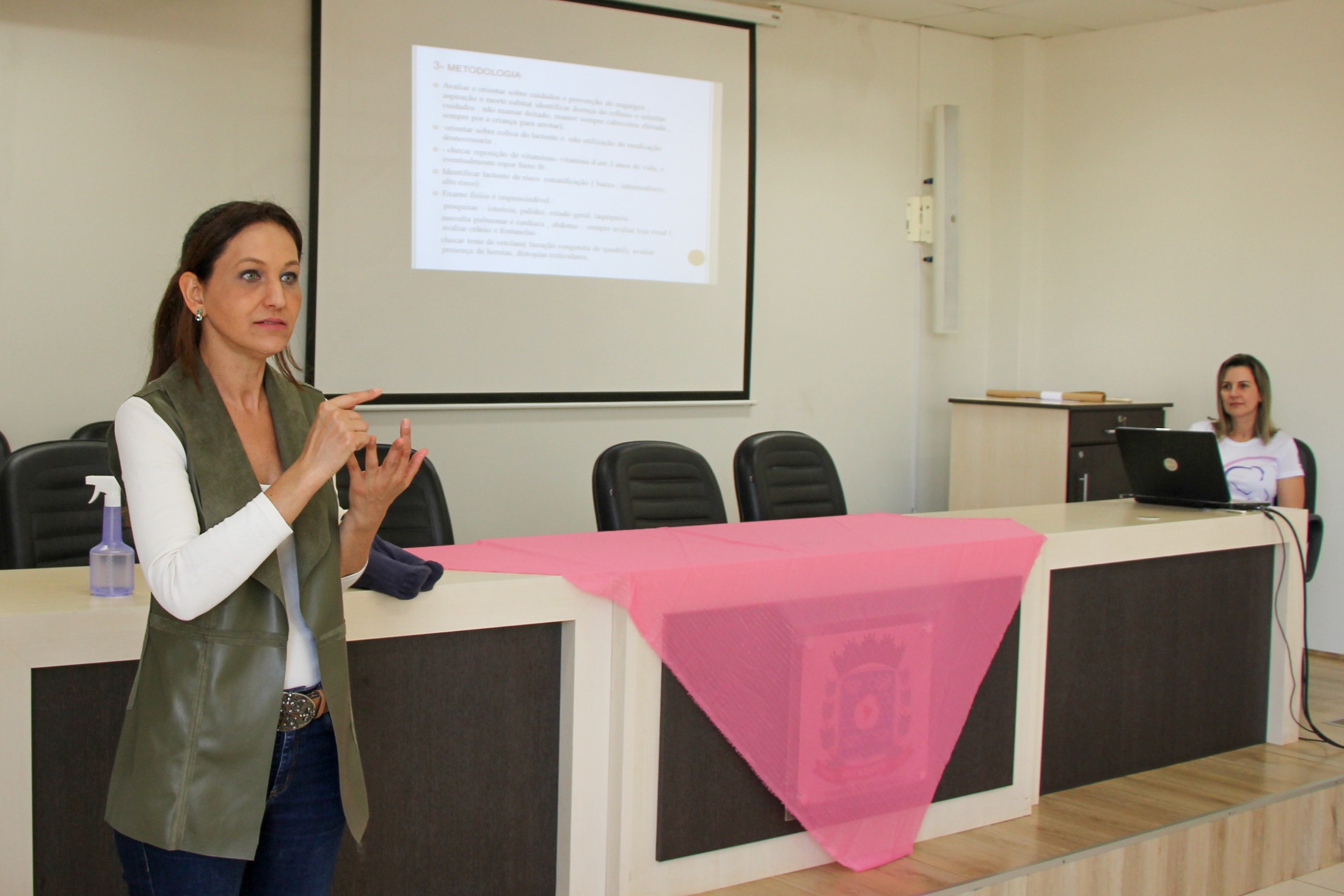 Na última quarta-feira (24), no auditório do Paço Municipal, parte dos médicos e enfermeiros que atuam nas Unidades Básicas de Saúde (UBSs) receberam uma capacitação sobre pediatria e a assistência à criança no primeiro ano de vida, ministrada pela gastropediatra, Dra. Lana Maria Neri Vieira. A iniciativa integra as ações do Projeto Gestar e Amar, da Secretaria Municipal de Saúde.