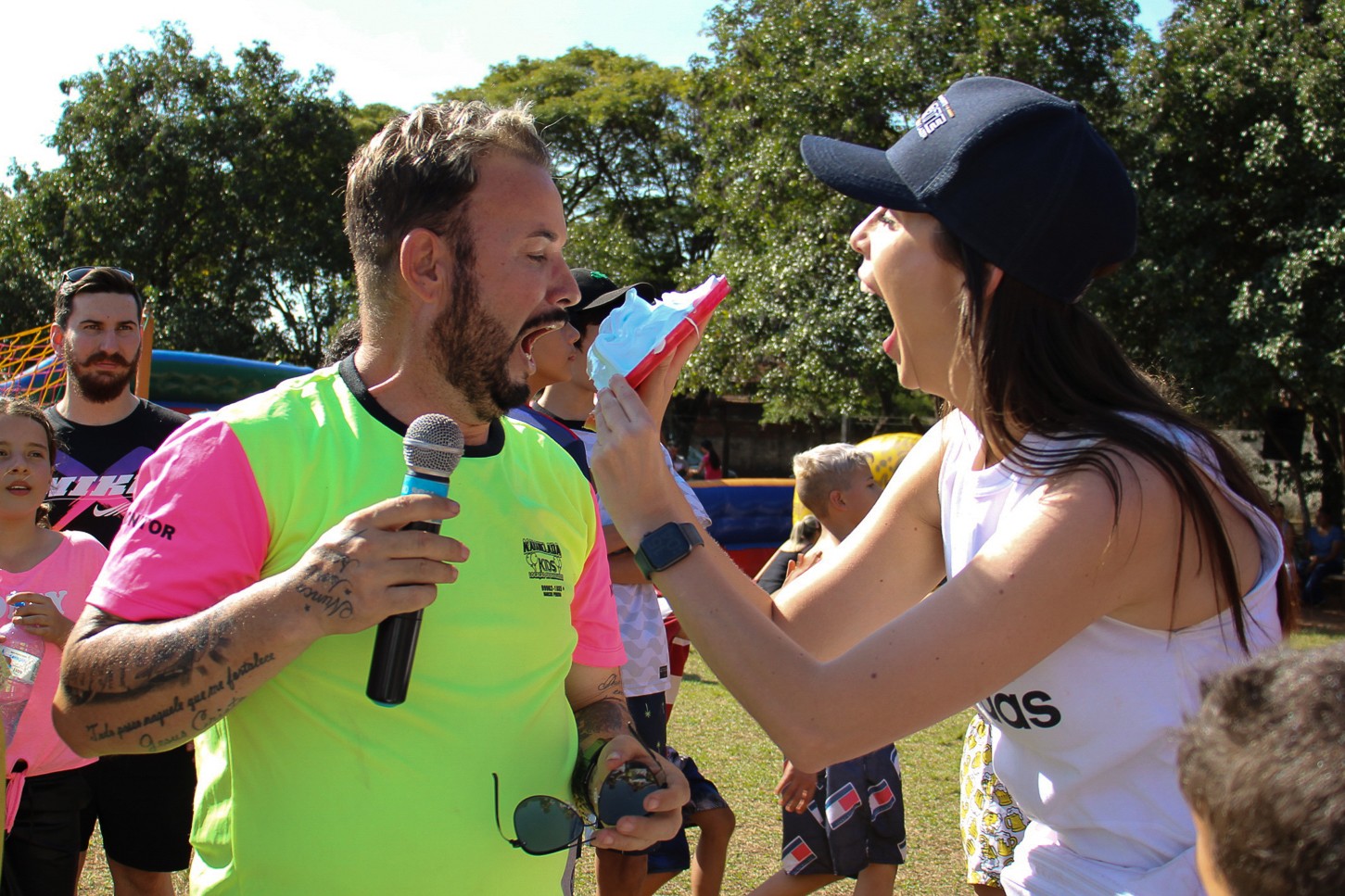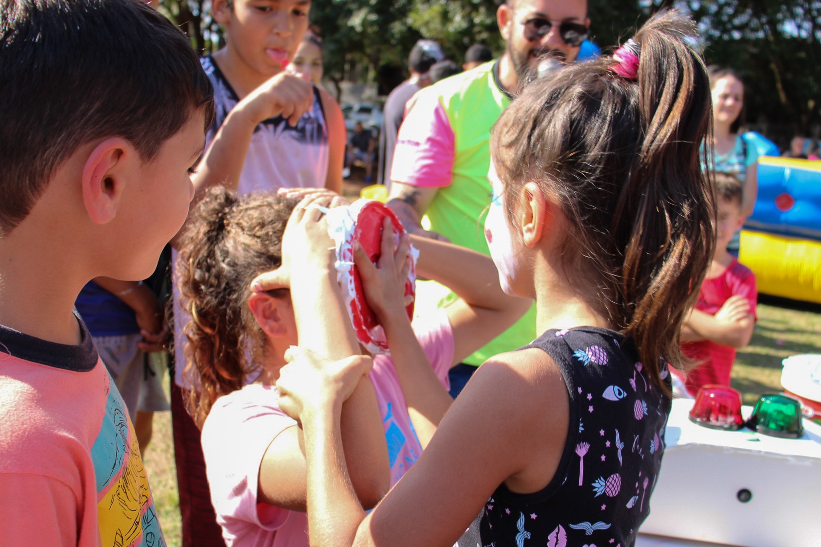 No local, os pequenos contaram com brinquedos infláveis, camas elásticas, gincanas, pinturas faciais, atividades com tinta, giz de cera, lápis de cor e massinhas de modelar. Ainda, foram distribuídos cerca de dois mil doces.