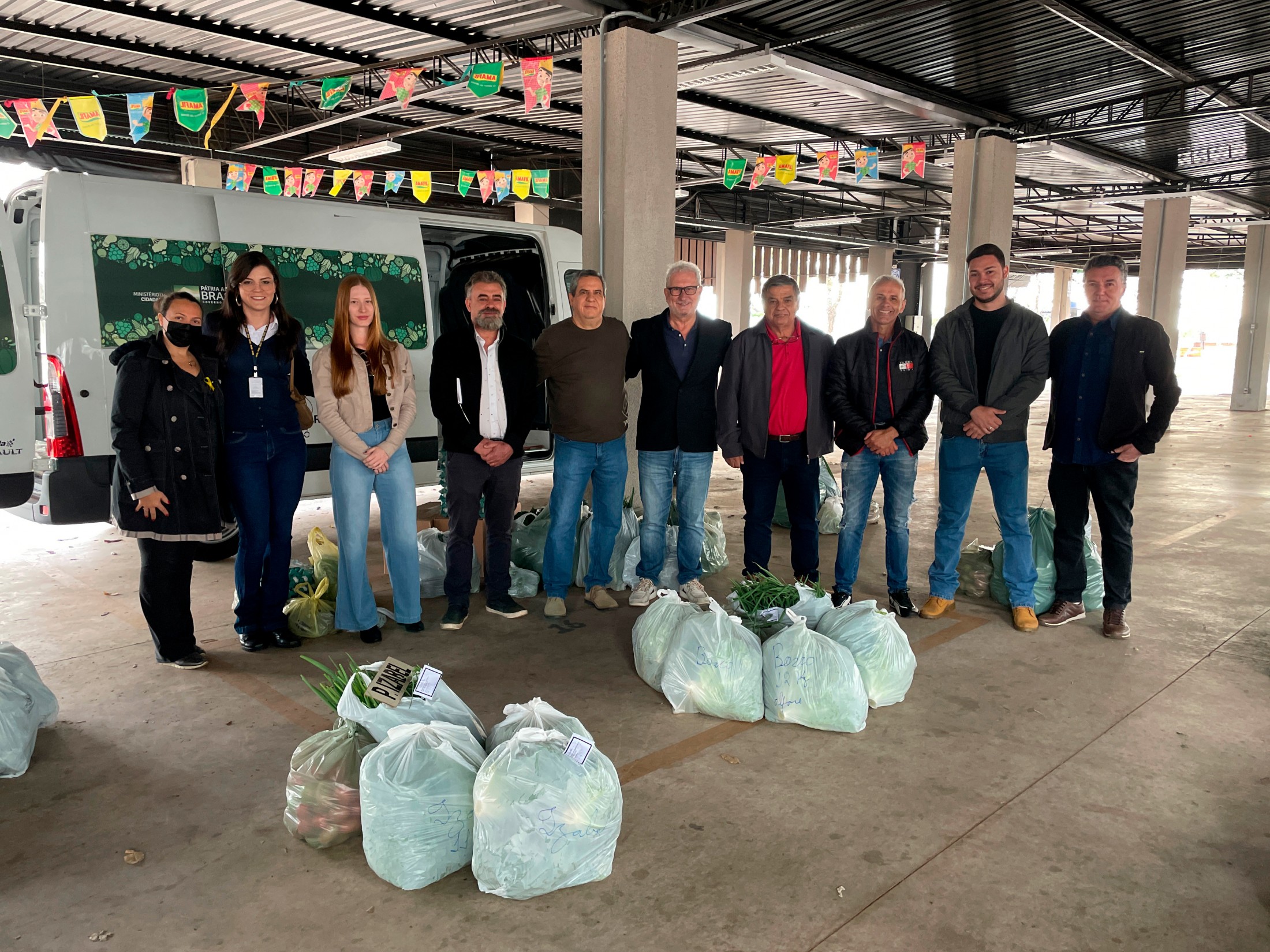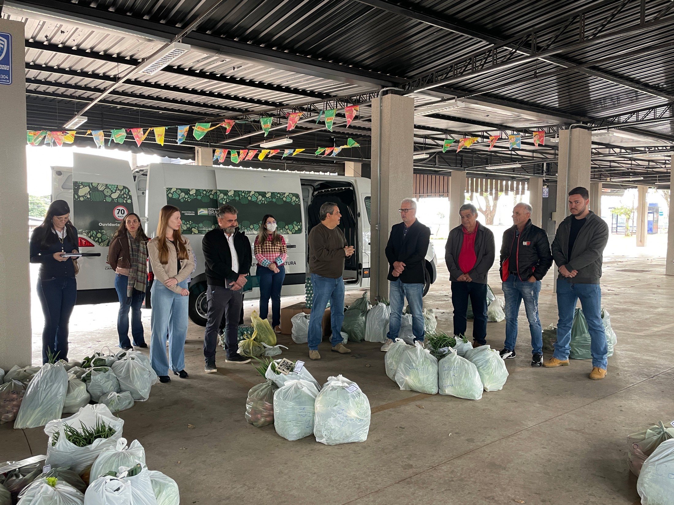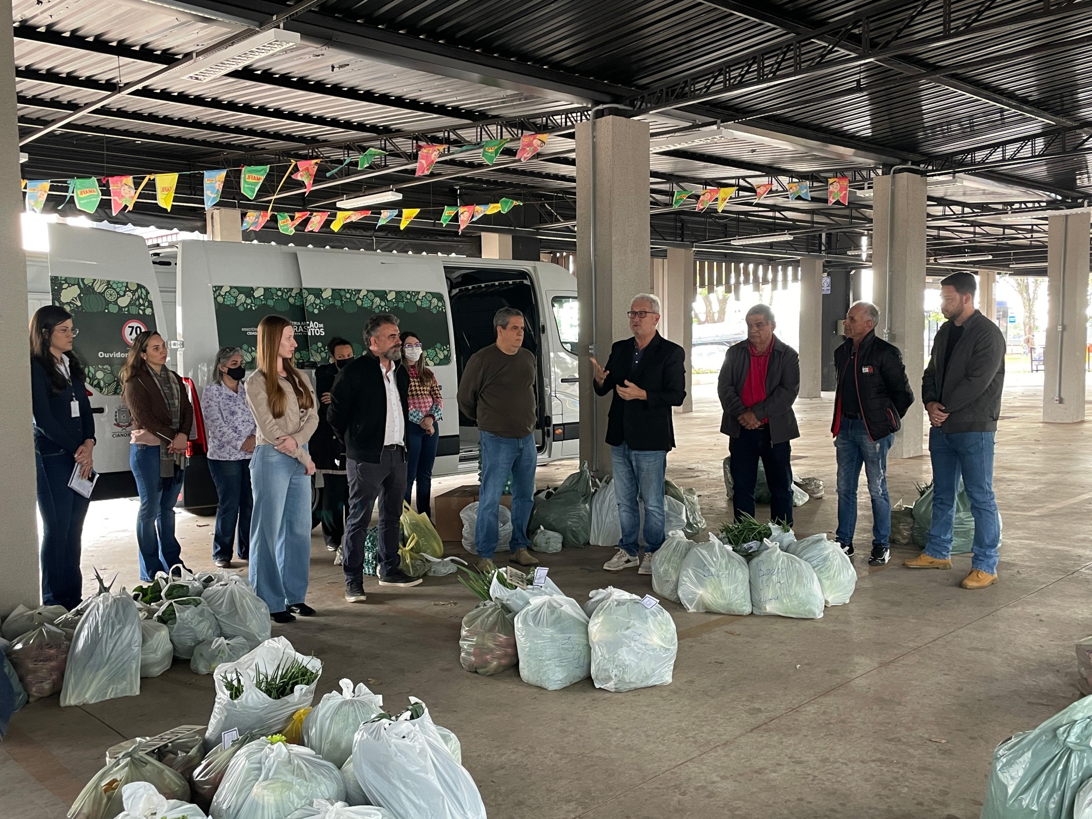 A primeira entrega pela associação local, que aconteceu na estrutura da Feira do Produtor (Praça Itamar Orlando Soares), também contou com a presença do presidente da Câmara Municipal de Cianorte, Wilson Pedrão; da secretária municipal de Assistência Social, Aline Rosa Kist; do chefe regional da SEAB, Francisco Cascardo Neto; do gerente regional do IDR-PR, Paulo Preto; do presidente da Associação da Feira do Produtor Rural de Hortifrúti de Cianorte, Reinaldo de Souza Chaves; e dos técnicos da Secretaria Municipal de Agricultura.