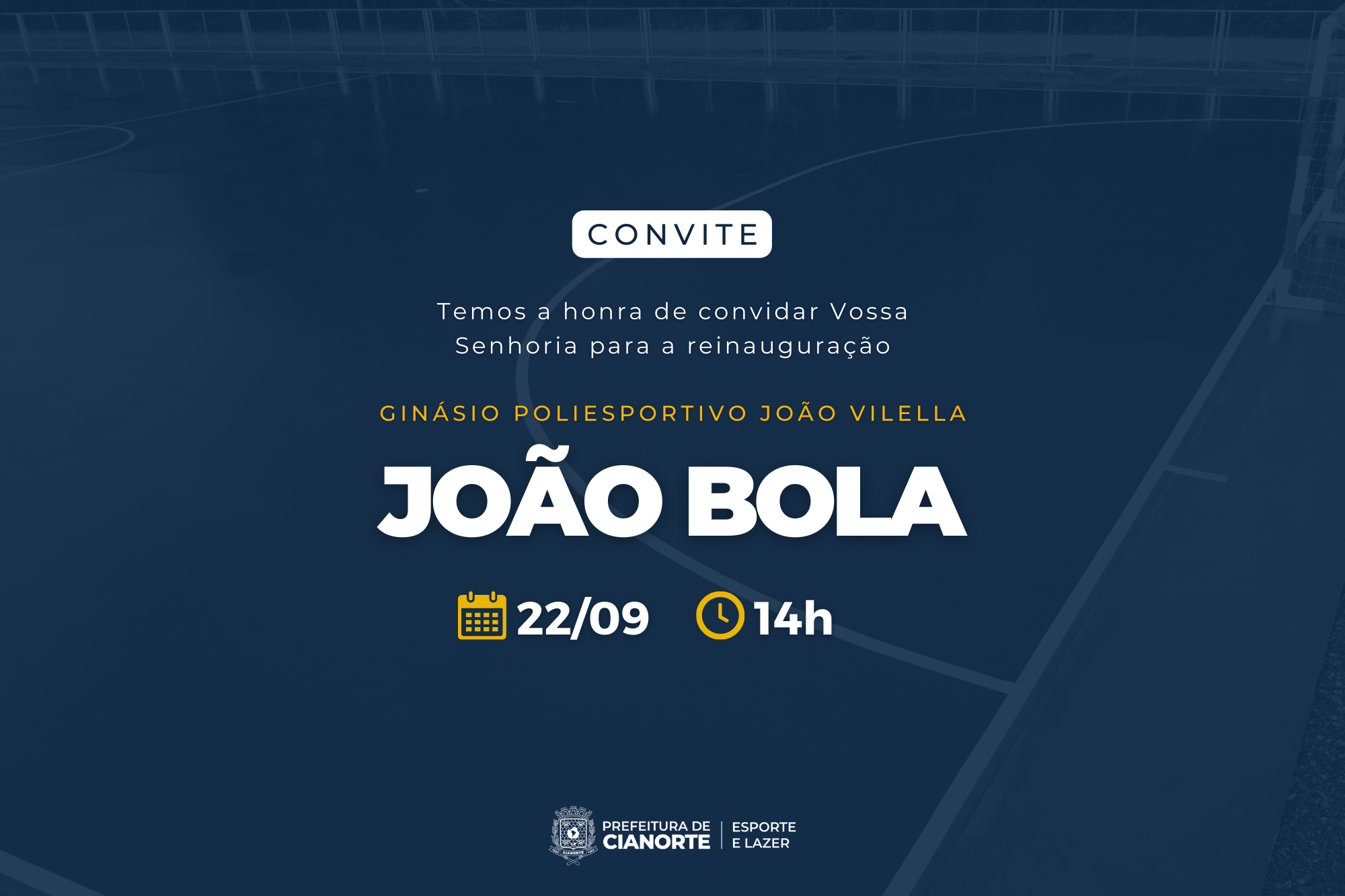 A Prefeitura de Cianorte, por meio da Secretaria Municipal de Esporte e Lazer, inaugura nesta quinta-feira (22), às 14h, a revitalização do Ginásio Poliesportivo João Vilella, popularmente conhecido como João Bola. Localizado no Cianortinho, o espaço recebeu pintura geral, reparo da quadra, além de cuidados nos banheiros e parte elétrica.