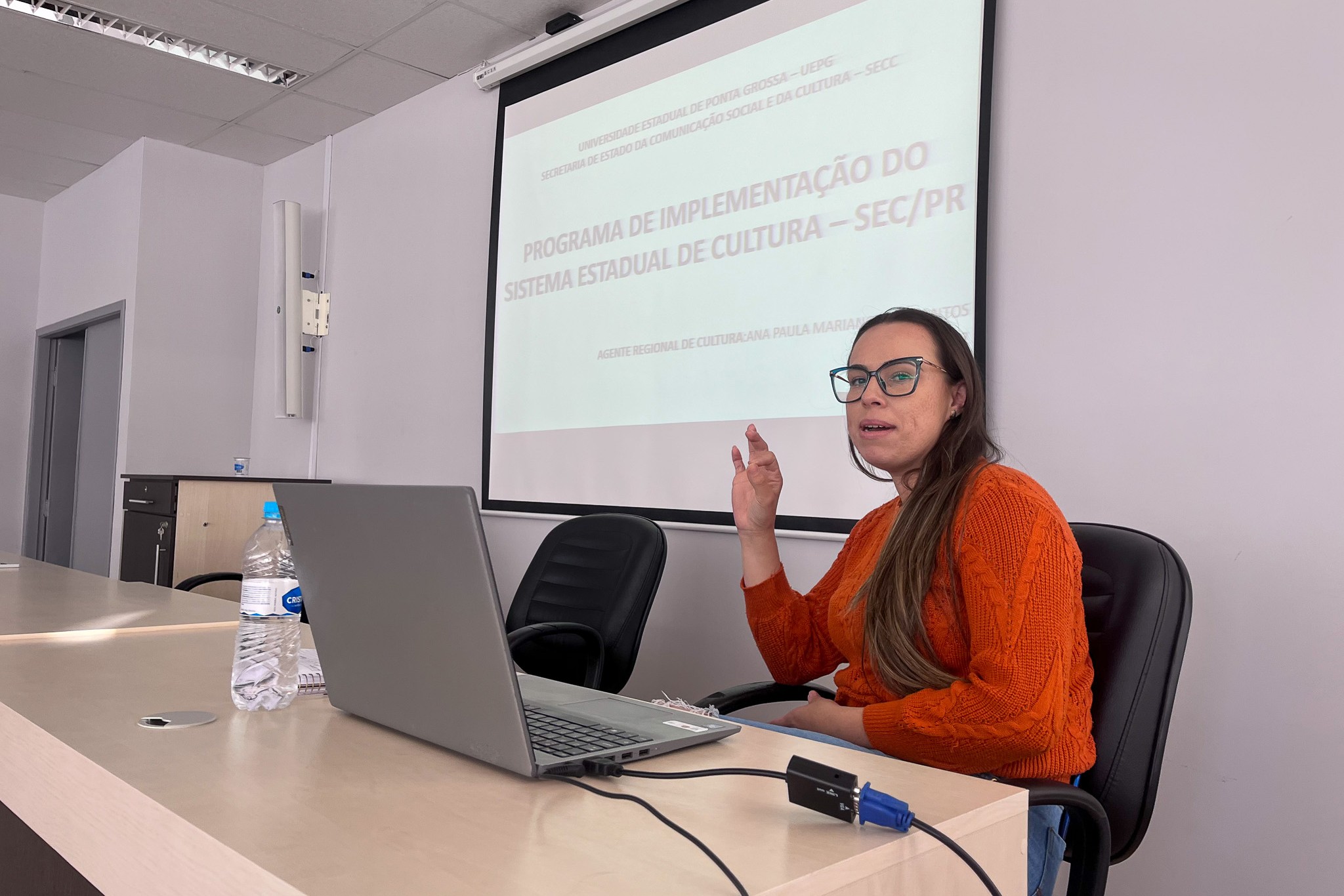Agentes culturais de Cianorte e gestores da Secretaria Municipal de Cultura reuniram-se, na tarde dessa sexta-feira (23), no Paço Municipal, para conhecerem o Programa de Implementação do Sistema Estadual de Cultura (SEC-PR). O modelo, que busca organizar e preparar os envolvidos no segmento para que se tornem aptos a receberem diferentes formas de recursos, tanto estaduais, quanto federais, foi apresentado pela agente regional de Cultura do Estado, Ana Paula Mariano dos Santos.