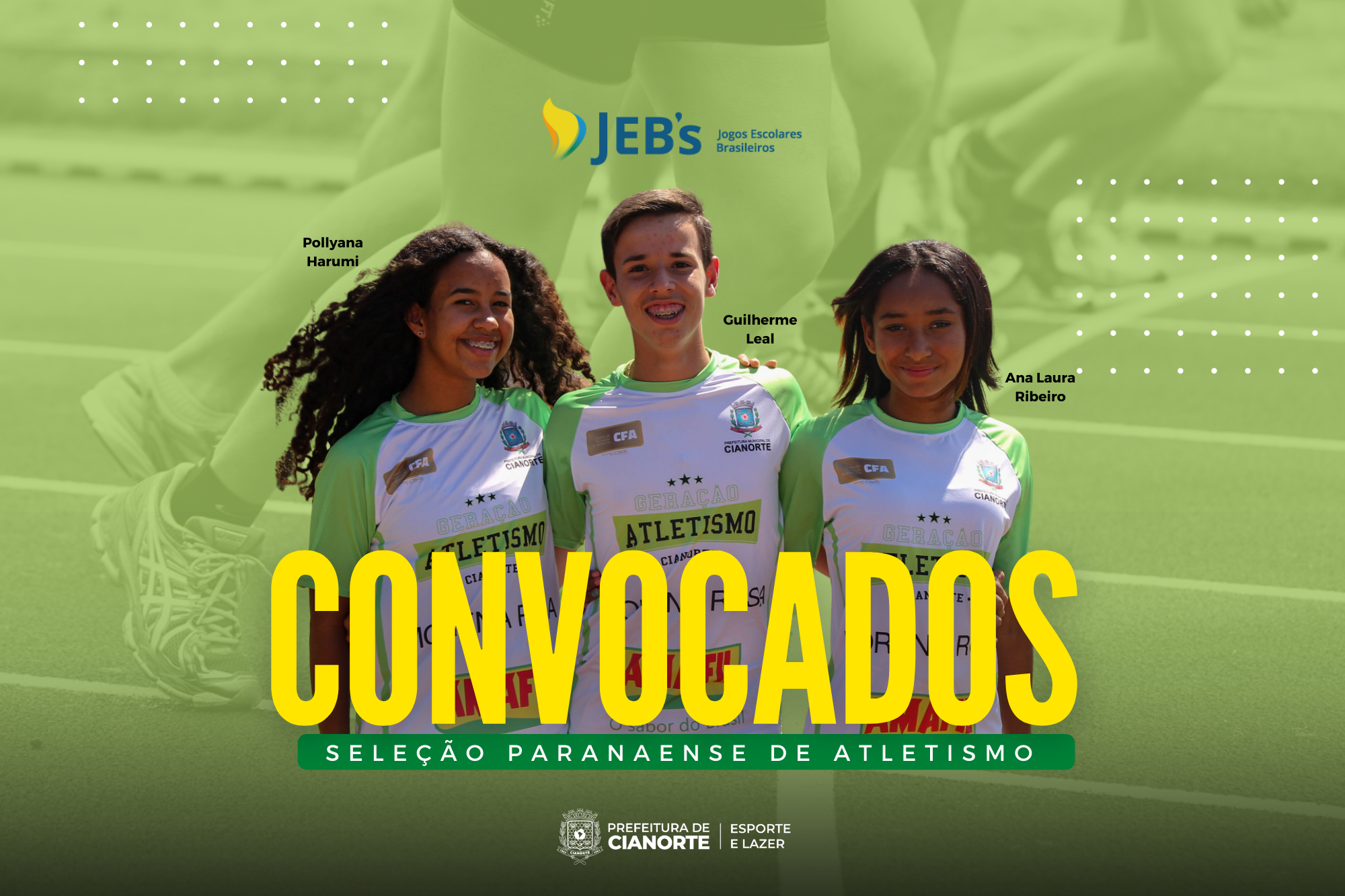 A Federação do Desporto Escolar do Paraná convocou, nesta quarta-feira (05), a seleção que representará o estado na disputa dos Jogos Escolares Brasileiros - JEB’s, que serão realizados de 01 a 15 de novembro, no Parque Olímpico do Rio de Janeiro. Entre os escolhidos estão três nomes que integram o Geração Atletismo, projeto da Secretaria Municipal de Esporte e Lazer (SMEL). Assim, Pollyana Harumi e Guilherme Leal participarão na modalidade Lançamento de Martelo; e Ana Laura Ribeiro nos 80m c/ barreiras.