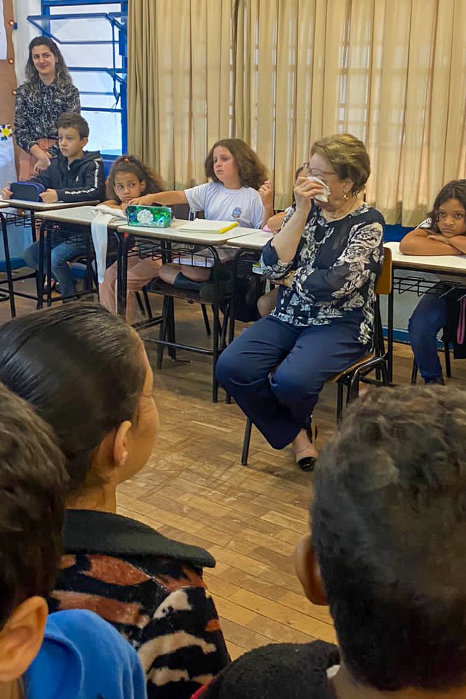 A secretária municipal de Educação, Kelly Werdenberg Rodrigues, acompanhou a ocasião e enfatizou a importância do contato das crianças com a historiadora. “A Dona Izaura detém muito conhecimento sobre a história do nosso município. Promover o encontro entre essas gerações é importante para manter viva a nossa cultura e as nossas memórias”, destaca.