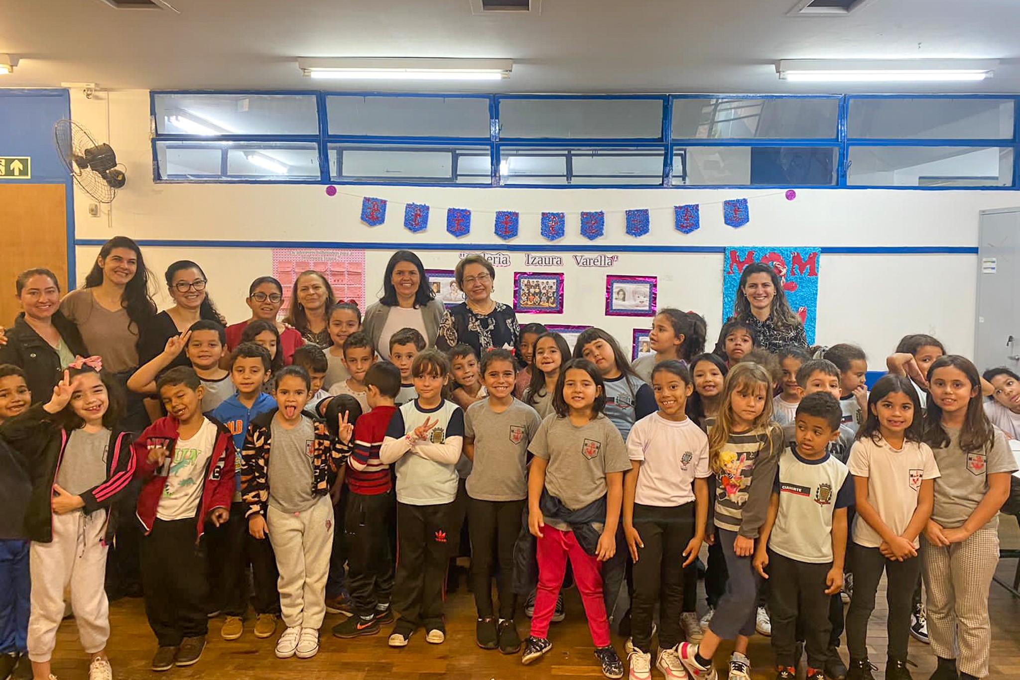 Na última quinta-feira (06), a Escola Municipal Maria Montessori recebeu uma ilustre visita: a professora Izaura Aparecida Tomaroli Varella, a primeira diretora da instituição. Na ocasião, dona Izaura foi homenageada pelas crianças com entrevistas, desenhos, bilhetinhos, textos e uma apresentação musical do hino da escola, escrito por ela.