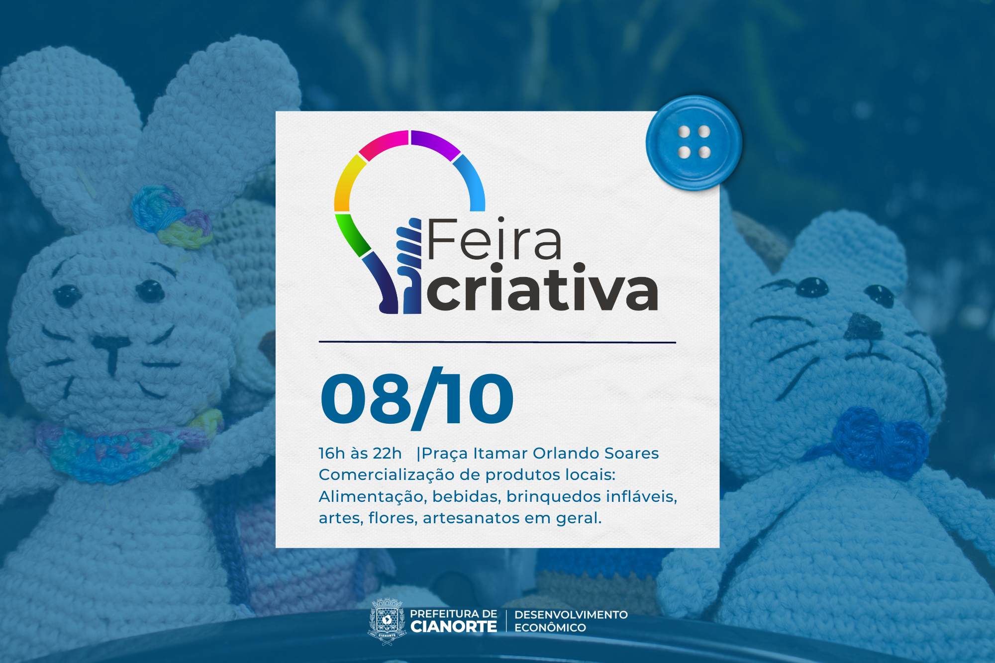 Neste sábado (08) acontece a nona edição da Feira Criativa, na Praça Itamar Orlando Soares (Feira do Produtor), das 16h às 22h.
