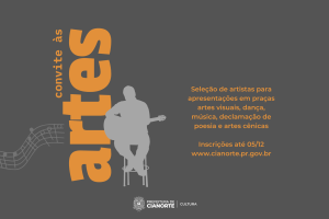 “O Convite às Artes visa promover a visibilidade e valorização dos nossos artistas locais e democratizar o acesso da população às atividades artísticas”, destaca o secretário da pasta, Rodrigo Severino de Jesus. Mais informações podem ser obtidas pelo e-mail cultura@cianorte.pr.gov.br ou pelo telefone 3619-6227.