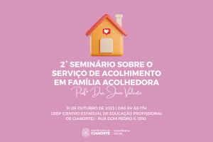 A Secretaria Municipal de Assistência Social promove, na segunda-feira (31), o 2º Seminário sobre o Serviço de Acolhimento em Família Acolhedora. A ocasião é aberta ao público e será abrilhantada pela palestra com a professora doutora em Serviço Social, Jane Valente. A programação tem início às 8h, no Centro Estadual de Educação Profissional (CEEP – Rua Dom Pedro II, 1550) e segue durante todo o dia. Para participar, basta preencher o formulário on-line: https://forms.gle/towvabHkRBECTeK89.