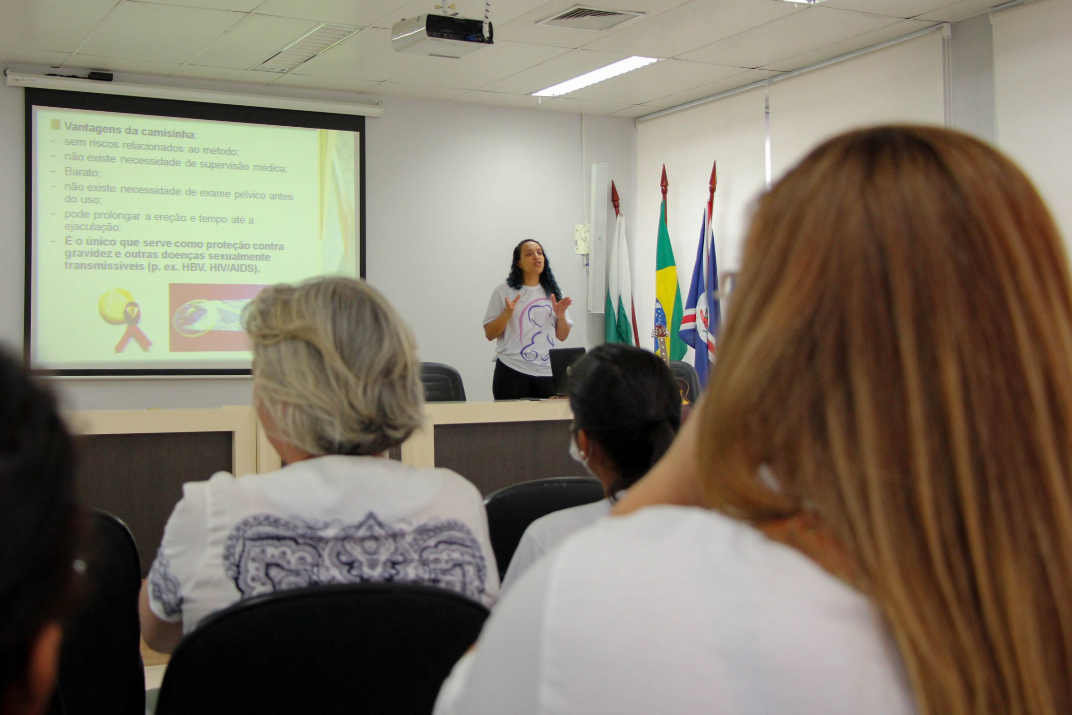 Na última quinta-feira (27), os agentes comunitários de saúde das Unidades Básicas de Saúde (UBSs) receberam uma capacitação sobre puerpério e planejamento familiar, no auditório do gabinete, localizado no Paço Municipal. A formação, que é contínua, foi promovida pela Secretaria Municipal de Saúde, por meio do Projeto Gestar e Amar.