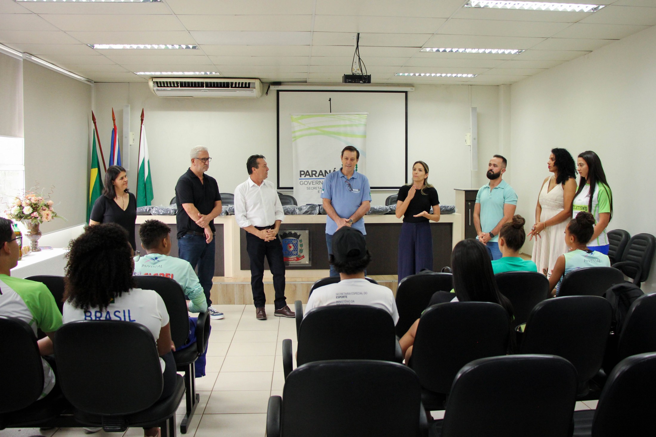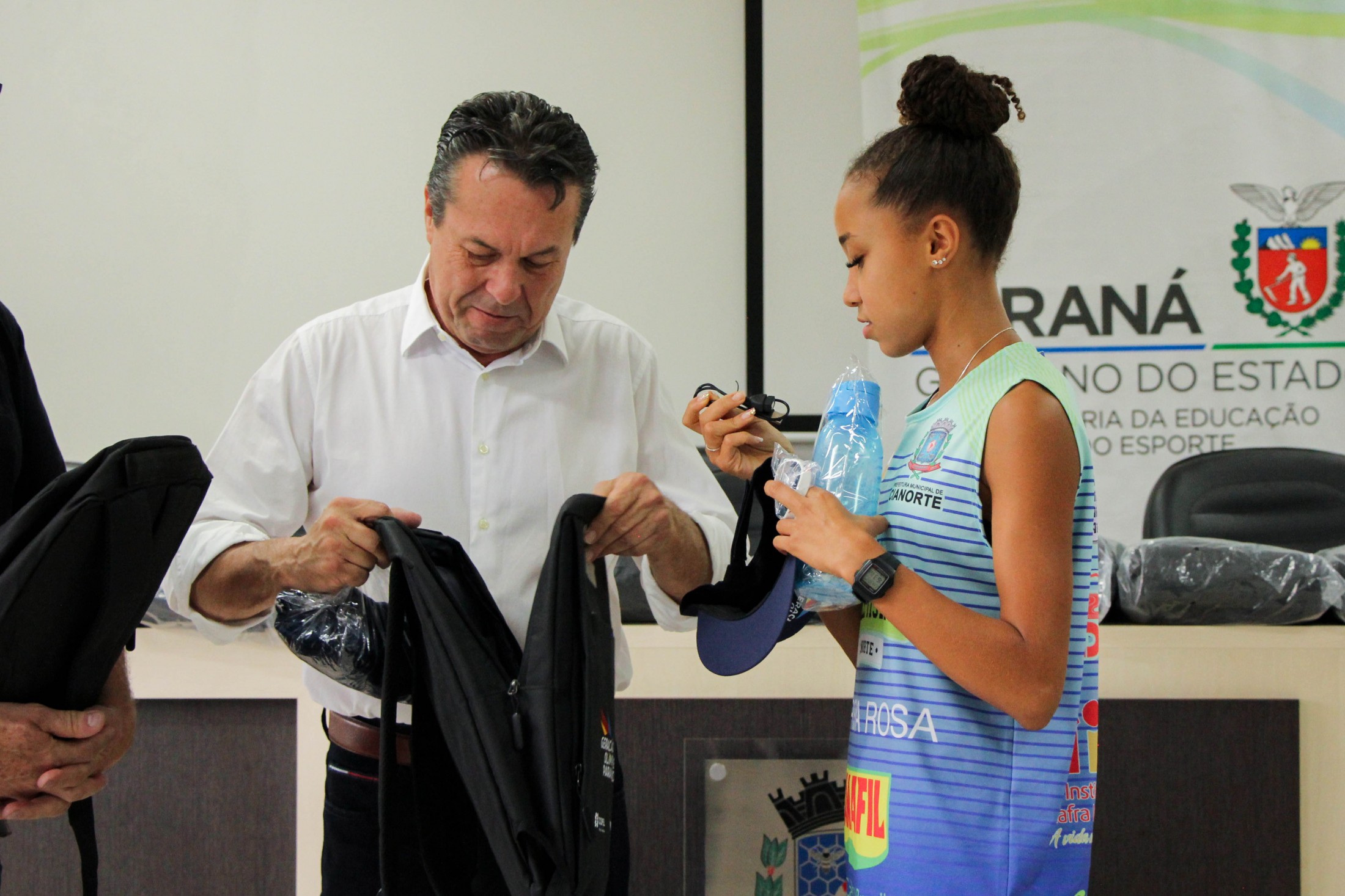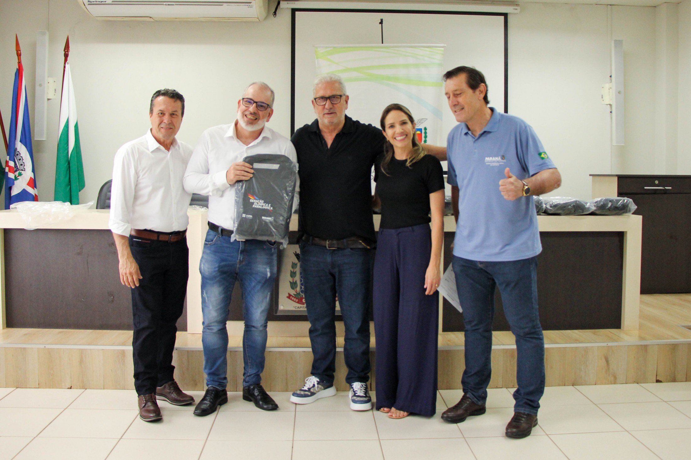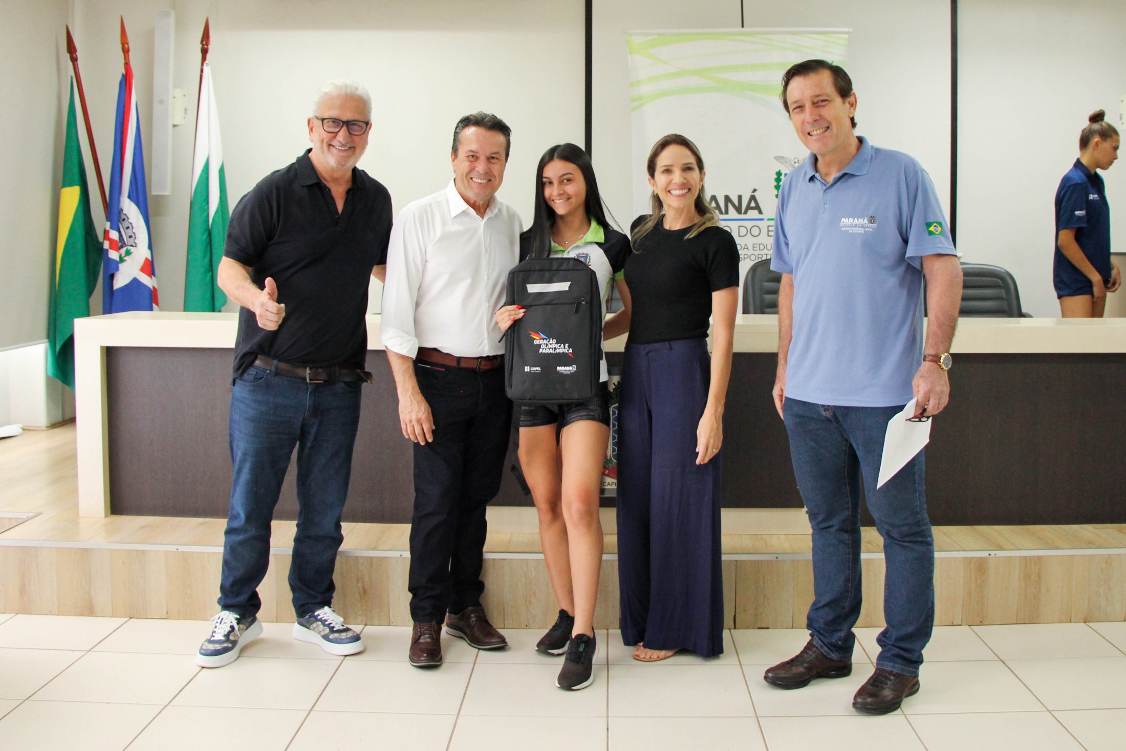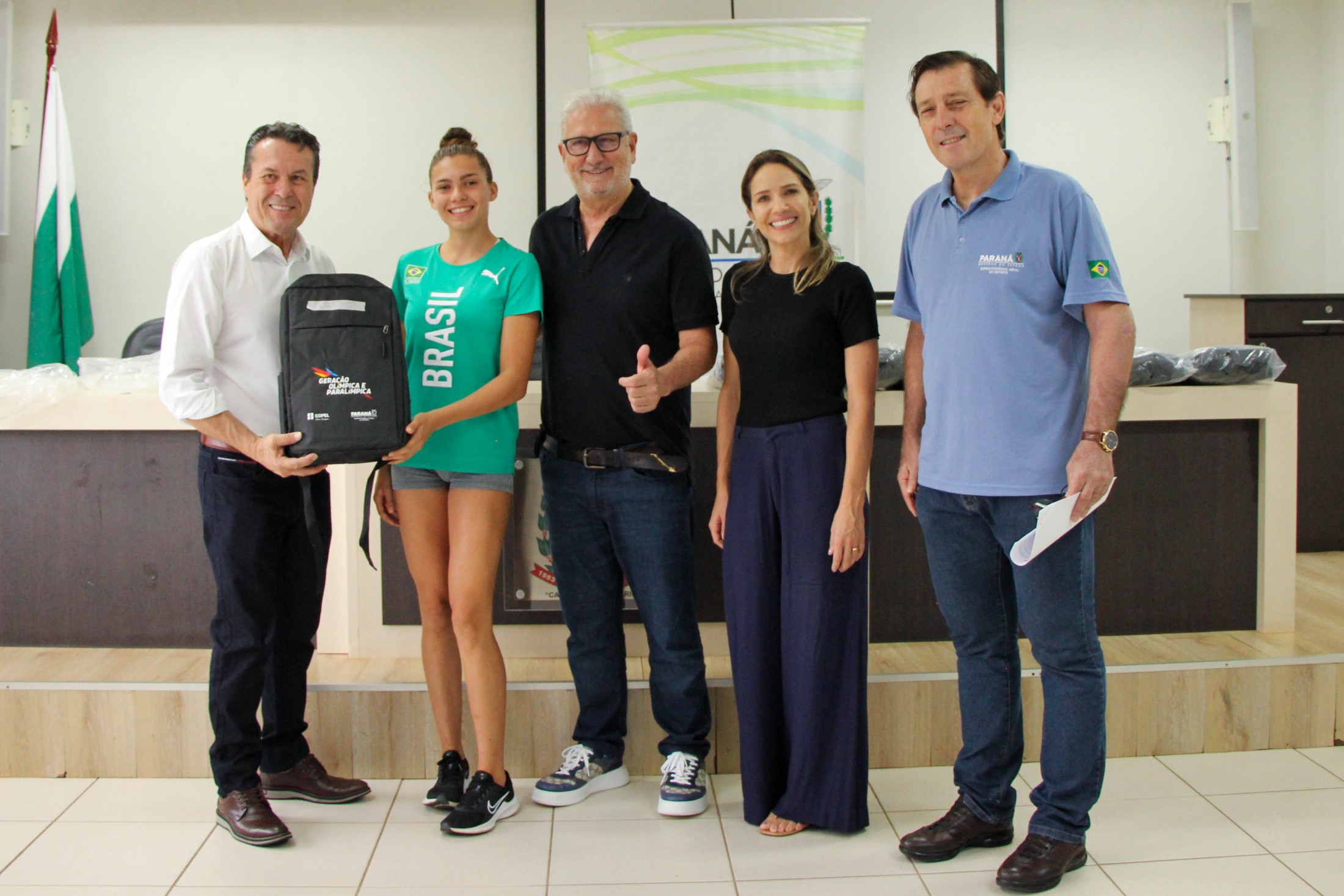 Na tarde da última quinta-feira (27), os 14 cianortenses bolsistas do programa Geração Olímpica e Paralímpica, do Governo do Estado do Paraná, receberam kits de identificação visual e foram homenageados pelos resultados alcançados recentemente. A solenidade foi realizada no auditório do Paço Municipal e contou com a participação de autoridades locais.