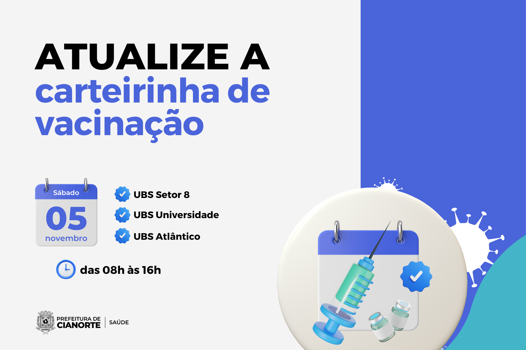 Neste sábado (05), das 08h às 16h, três Unidades Básicas de Saúde (UBSs) estarão abertas para atualização da carteirinha de vacinação. As pessoas que tiverem com alguma imunização de rotina em atraso, devem procurar pelas UBSs do Setor 08, Universidade e Atlântico para regularizar a situação e garantir as doses necessárias.