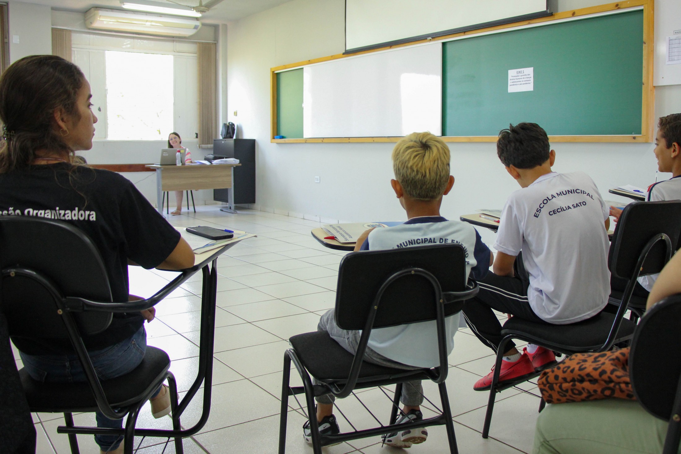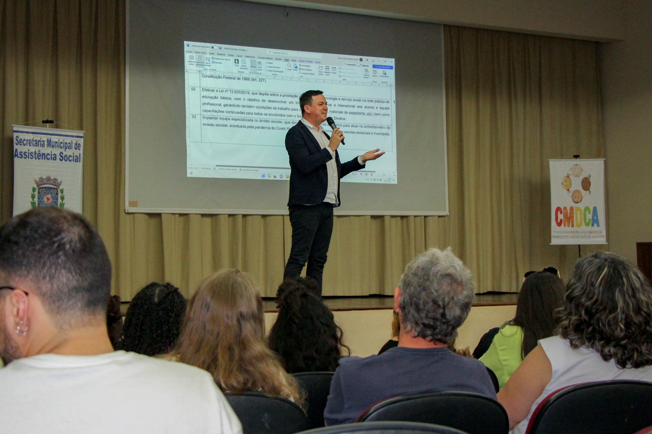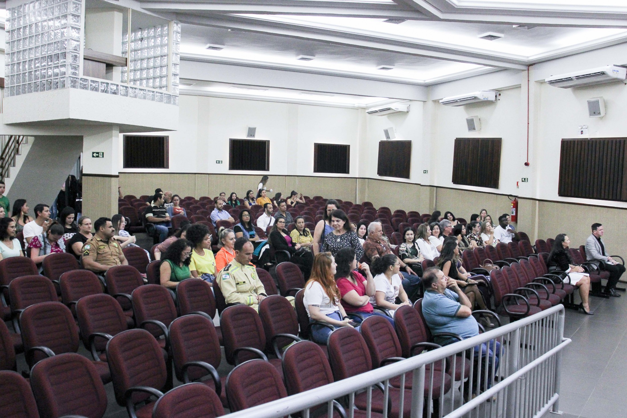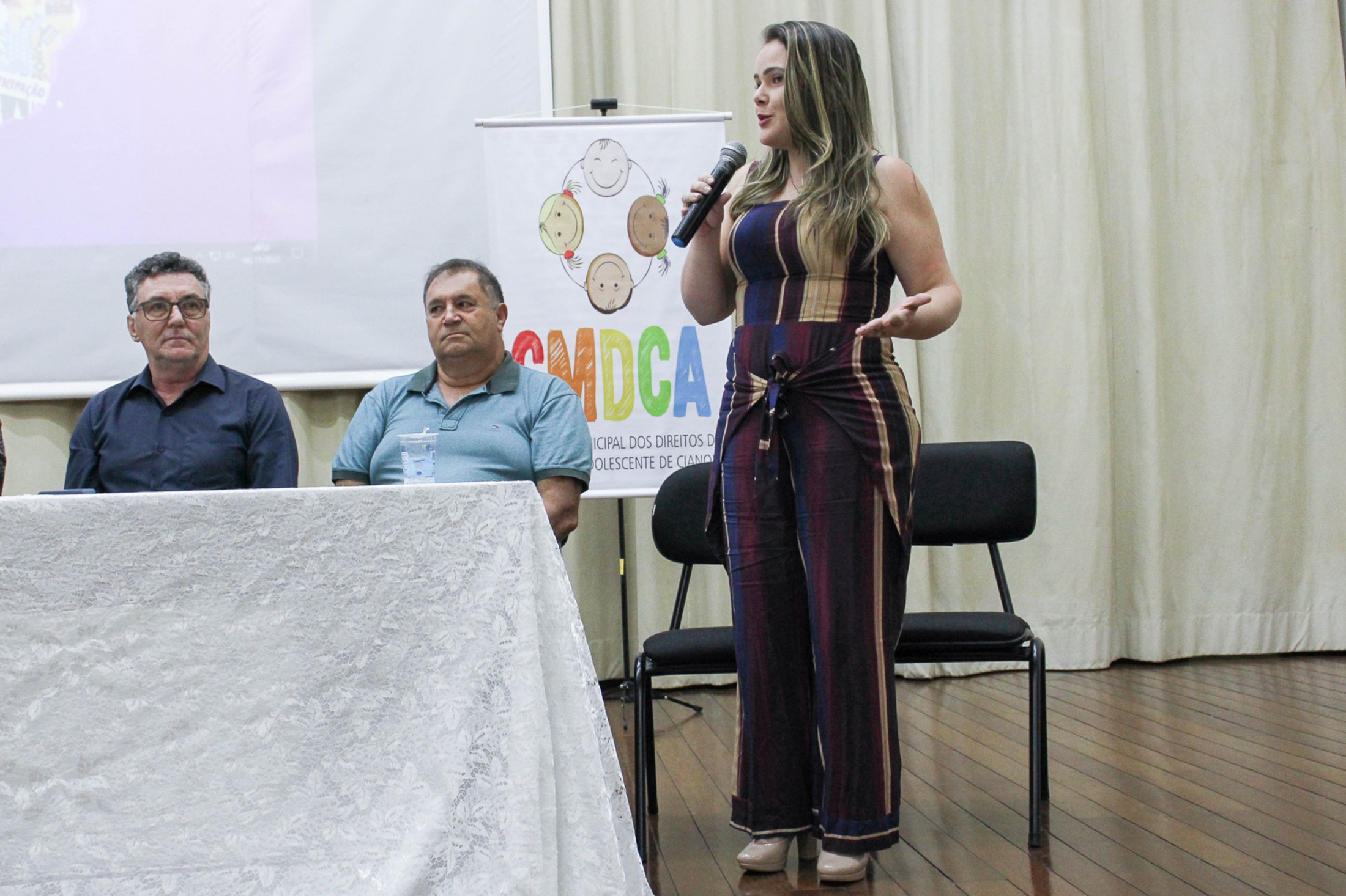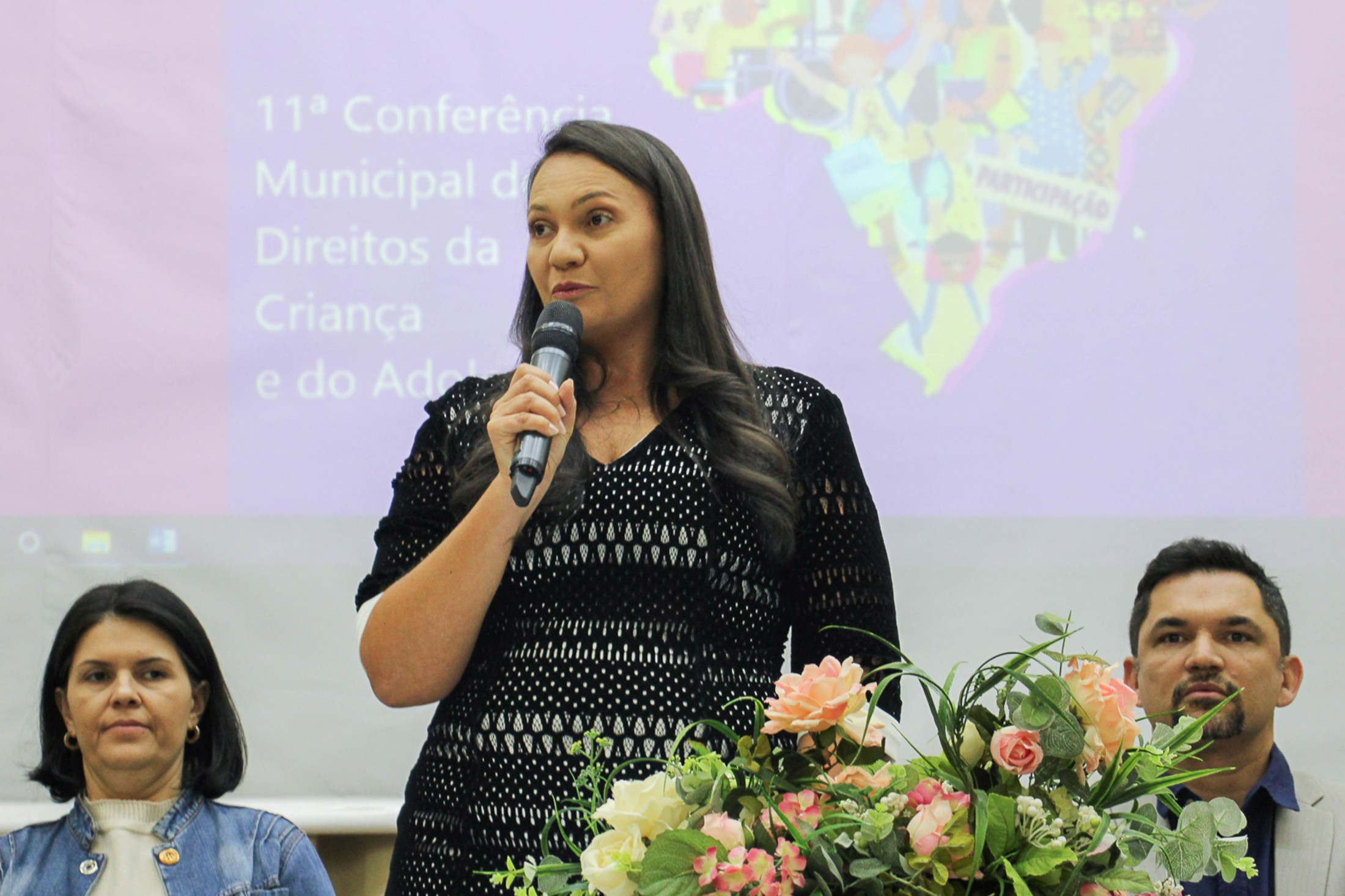 AUTORIDADES - A abertura ainda contou com as presenças da juíza de Direito da Vara da Infância e da Juventude, Dra. Marília Mitie Yoshida; do presidente da Câmara Municipal de Vereadores, Wilson Pedrão; das secretárias municipais de Educação, Kelly Wenderberg; e de Políticas Públicas para Mulheres, Crianças e Adolescentes, Aline Soares de Almeida Leal; do delegado do Nucria, Dr. Wagner Soares Quintão dos Santos; do técnico do Escritório Regional da Secretaria de Justiça, Família e Trabalho, Sidney de Souza; da presidente do Conselho Tutelar, Lenir Oliveira Gonçalves; e da representante das crianças e adolescentes, Monaliza Farias Sena.
