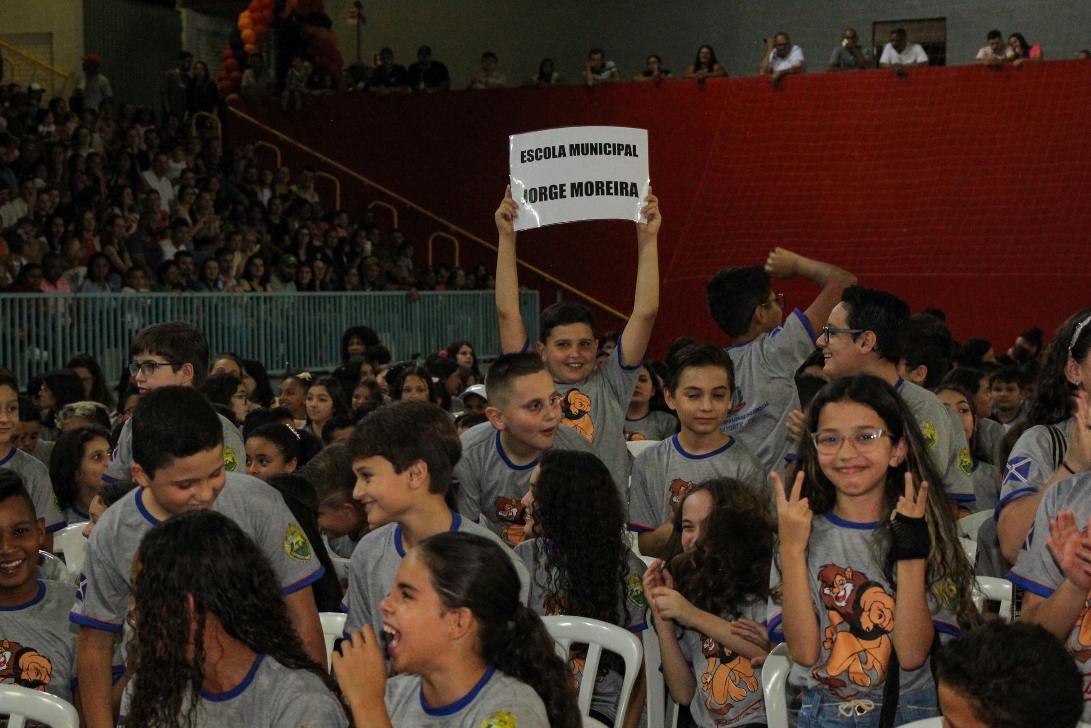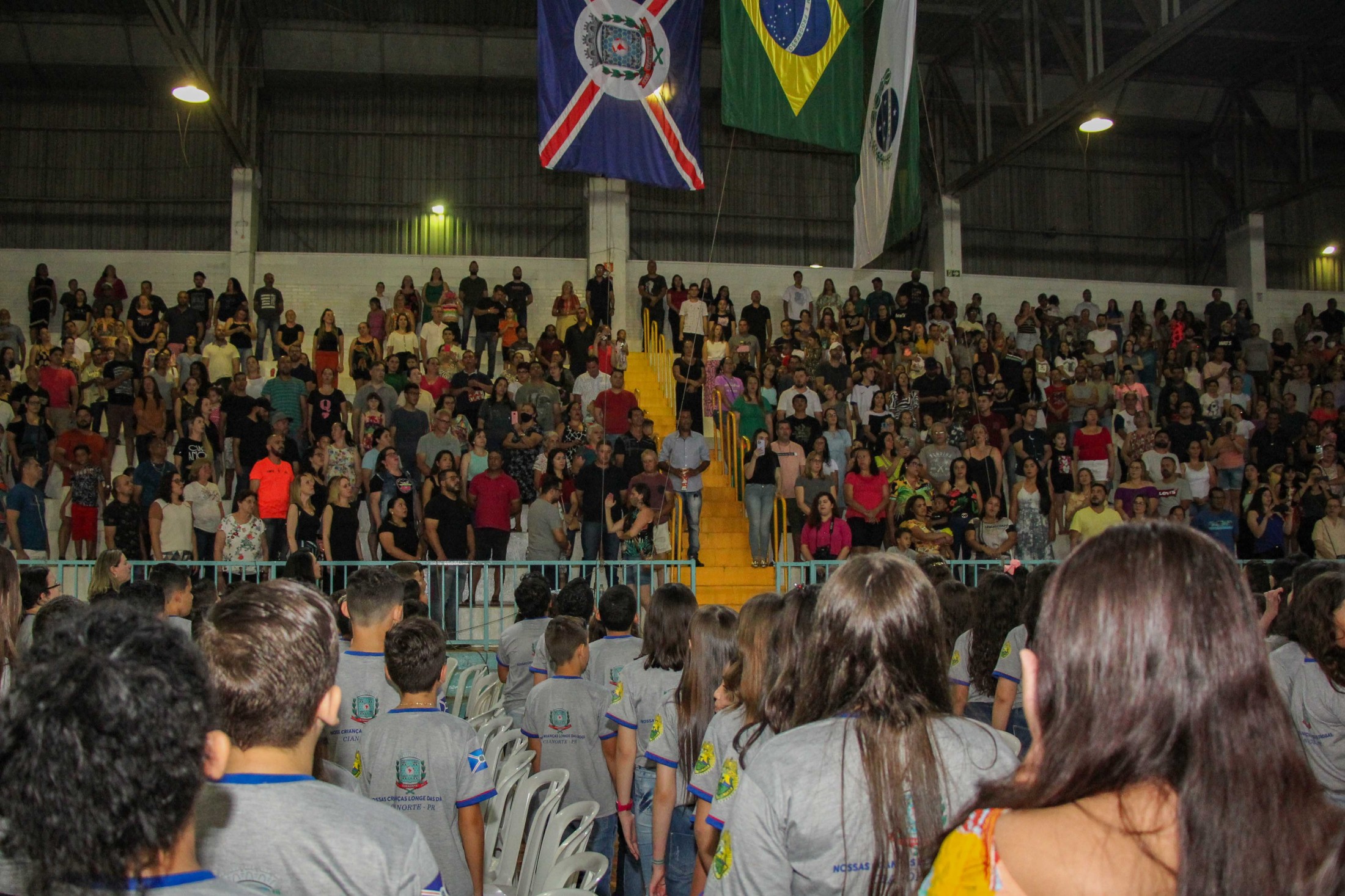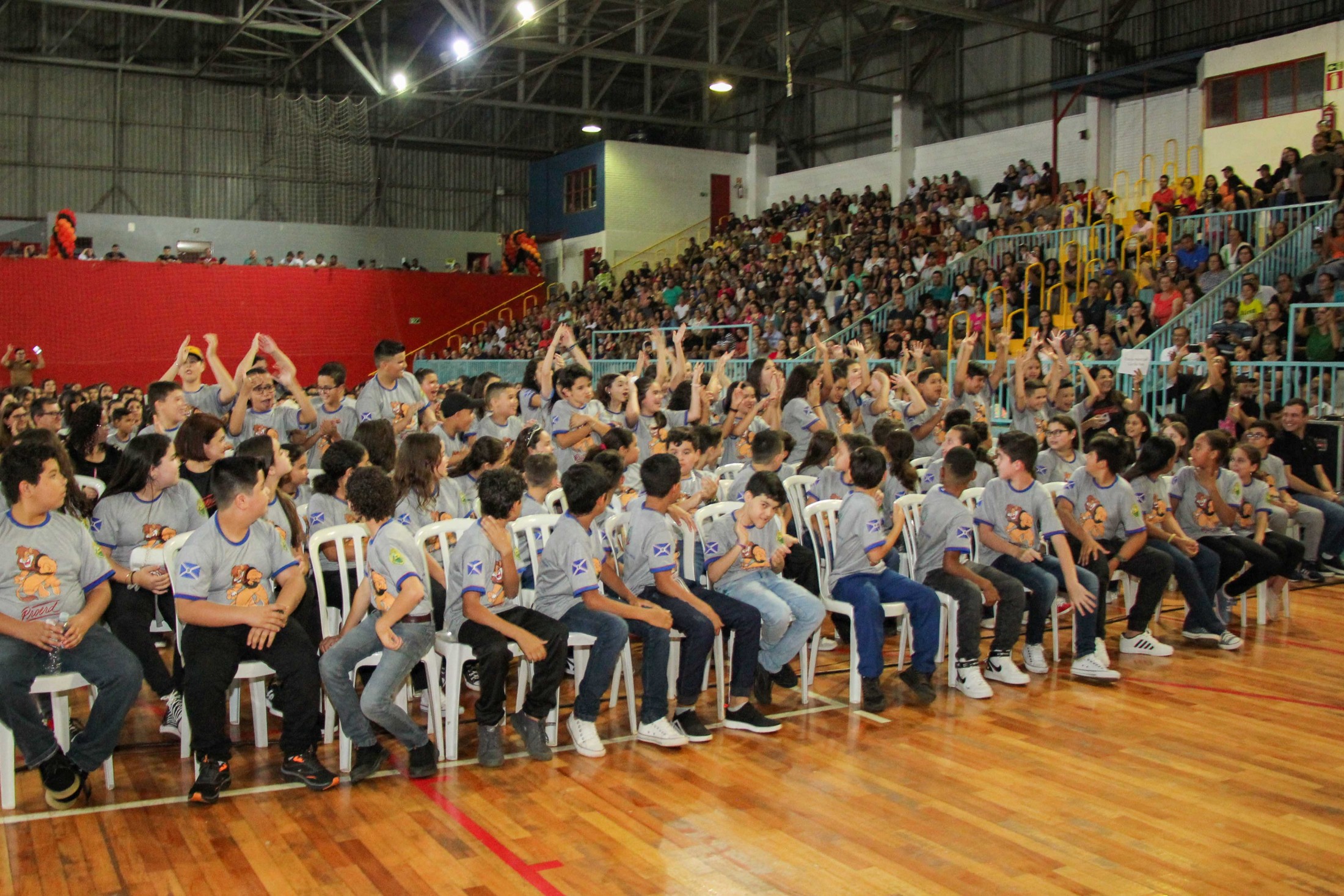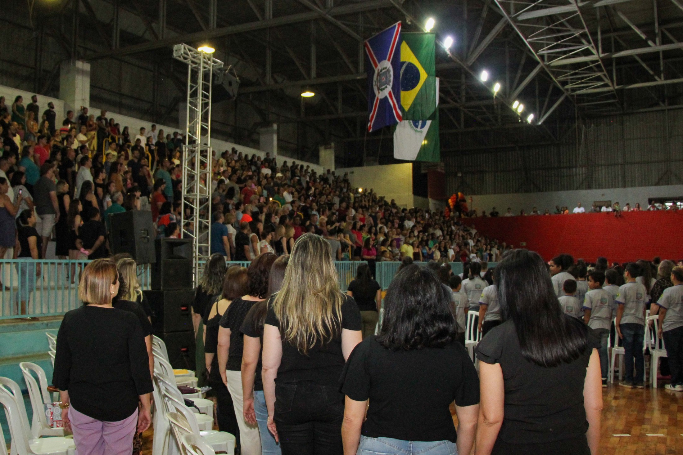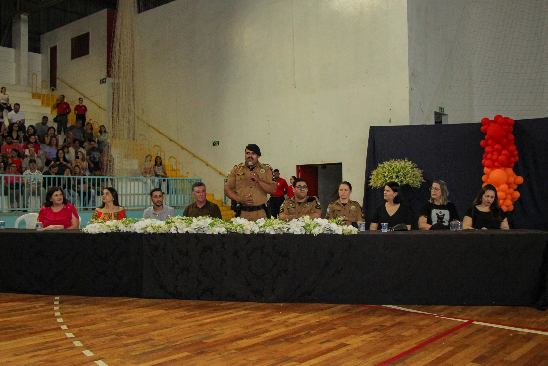 Emoção e alegria marcaram a solenidade de formatura do Programa Educacional de Resistência às Drogas e à Violência – Proerd, realizada na noite da última quinta-feira (10), no Ginásio de Esportes Tancredo Neves (Tancredão). O evento reuniu cerca de 3 mil pessoas, entre autoridades, militares, profissionais da educação, familiares e, aproximadamente, 670 estudantes do 5º ano do Ensino Fundamental, das 13 escolas da rede municipal de ensino, participantes do programa.