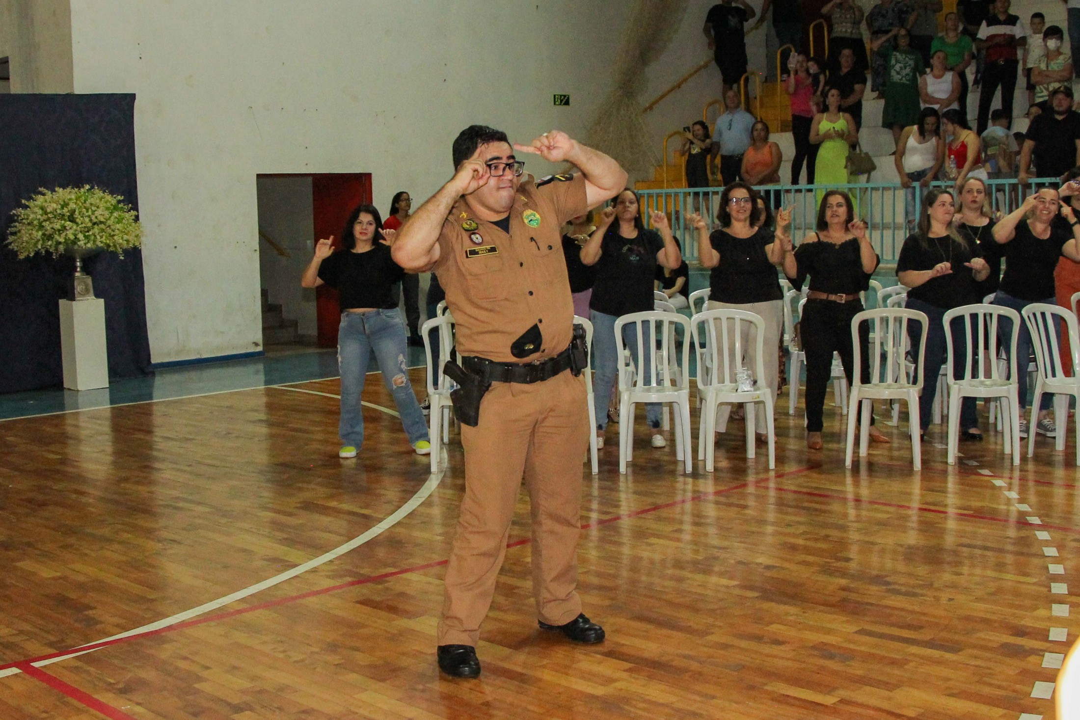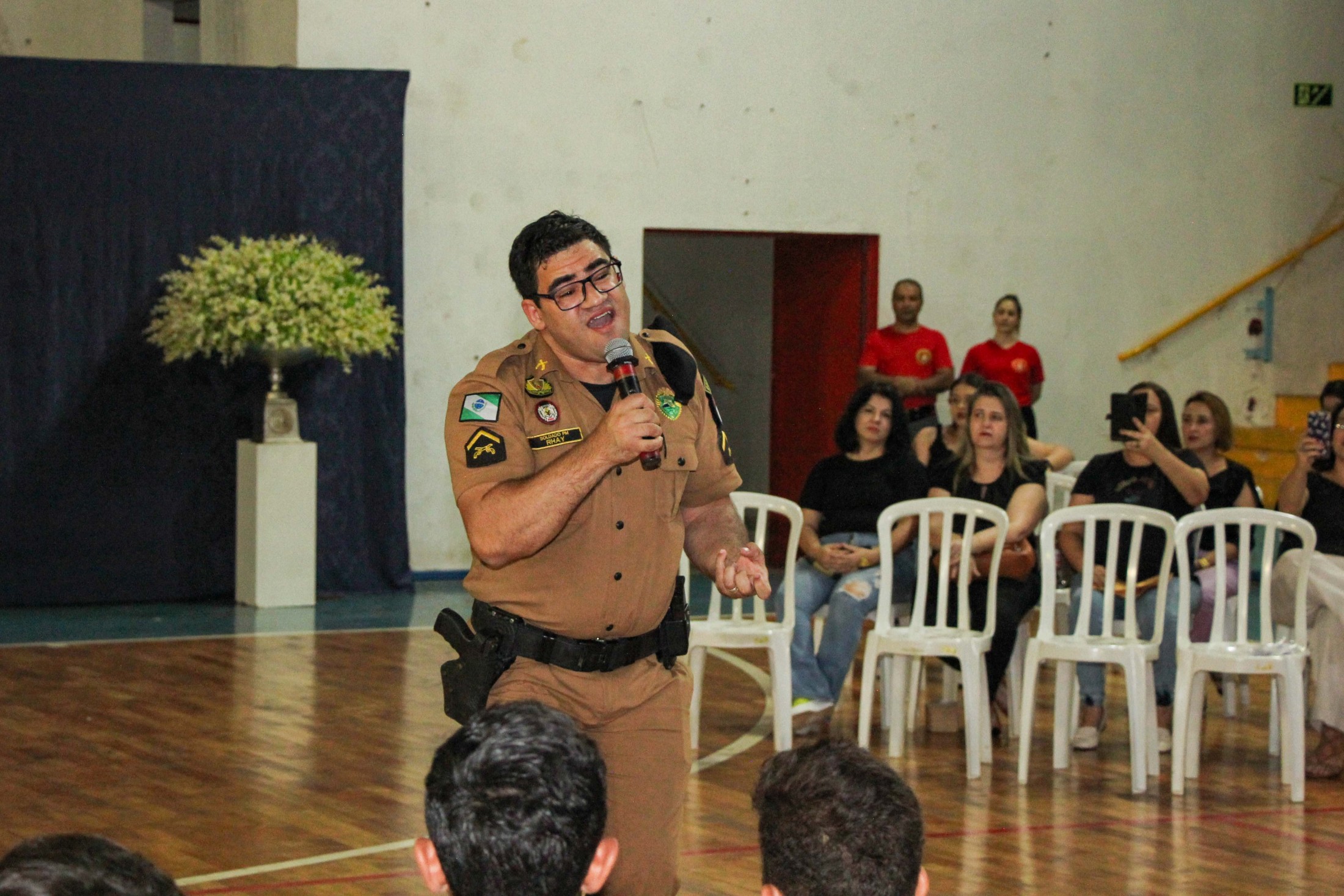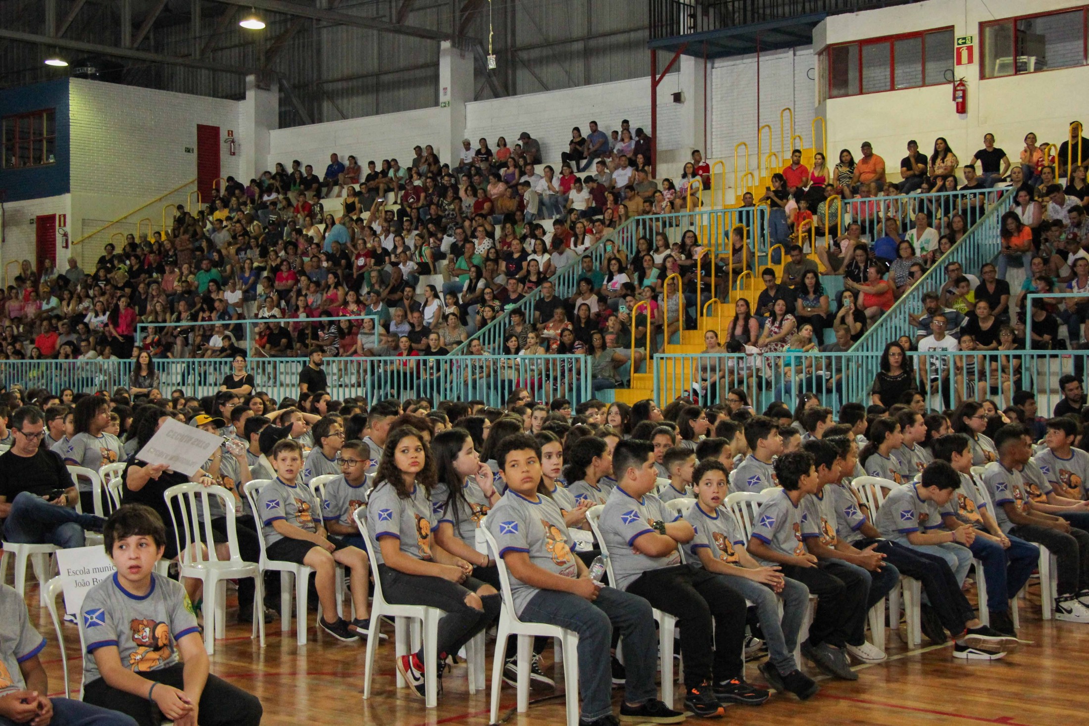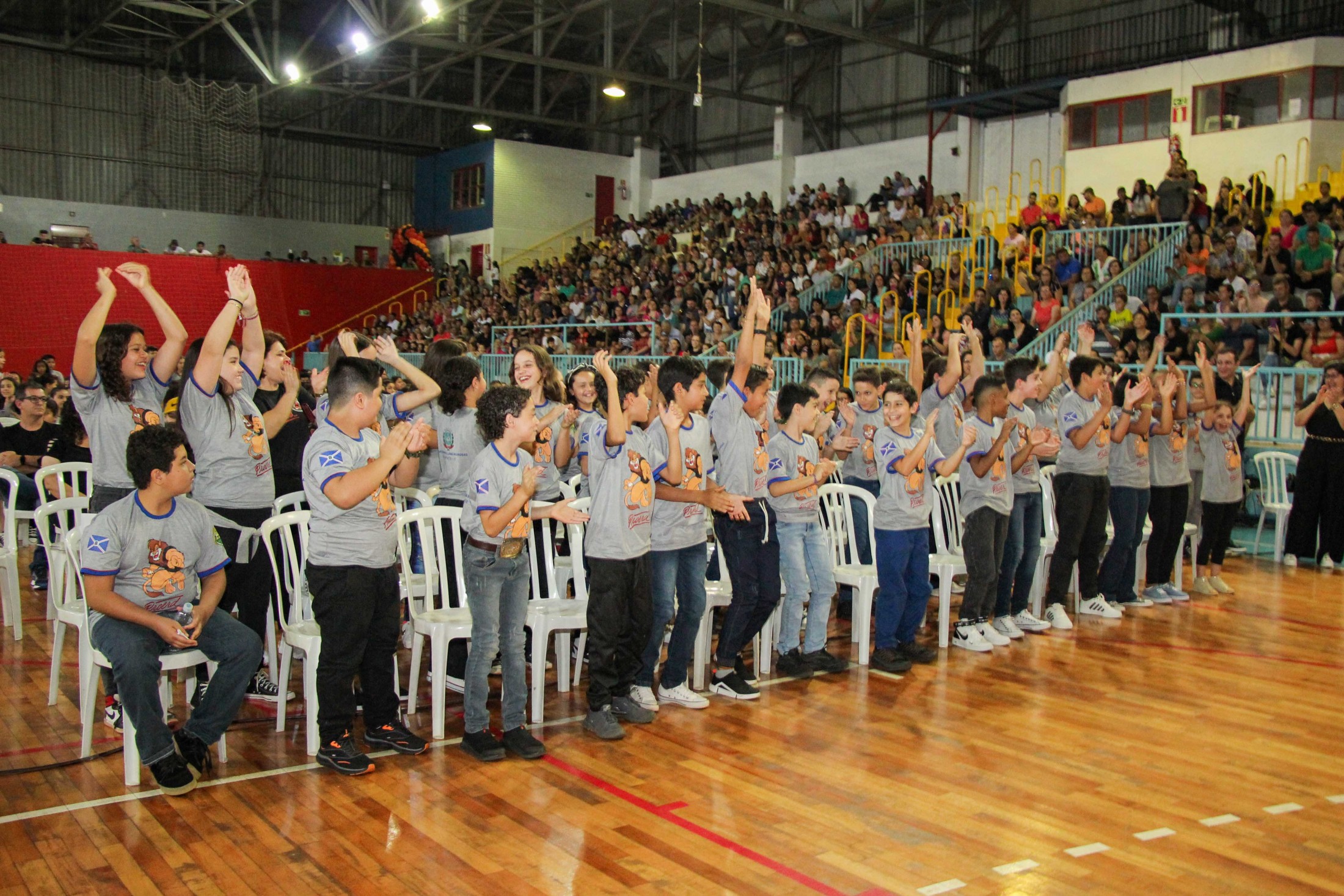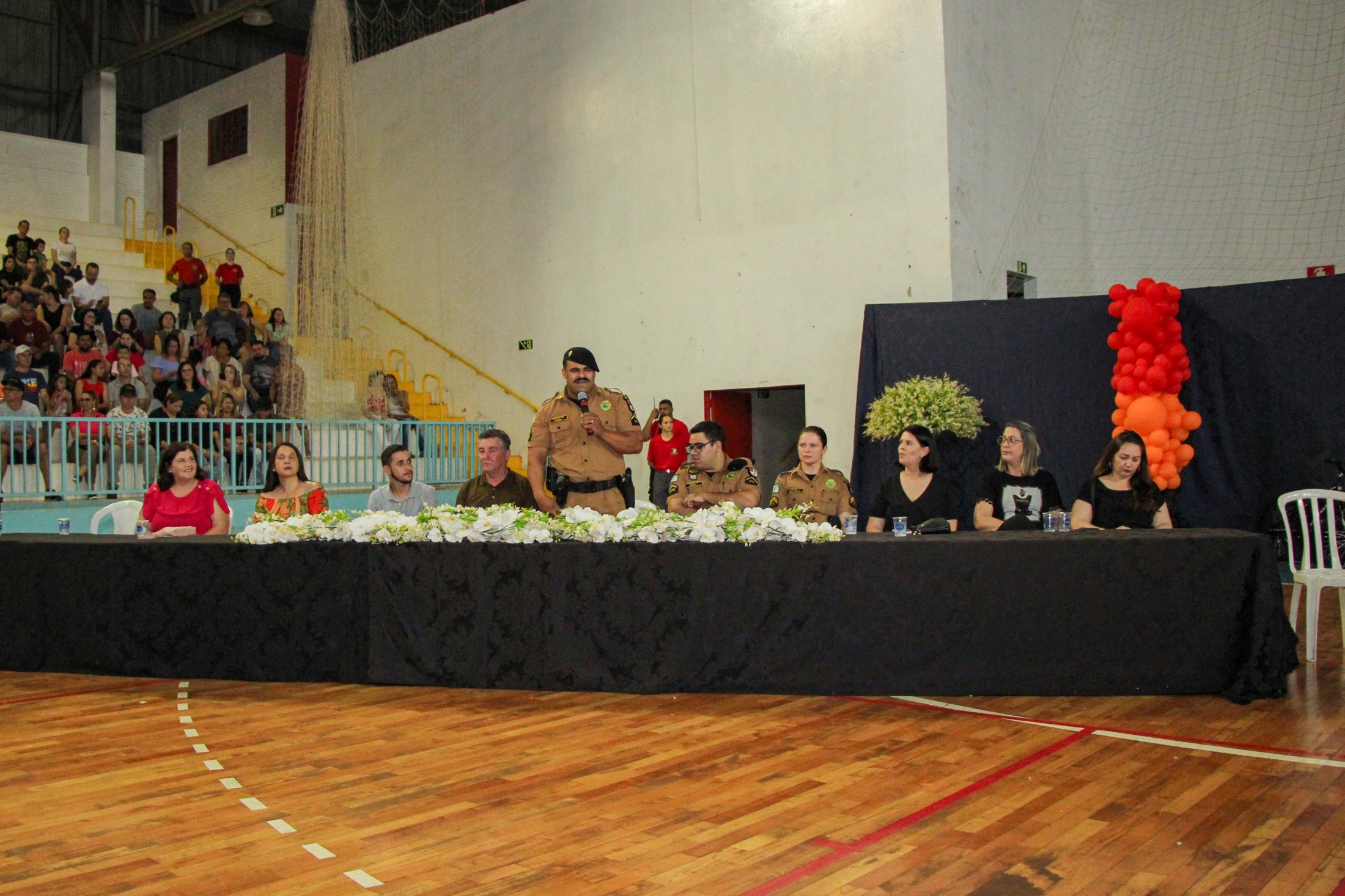 Emoção e alegria marcaram a solenidade de formatura do Programa Educacional de Resistência às Drogas e à Violência – Proerd, realizada na noite da última quinta-feira (10), no Ginásio de Esportes Tancredo Neves (Tancredão). O evento reuniu cerca de 3 mil pessoas, entre autoridades, militares, profissionais da educação, familiares e, aproximadamente, 670 estudantes do 5º ano do Ensino Fundamental, das 13 escolas da rede municipal de ensino, participantes do programa.