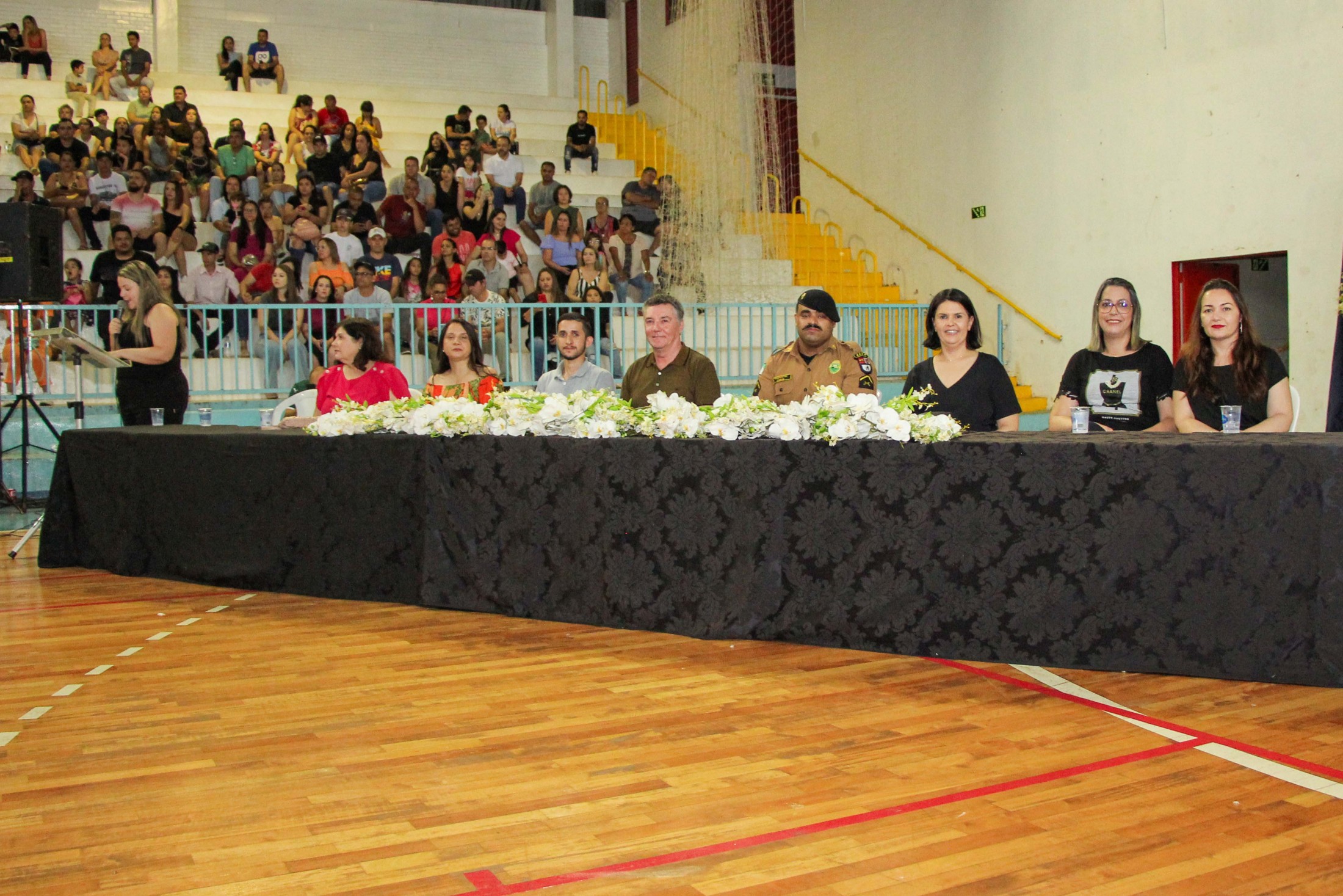 A noite foi abrilhantada por duas apresentações musicais, uma realizada pelos alunos da Escola Municipal Lidia Usuy Ohi e outra pelos policiais militares, Soldados Rhay e Farias. A solenidade contou, ainda, com a presença dos vereadores professora Neuza Casassa, Márcia Pereira e Afonso Lima; da diretora geral da Secretaria Municipal de Educação, Shirley Scomparin Ponciano da Silva; e da diretora de Planejamento Estratégico e Políticas Públicas, Jakeline Plácido Marcon.