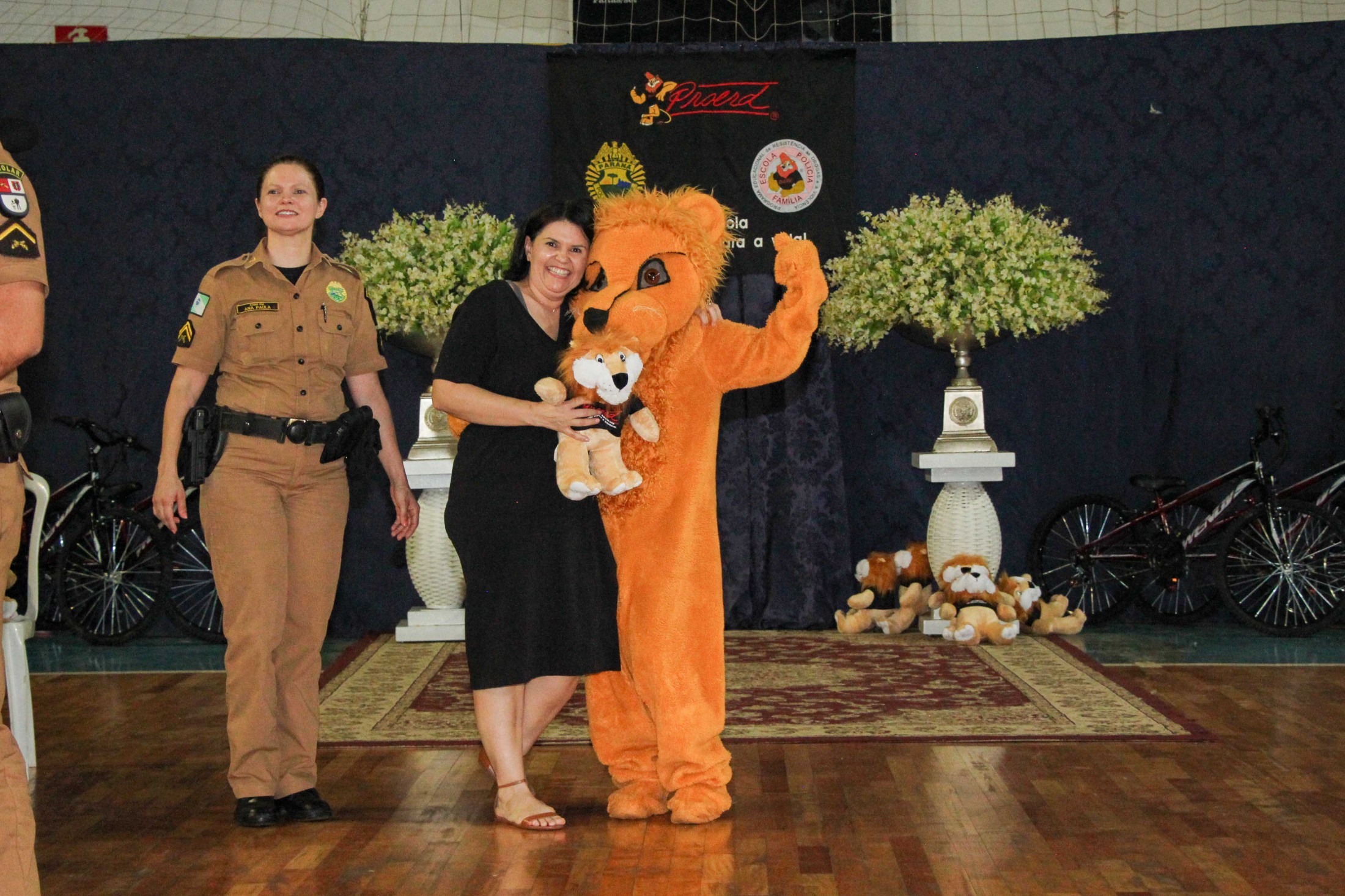 Na oportunidade, os autores das cinco melhores redações sobre o combate às drogas receberam uma bicicleta cada, patrocinadas pelas empresas Serallê Calçados, Curtume Cialeather Couros, B&F Agro e Grupo Morena Rosa. Também foram sorteadas 30 pelúcias do leão Dare, mascote do programa, adquiridas pelas APMF’s das escolas.