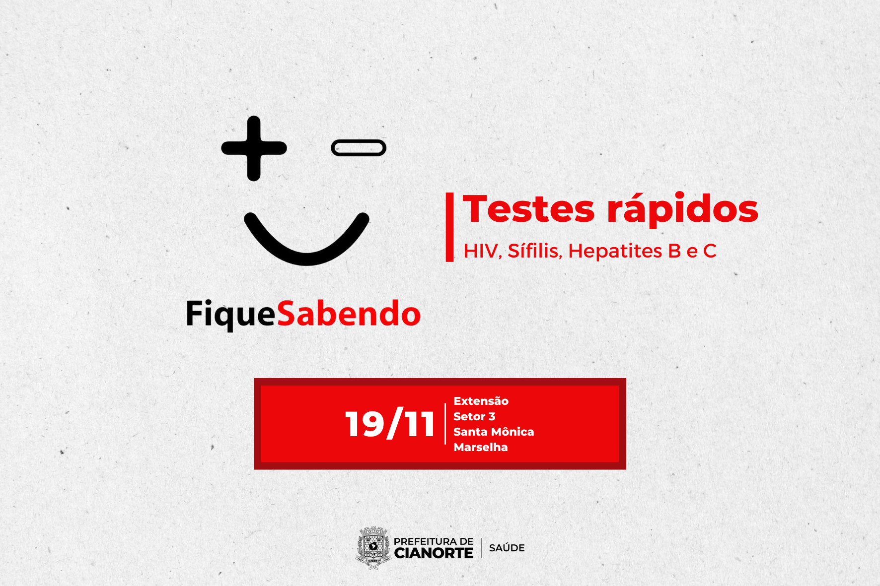 Neste mês, junto ao Novembro Azul, o Centro de Testagem e Aconselhamento (CTA) realiza testes rápidos e gratuitos de HIV, Sífilis e Hepatites B e C para toda a população em horário especial, nas Unidades Básicas de Saúde (UBSs). Neste sábado (19), as UBSs: Extensão, Setor 3, Santa Mônica e Marselha atenderão, das 08h às 16h. Para utilizar os serviçoes, não é necessário agendamento. Basta comparecer e apresentar um documento com foto. Os resultados saem em cerca de 30 minutos e são sigilosos.