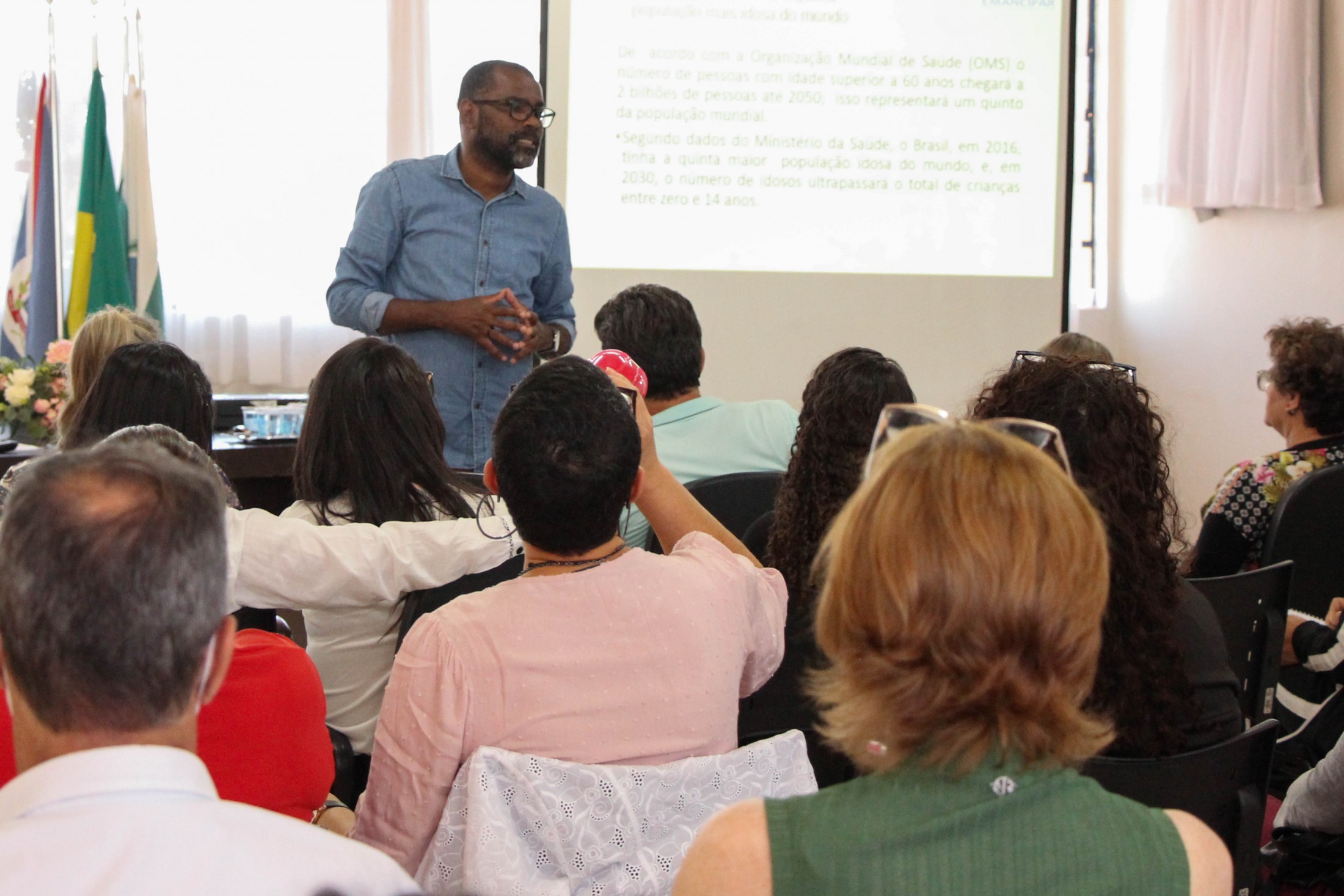A qualificação foi conduzida por Adrianis Galdino da Silva Junior, que trabalhou os temas “Como lidar com as demandas postas, situações de risco e violência”, no período da manhã, e “O Conselho de Direitos da Pessoa Idosa como órgão de defesa e garantia de direitos”, durante a tarde.