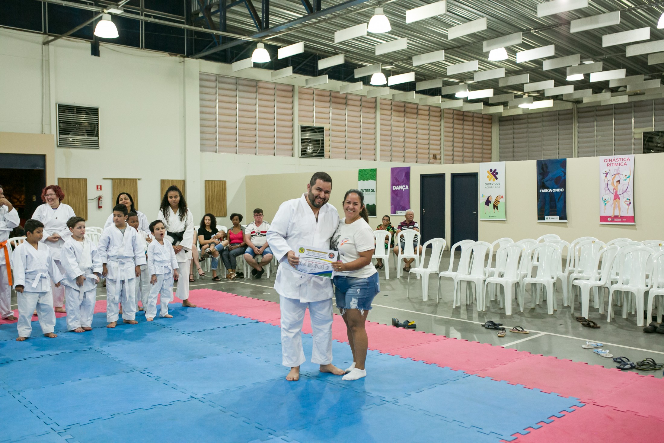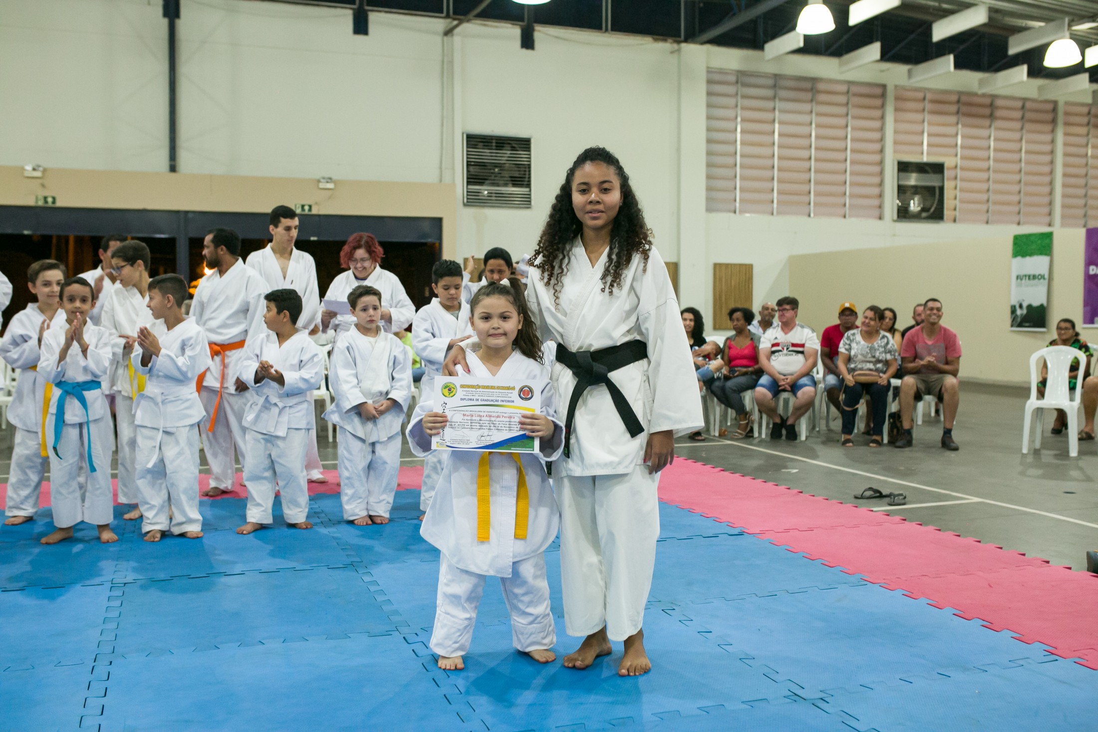 No último sábado (19), os alunos da escolinha de Karatê-Do da Secretaria Municipal de Esporte e Lazer (SMEL) foram graduados para outras faixas após um ano de qualificações e participações em competições da SMEL e da Confederação Brasileira de Karatê-Do (CBKD). O evento aconteceu no Centro Poliesportivo Carlos Yoshito Mori, abrilhantado por apresentações de dança e canto gospel, reunindo cerca de 200 pessoas.
