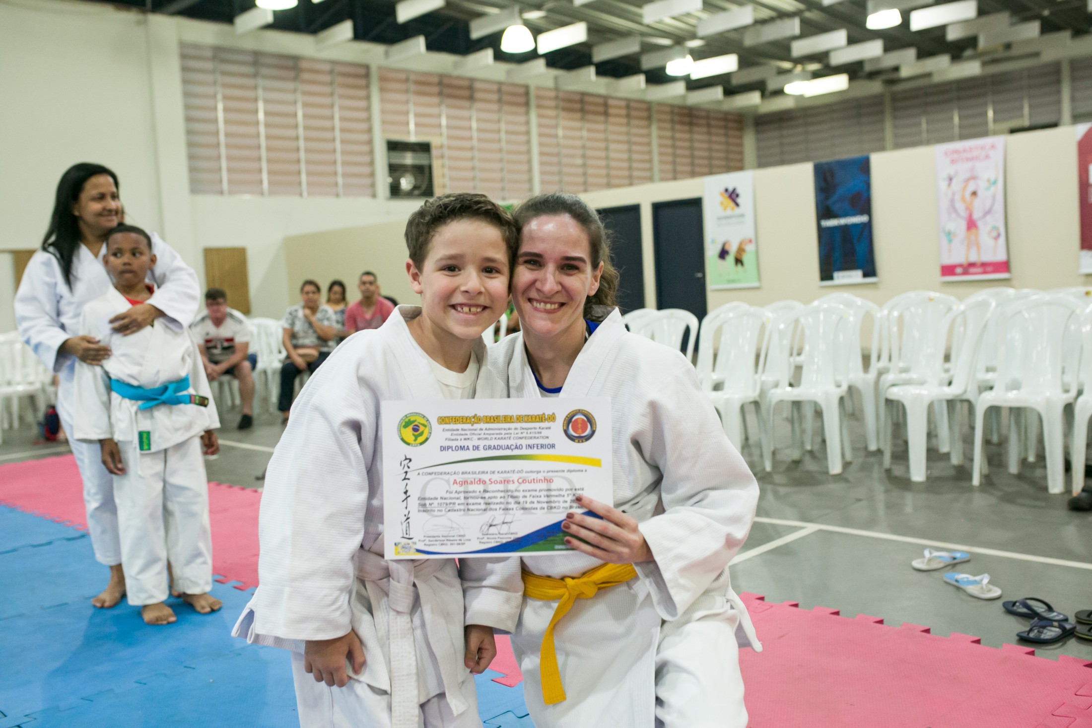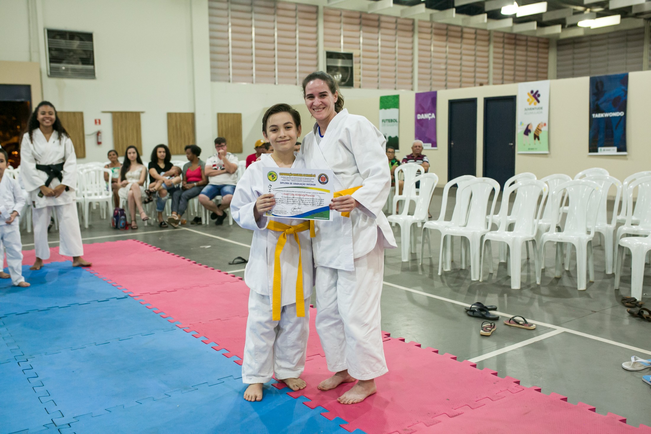 Ao todo, 25 alunos passaram diretamente pelo exame e outros 30 acompanharam a ocasião. Foram distribuídas seis faixas vermelhas, dez amarelas e nove azuis. “A graduação é o momento de concretizar o processo de qualificação dos atletas. Também é uma oportunidade das famílias e da comunidade conhecerem o trabalho das escolinhas”, afirmou um dos professores, sensei Hamilton Camargo. A secretária da pasta, Pauliane Moreno Guides, efetuou elogios. “Parabéns aos karatecas pelo empenho; aos pais pelo apoio; e aos nossos servidores e parceiros pela dedicação”, disse.