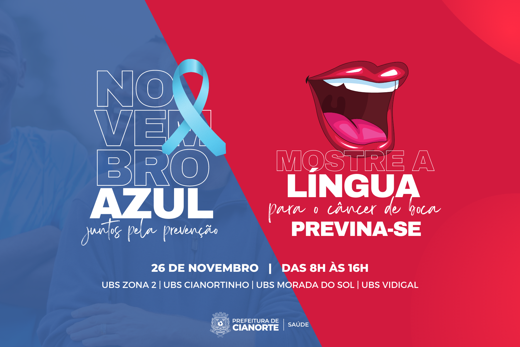 A programação das campanhas do Novembro Azul (contra o câncer de Próstata) e Novembro Vermelho (combate ao câncer de boca) segue com ações neste sábado (26). As Unidades Básicas de Saúde (UBSs)da Zona 02, Cianortinho, Morada do Sol e Vidigal atenderão em horário especial, das 08h às 16h.