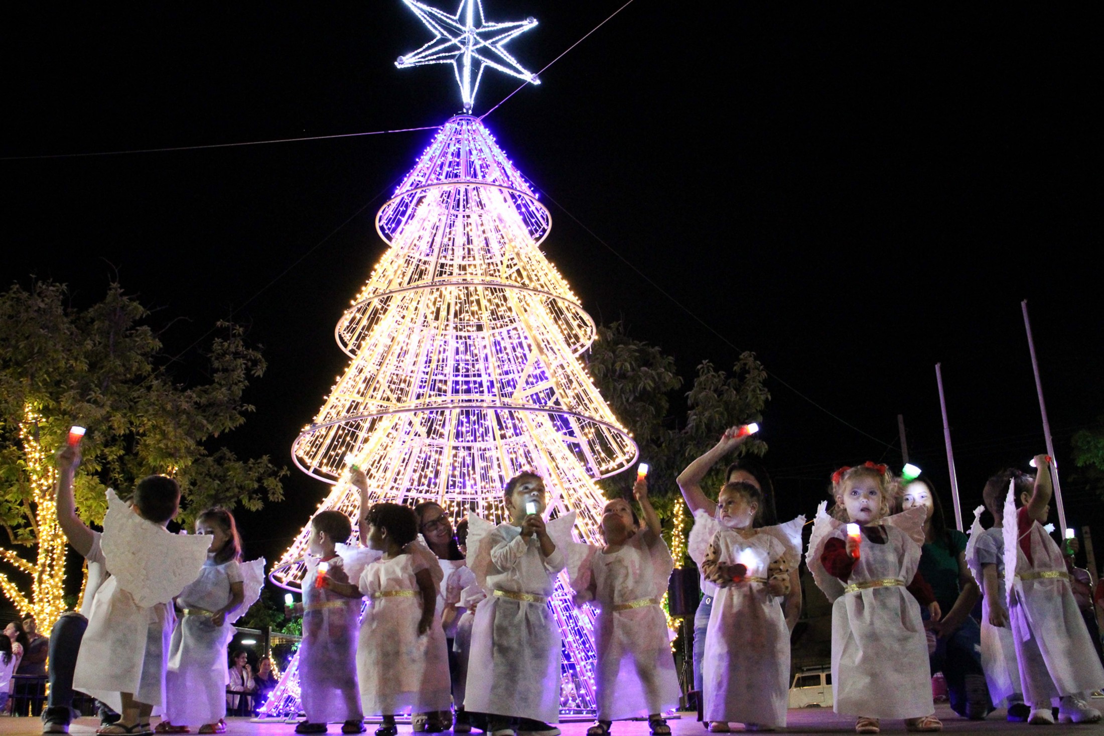 Na noite da última terça-feira (29), a comunidade do distrito de São Lourenço se reuniu, na Praça Sete de Setembro, para o lançamento da decoração natalina. A ocasião contou com o acendimento das luzes e apresentações do CMEI Criança Esperança, da Fanfarra da Amafil e de música com gaita por Isaac Pimentel.