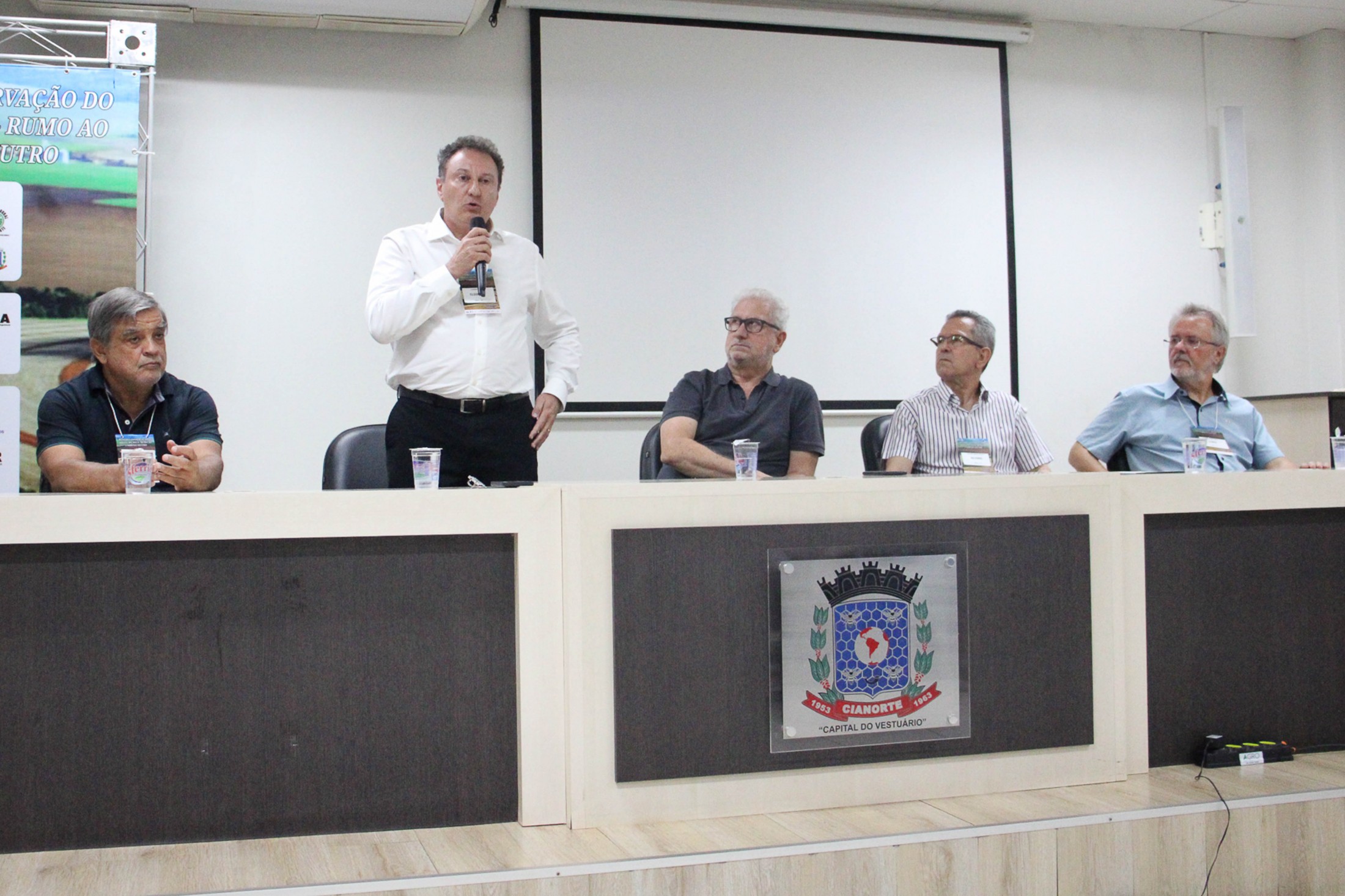 A Prefeitura de Cianorte lançou, na noite da última terça-feira (29), uma proposta de política pública inédita que promete transformar a pecuária no município. O Programa de Produção Agropecuária Sustentável, o PROPAS, utilizará a estratégia da Integração Lavoura Pecuária Floresta para aumentar a produtividade de carne, couro, leite e derivados, assim como de forragem, mandioca e eucalipto. A iniciativa foi apresentada pelo secretário municipal de Agricultura, Anízio Menarim Filho, e aconteceu durante o evento técnico “Manejo e Conservação do Solo e da Água – Rumo ao Carbono Neutro”, no auditório do Paço Municipal.