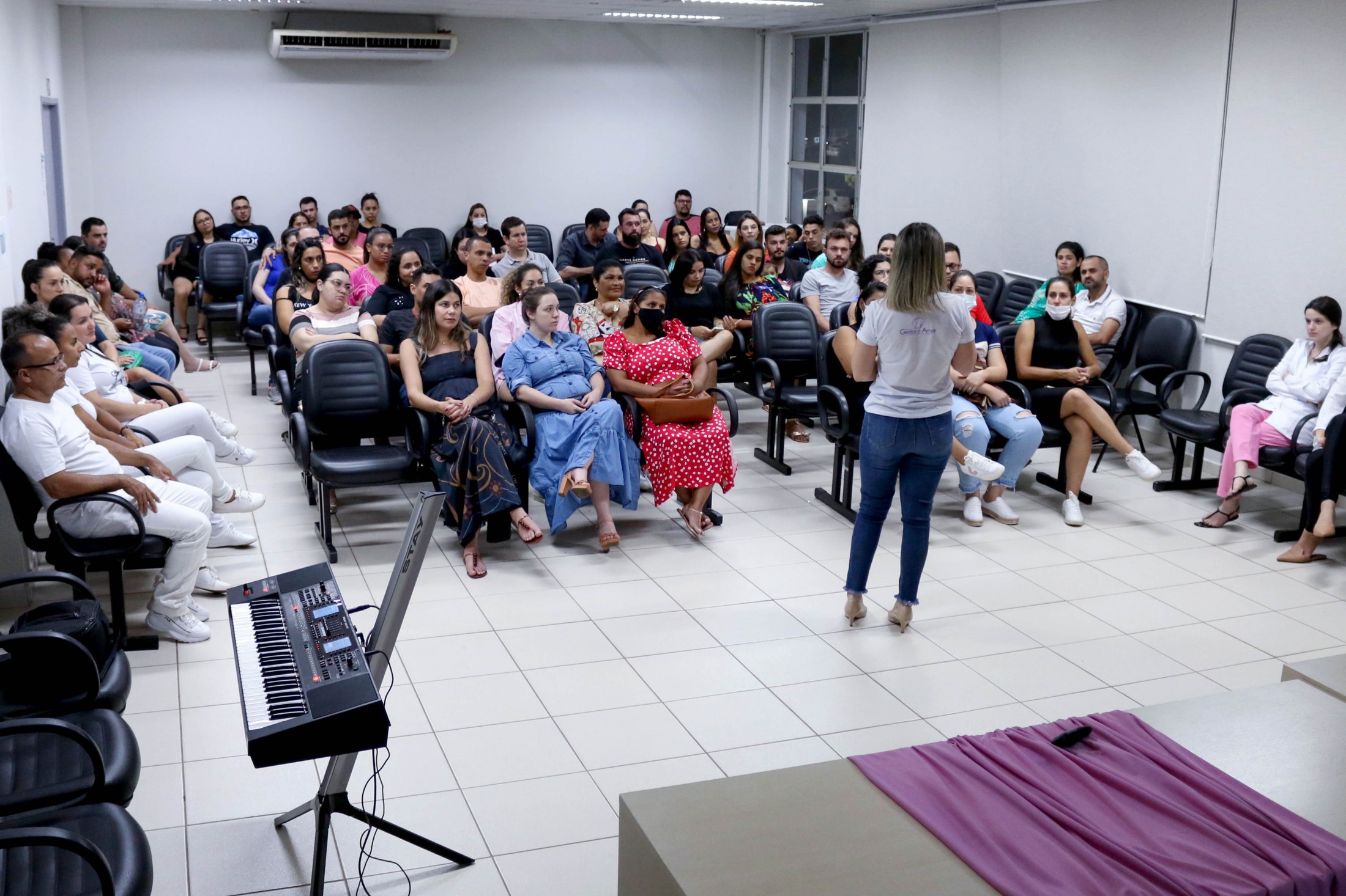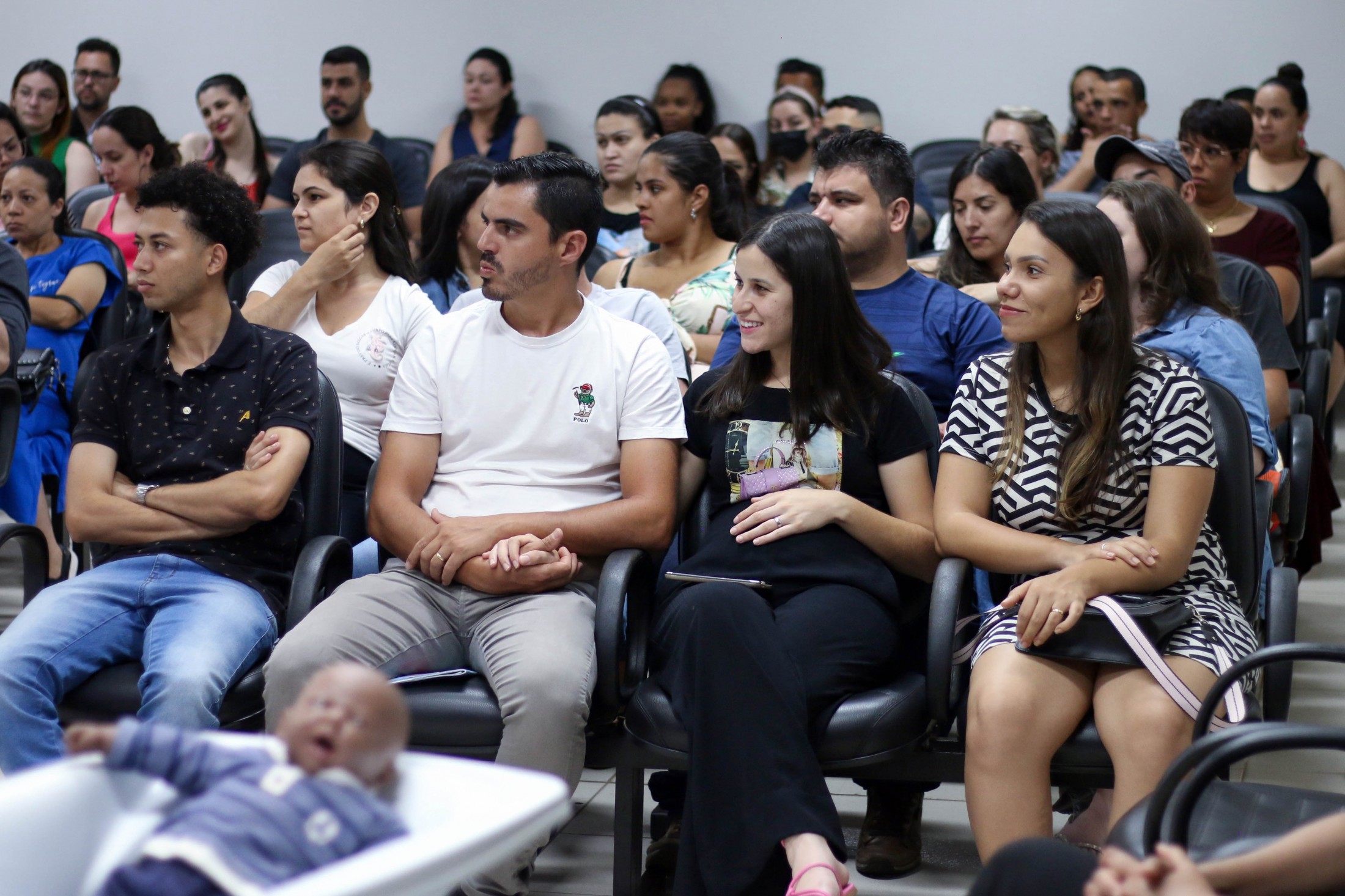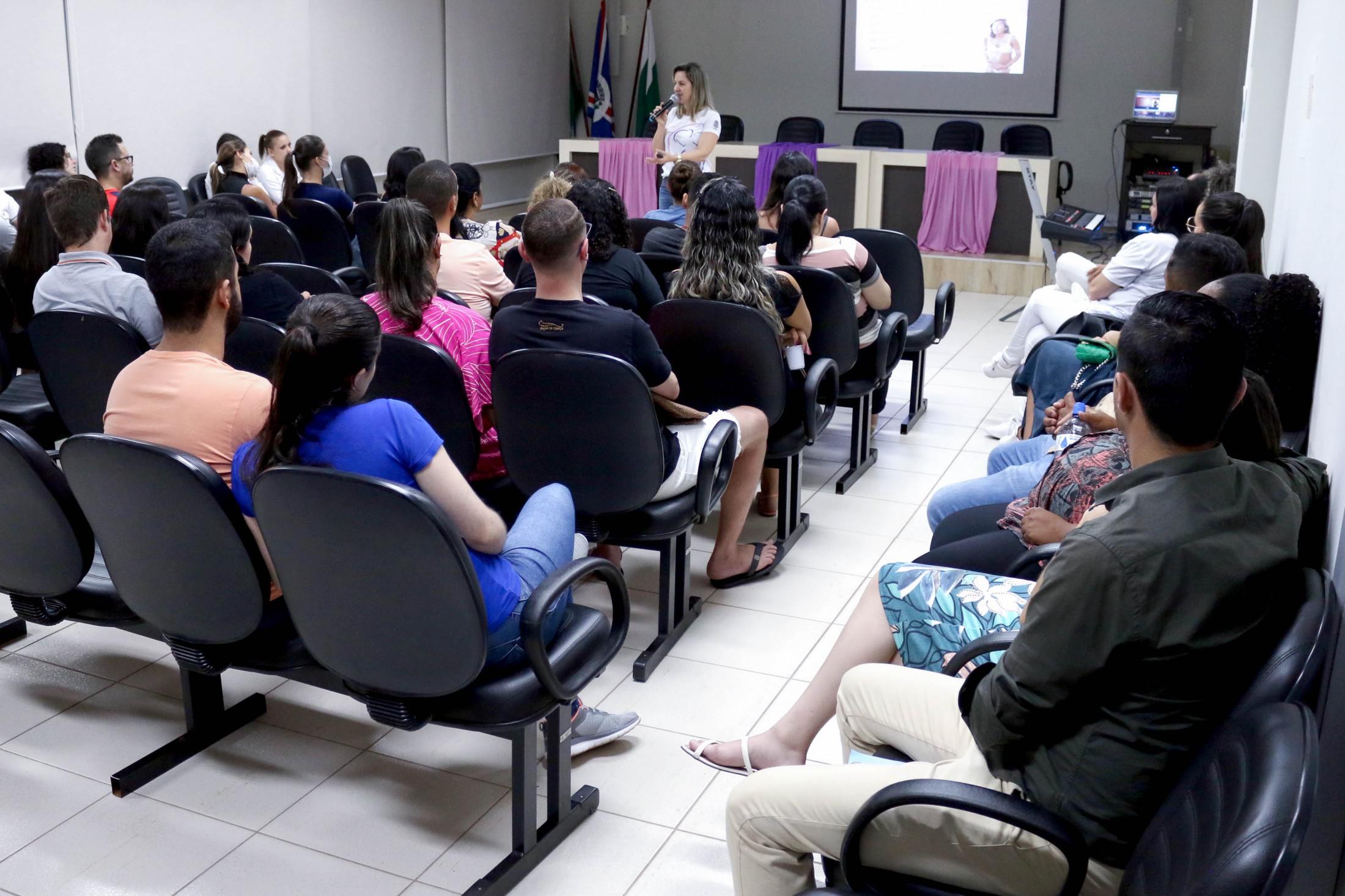 Na noite dessa terça-feira (6), após três encontros semanais, mais um grupo, de cerca de 80 pessoas, formado por futuras mamães e seus acompanhantes, finalizou o Curso para Gestantes, ofertado pelo Projeto Gestar e Amar, da Secretaria Municipal de Saúde. A última reunião, no auditório do Paço Municipal, foi conduzida pela fonoaudióloga, Ana Claudia Cossich, e pela enfermeira obstétrica, Patrícia Busto Moreno, que trataram o tema amamentação.
