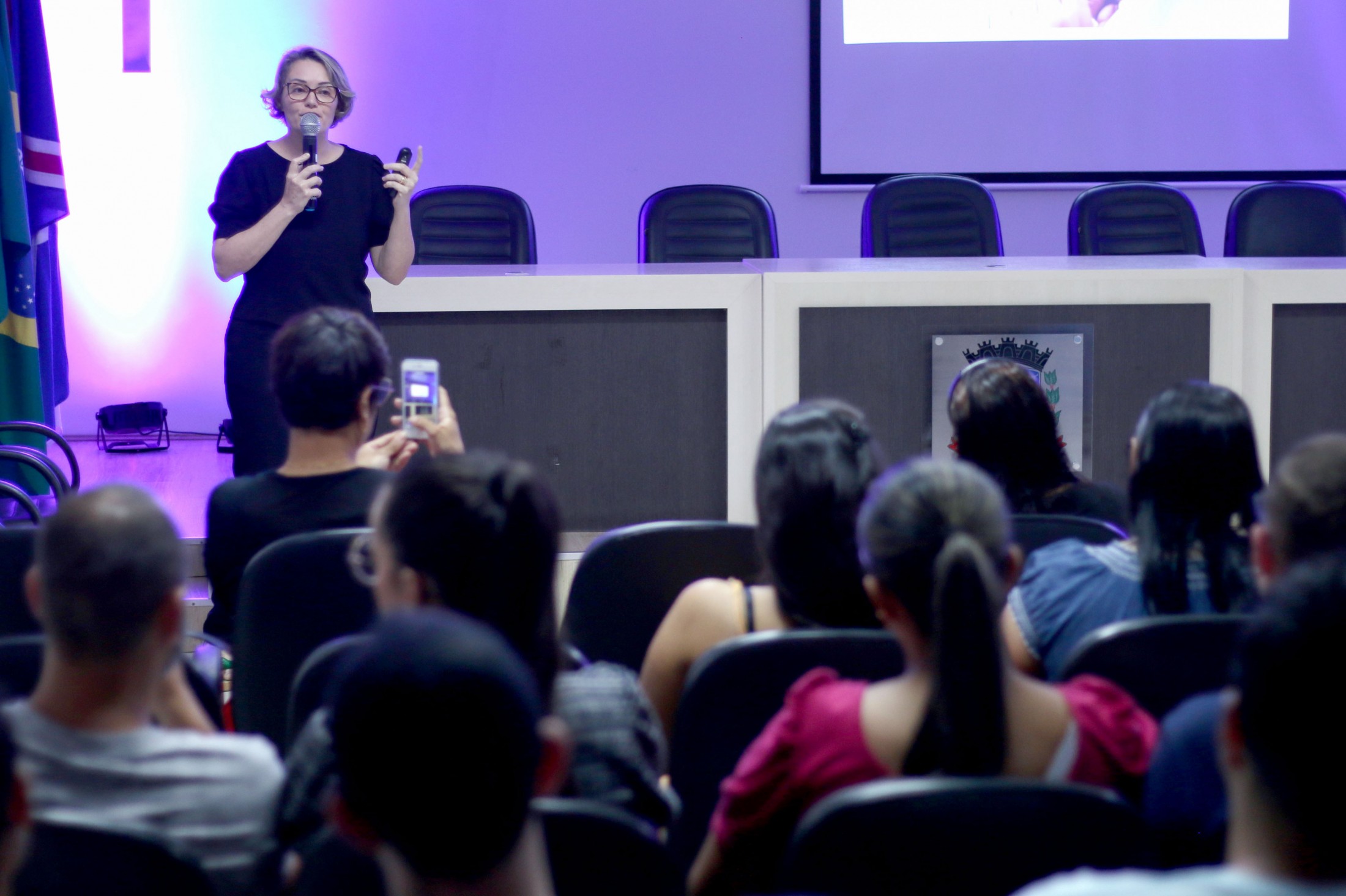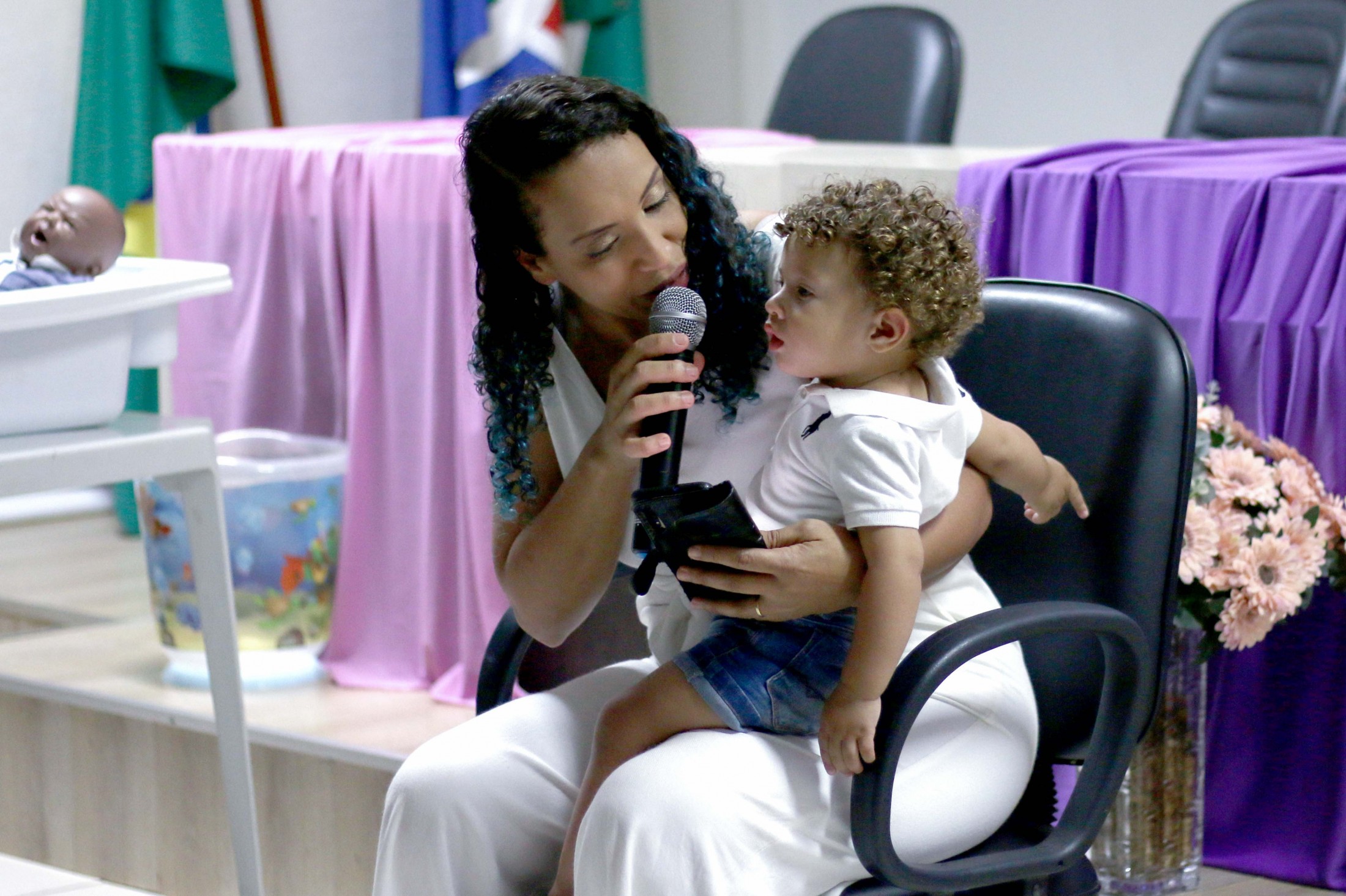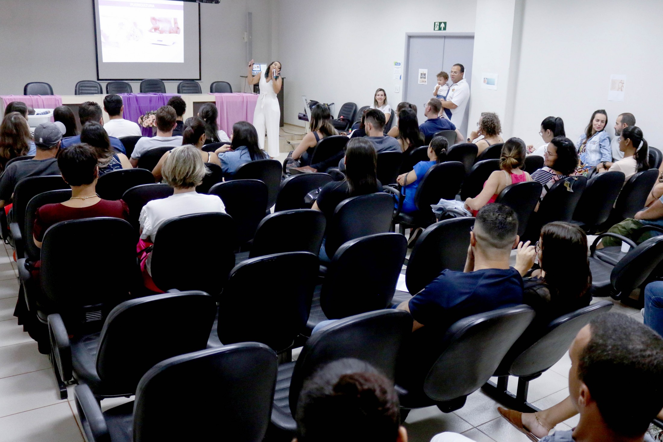 Na noite dessa terça-feira (6), após três encontros semanais, mais um grupo, de cerca de 80 pessoas, formado por futuras mamães e seus acompanhantes, finalizou o Curso para Gestantes, ofertado pelo Projeto Gestar e Amar, da Secretaria Municipal de Saúde. A última reunião, no auditório do Paço Municipal, foi conduzida pela fonoaudióloga, Ana Claudia Cossich, e pela enfermeira obstétrica, Patrícia Busto Moreno, que trataram o tema amamentação.