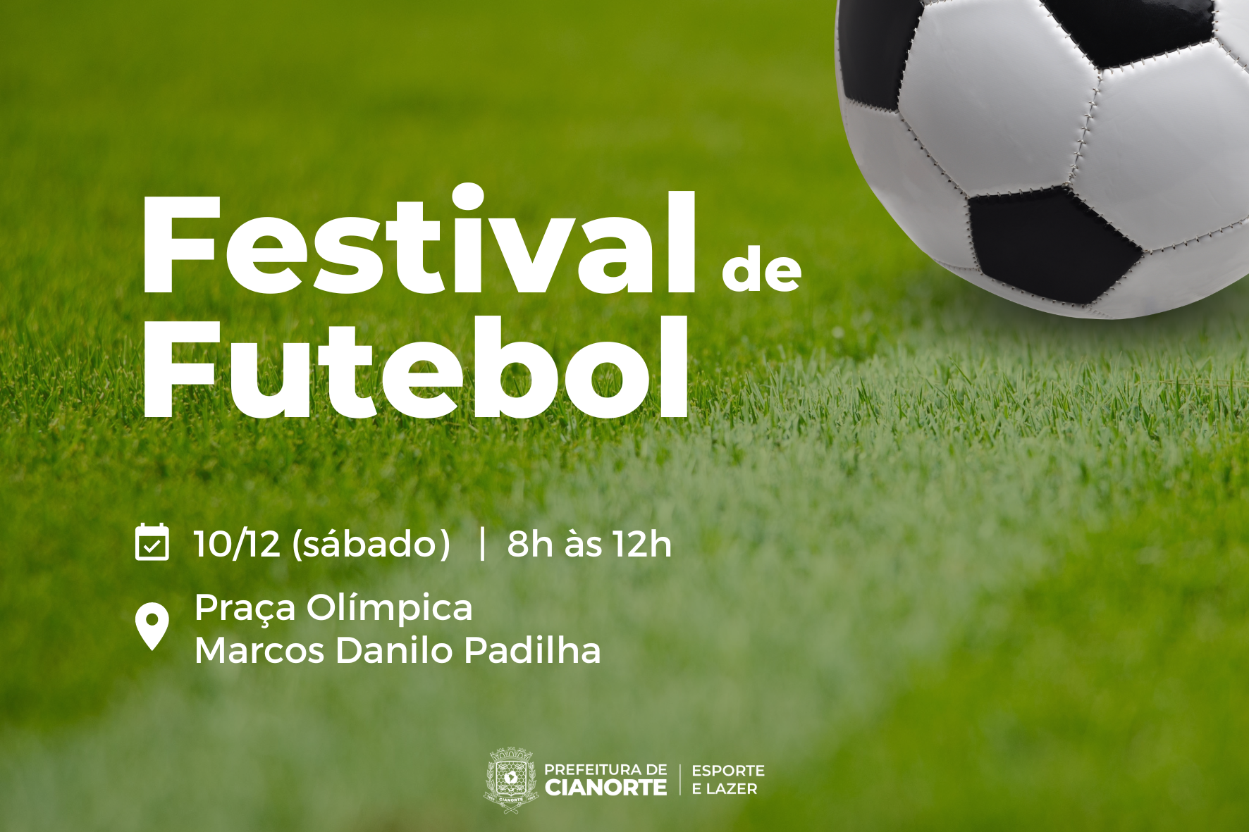 A Secretaria Municipal de Esporte e Lazer (SMEL) promove, neste sábado (10), um grande encontro das escolinhas de futebol, nas modalidades de campo, suíço e sintético, na Praça Olímpica Marcos Danilo Padilha, das 8h às 12h. A estimativa é reunir os mais de 300 alunos em partidas amistosas, com o objetivo de proporcionar a confraternização entre as turmas dos professores Cleverson Ferraz, Diego Cabral e Renato Haro; além de possibilitar uma mostra do trabalho realizado durante o ano.