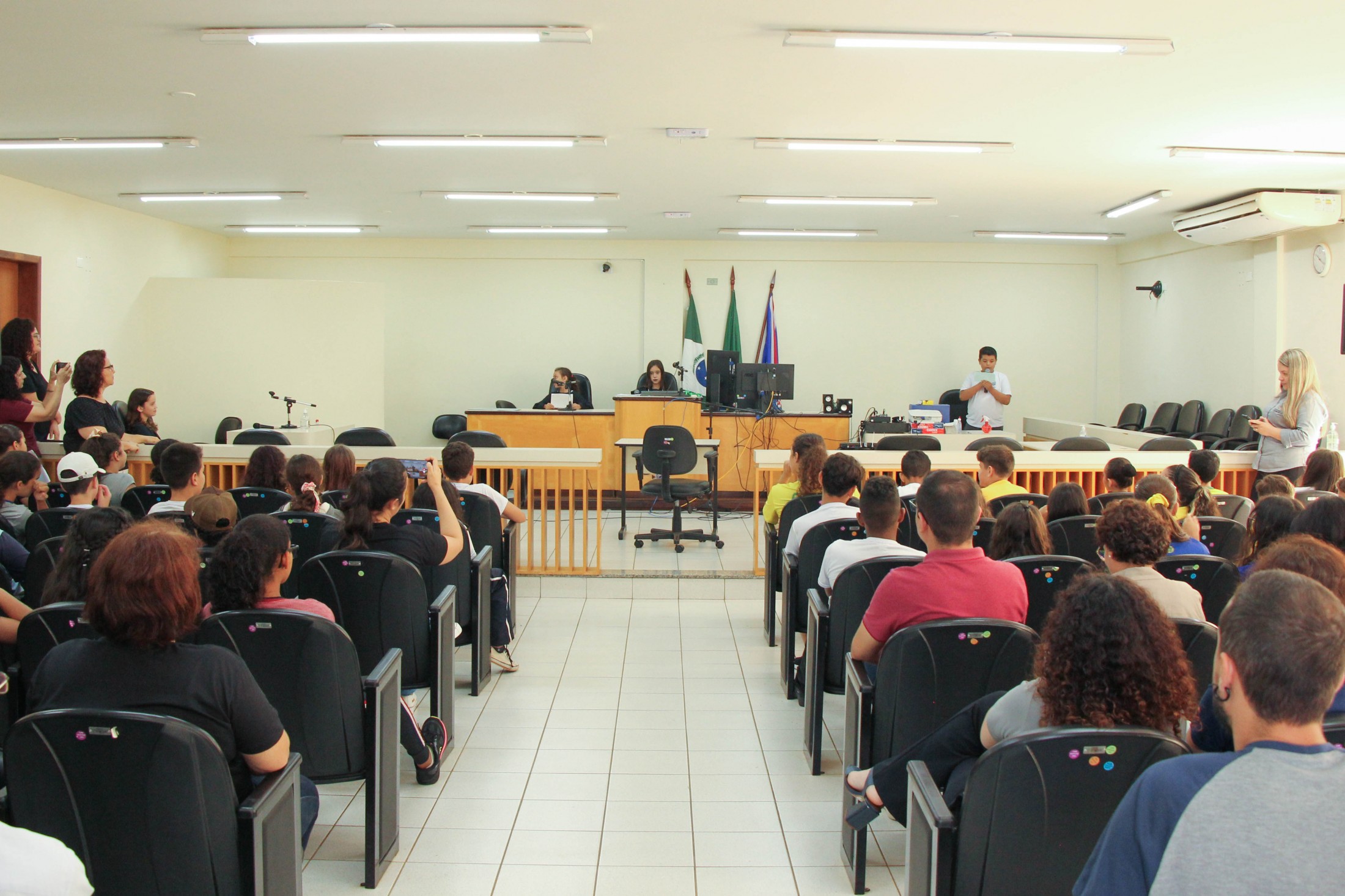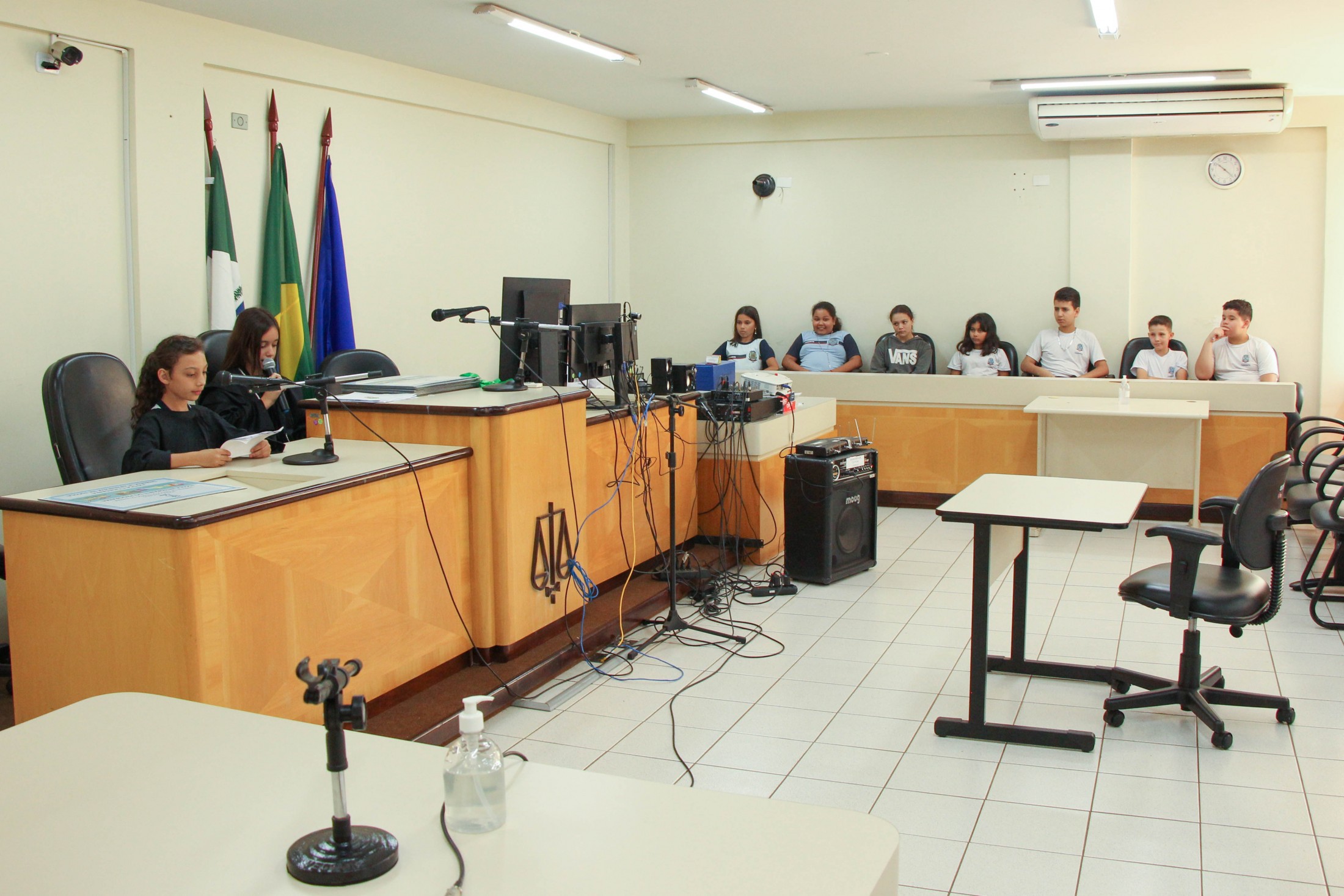 “A intenção do ‘Cidadania e Justiça também se aprendem na Escola’ é contribuir para a formação dos estudantes sobre deveres dos cidadãos; conscientização sobre os direitos e as formas de exercê-los; além de estabelecer relações entre o conteúdo curricular e as atividades dos Poderes no contexto da democracia, propiciando a almejada integração entre o Poder Judiciário e a sociedade”, destacou o magistrado, acompanhado pelos promotores de Justiça, Dra. Elaine Lopo, Dr. Bruno Rodrigues da Silva e Dr. Marcos Antônio Lopes Stann.