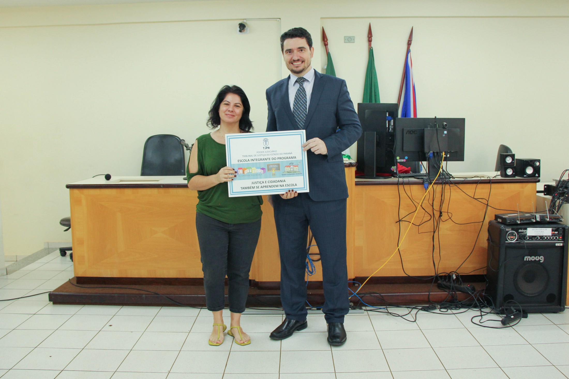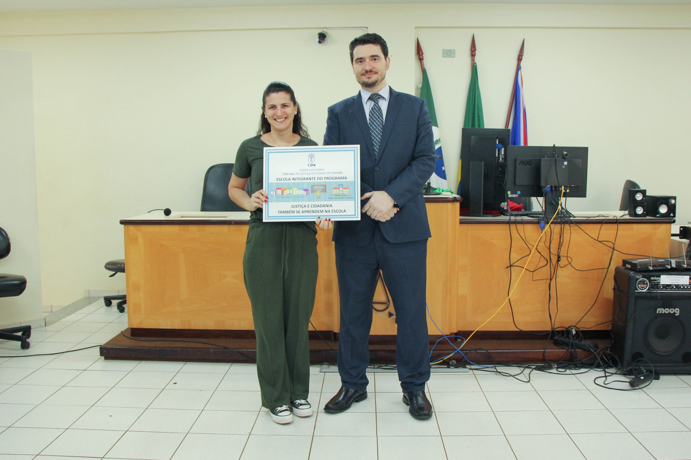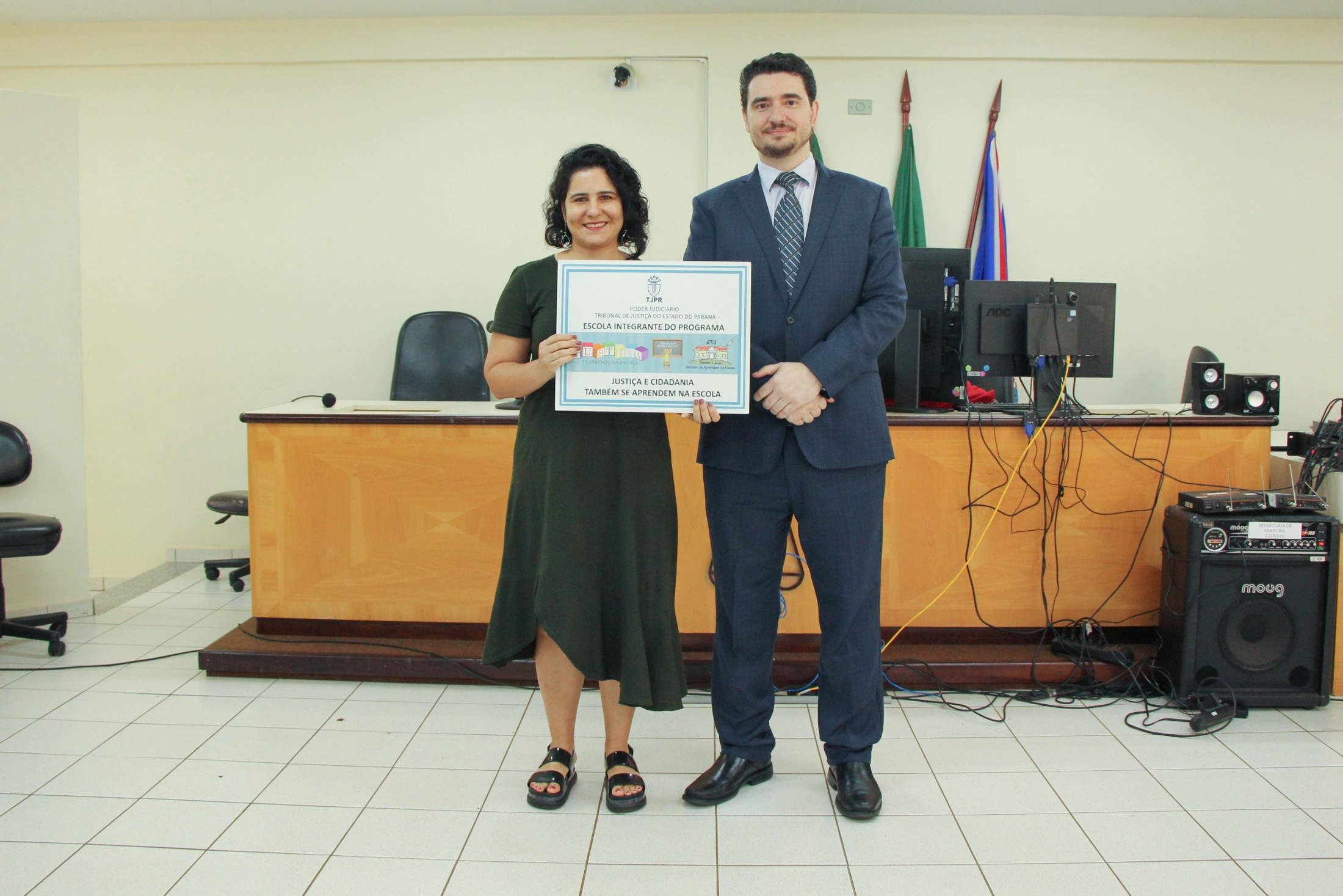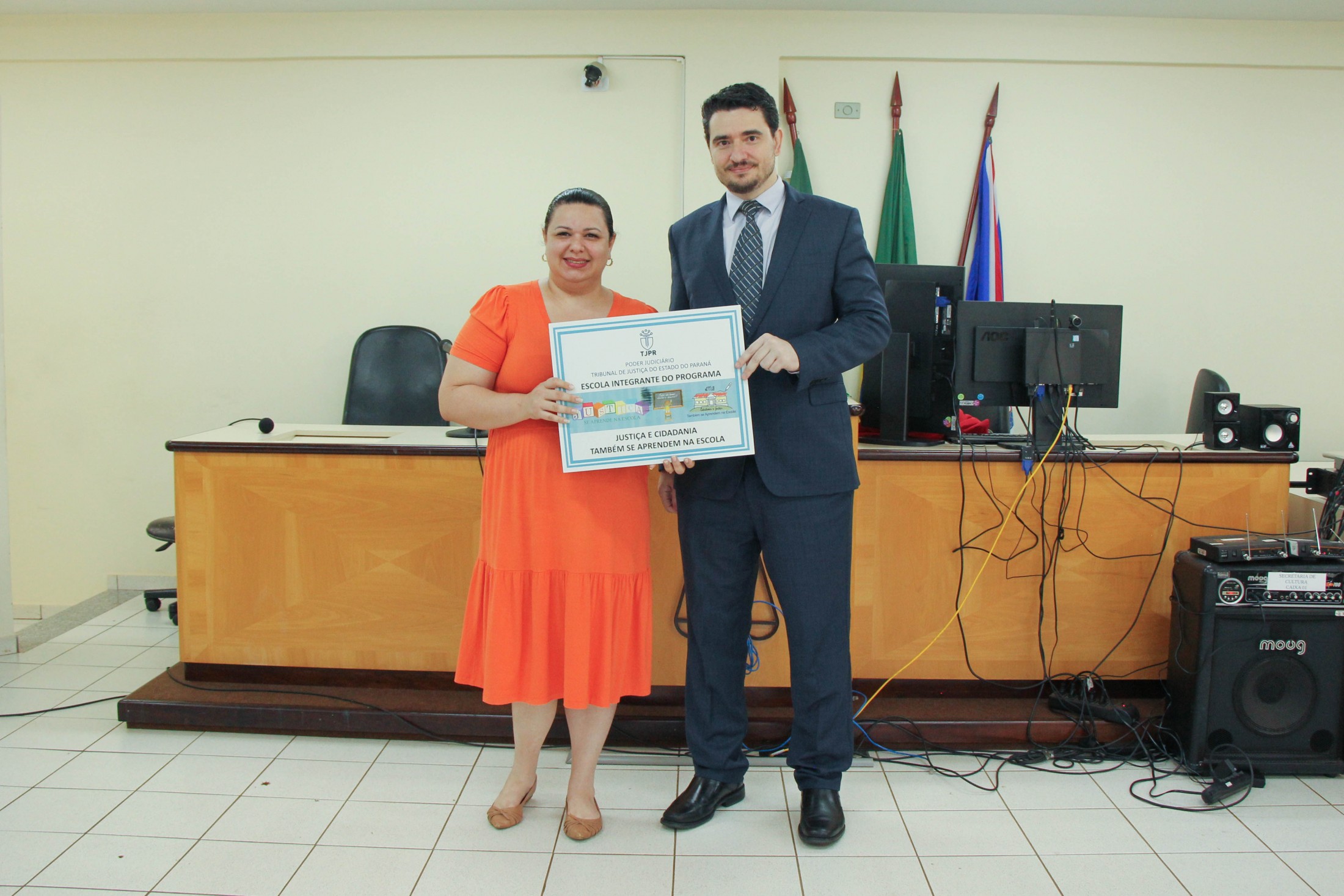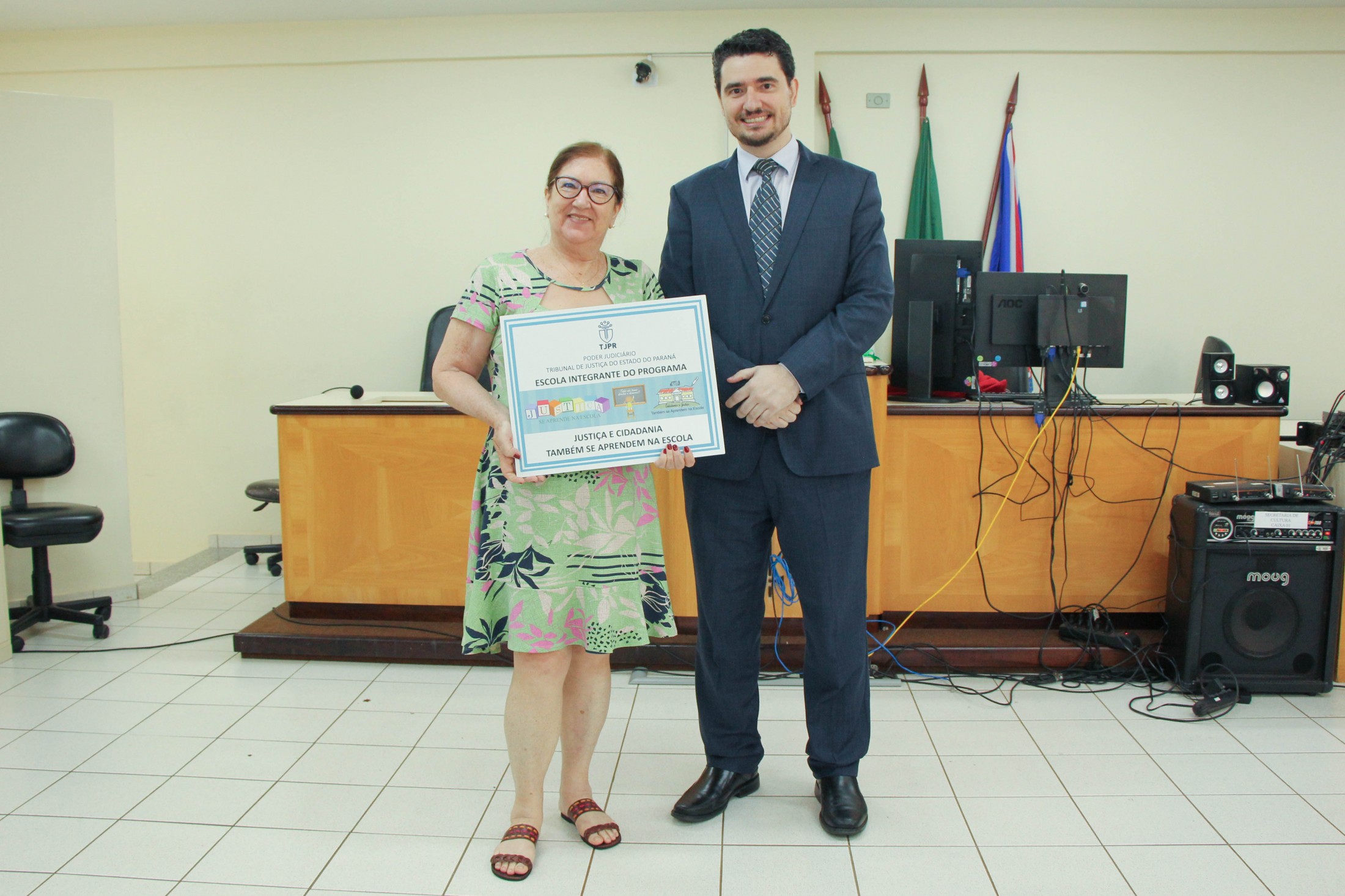A cerimônia contou, ainda, com o teatro “Justiça e Cidadania”, dos alunos do 5º ano B, da Escola Municipal Castro Alves; e um número de dança dos estudantes do 5º ano A, da Escola Municipal Jorge Moreira da Silva. Ao final, as diretoras das instituições de ensino receberam placas de participação no programa.