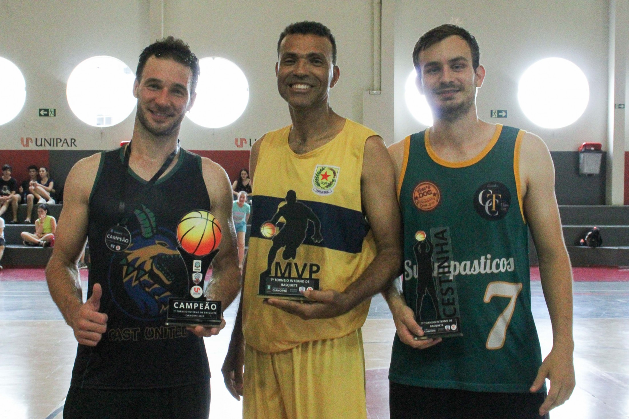 Cinco equipes, compostas por 10 atletas cada, disputaram a 7ª edição do Torneio Interno de Basquete Masculino da Secretaria Municipal de Esporte e Lazer (SMEL) em parceria com a Unipar. O jogos que definiram a classificação final foram realizados na tarde do último sábado (10), no Complexo Esportivo da universidade. Em terceiro lugar ficou a The Old; em segundo a Vasco da Gama e a campeã foi a Cast United. Também receberam troféus os jogadores destaques, sendo o cestinha, José Pedro Paes Dalazoana, e o MVP, Celso Monteiro da Rocha.