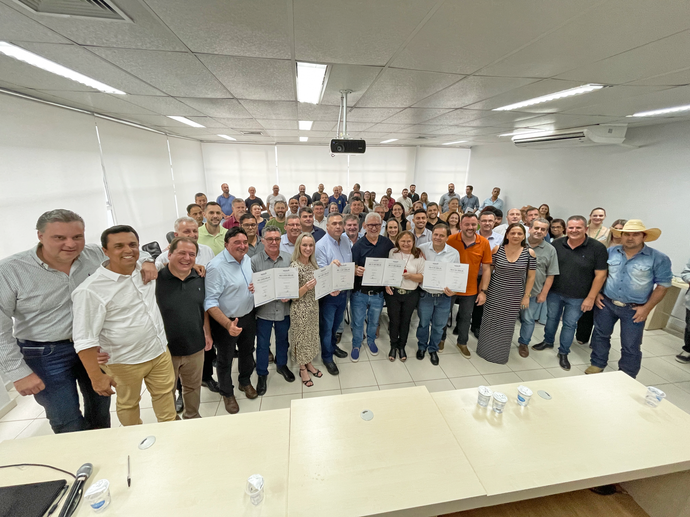 PRESENÇAS – Participaram do evento o presidente da Associação dos Municípios do Médio Noroeste do Estado do Paraná (Amenorte) e prefeito de São Manoel do Paraná, Agnaldo Trevisan; o presidente da Câmara de Vereadores de Cianorte, Wilson Luiz Peres Pedrão; o secretário municipal de Saúde de Cianorte, Neilson Etanio de Sousa; a chefe interina da 13ª Regional de Saúde, Sandra Cristina Lima Vieira Santana de Farias; o presidente da Comunidade dos Municípios da Região de Campo Mourão (Comcam) e prefeito de Araruna, Leandro César de Oliveira; prefeitos e secretários municipais da região.