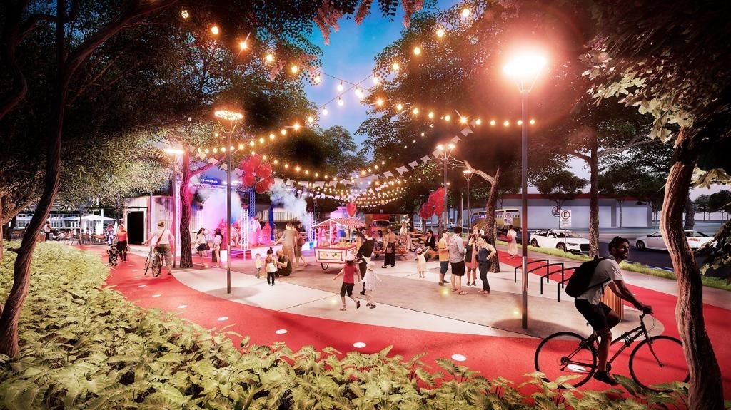 O local ganhará áreas de lazer e social, com calçamento em piso intertravado de concreto no entorno de toda a praça; espaço para food truck; nova iluminação composta por postes, luminárias e refletores; mural de alvenaria; espelho d’água; e fonte interativa luminosa com 17 jatos d’água e LED. Também serão executadas oito rampas de acessibilidade e um novo paisagismo, com árvores das espécies palmeira-imperial, alecrim-de-campinas, pau-ferro, ipê amarelo e oiti, além de arbustos, herbáceas e forrações.