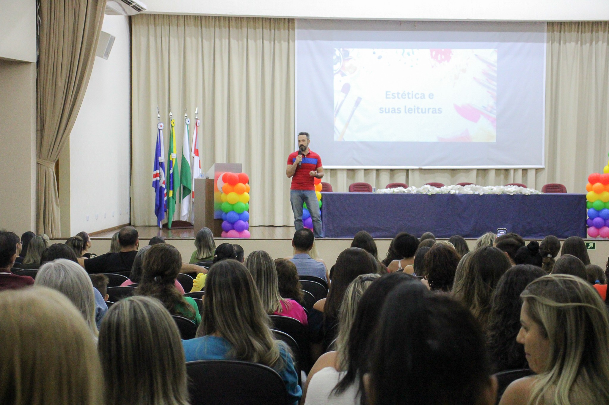 Durante o evento, foi realizada a entrega simbólica dos materiais que serão utilizados junto aos novos componentes curriculares. Na sequência, o professor Dr. Flávio Rodrigues Campos, que é o formador e orientador dos trabalhos com os docentes de Língua Inglesa e Tecnologia e Inovação, ministrou a palestra “Tessituras de uma educação emergente: fronteiras e o cidadão global”. Para finalizar, a atriz, apresentadora, youtuber, contadora de histórias e Especialista em Literatura Infantil e Juvenil, Flávia Scherner, a “Fafá Conta”, que também é formadora e orientadora do trabalho com os professores de Literatura Infantil, prestigiou a plateia com algumas histórias.