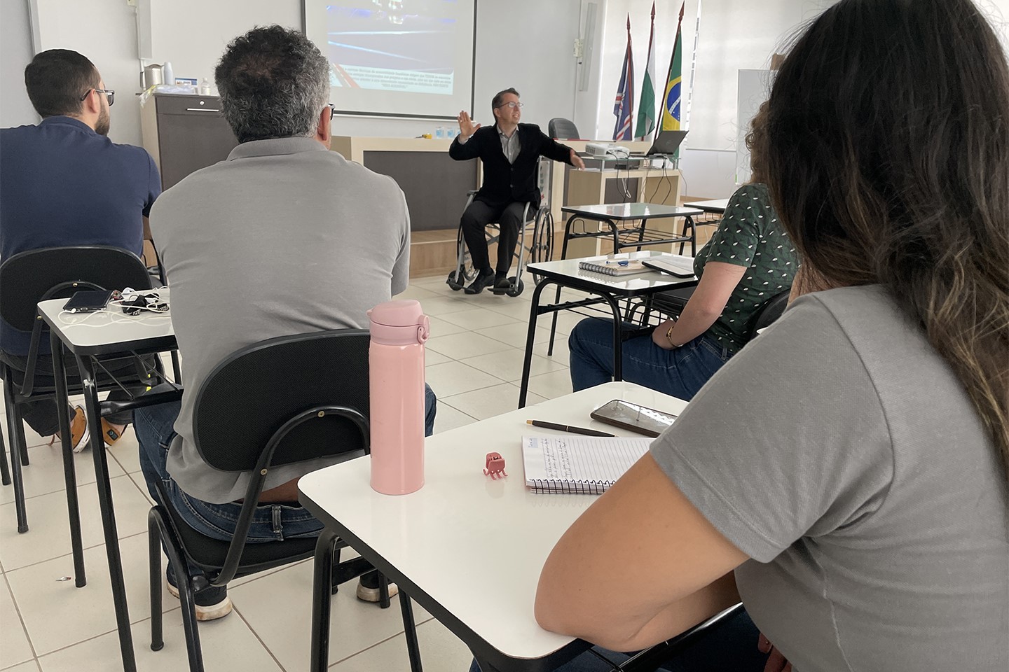 No primeiro dia de capacitação, além da parte teórica, de aprofundamento sobre as principais normas técnicas, (NBRs 9050/2020 e 16537/2016), decretos federais, a lei brasileira de inclusão e o estatuto da pessoa com deficiência, o grupo também participou de uma dinâmica. “Tivemos uma vivência utilizando equipamentos, como bengala de rastreamento; venda nos olhos; cadeira de rodas; muletas; pesos nas pernas; elásticos; óculos; e protetor auricular para simular pessoa com mobilidade reduzida. Foi muito interessante o debate sobre as experiências e dificuldades encontradas”, relatou a arquiteta da Secretaria de Desenvolvimento Urbano, Caroline de Andrade Cavalcante.