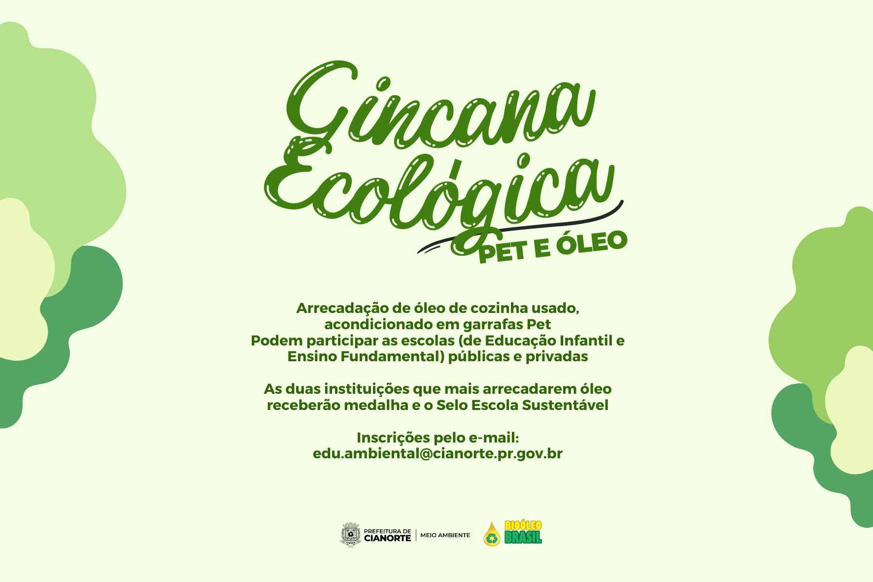 Com o objetivo de incentivar a prática da sustentabilidade entre os alunos da rede municipal e particular de ensino, a Prefeitura, por meio da Secretaria Municipal de Meio Ambiente e Bem-Estar Animal, em parceria com a empresa Bio Óleo Brasil promove, entre março e abril, a Gincana Ecológica “Pet e Óleo”. A ação consiste na arrecadação de óleo de cozinha usado e todo o valor adquirido pela venda do item será destinado ao Banco de Ração de Cianorte, conforme a Lei nº 5.388 de maio de 2022.