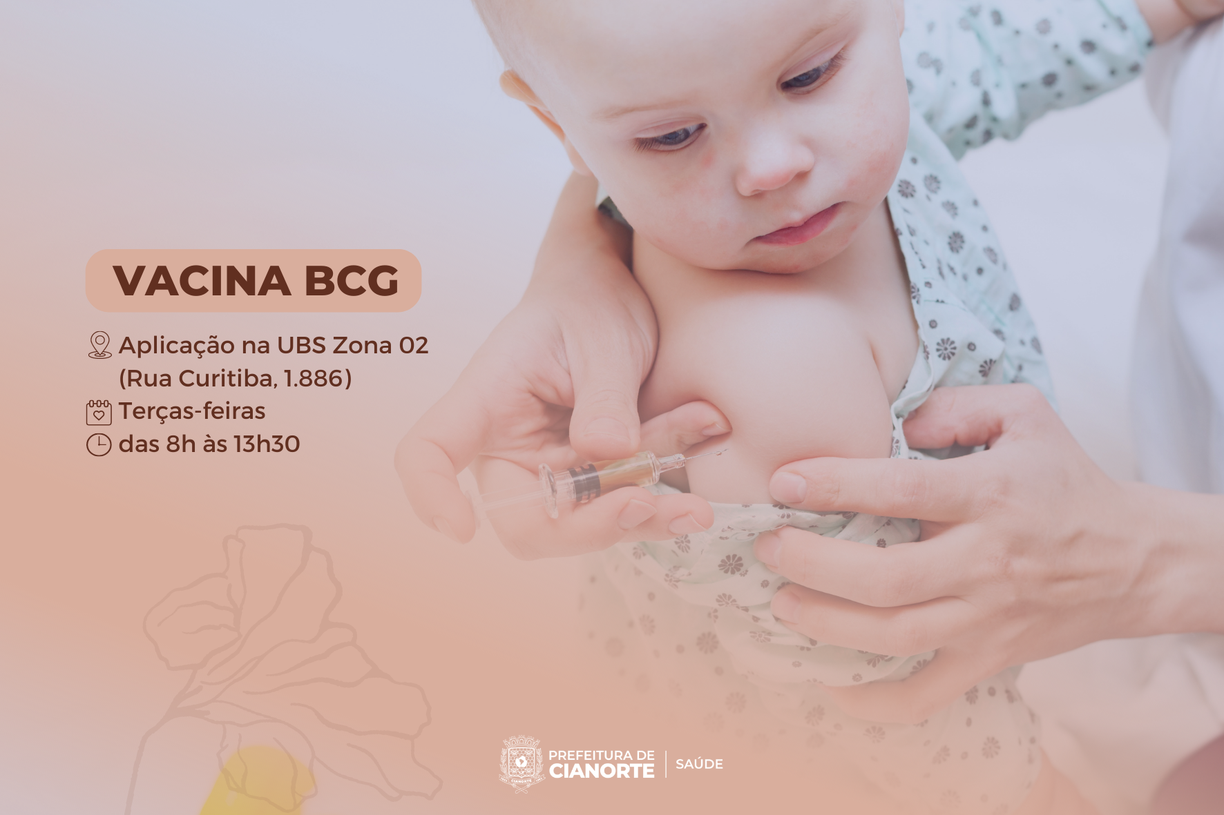 Os pais ou responsáveis dos recém-nascidos em Cianorte já podem se organizar para levar os bebês para receber a vacina BCG, que imuniza contra as formas graves da tuberculose. A aplicação havia sido temporariamente suspensa por falta de estoque e retorna às terças-feiras, a partir desta (21), na Unidade Básica de Saúde da Zona 02 (Rua Curitiba, 1.886), das 8h às 13h30.