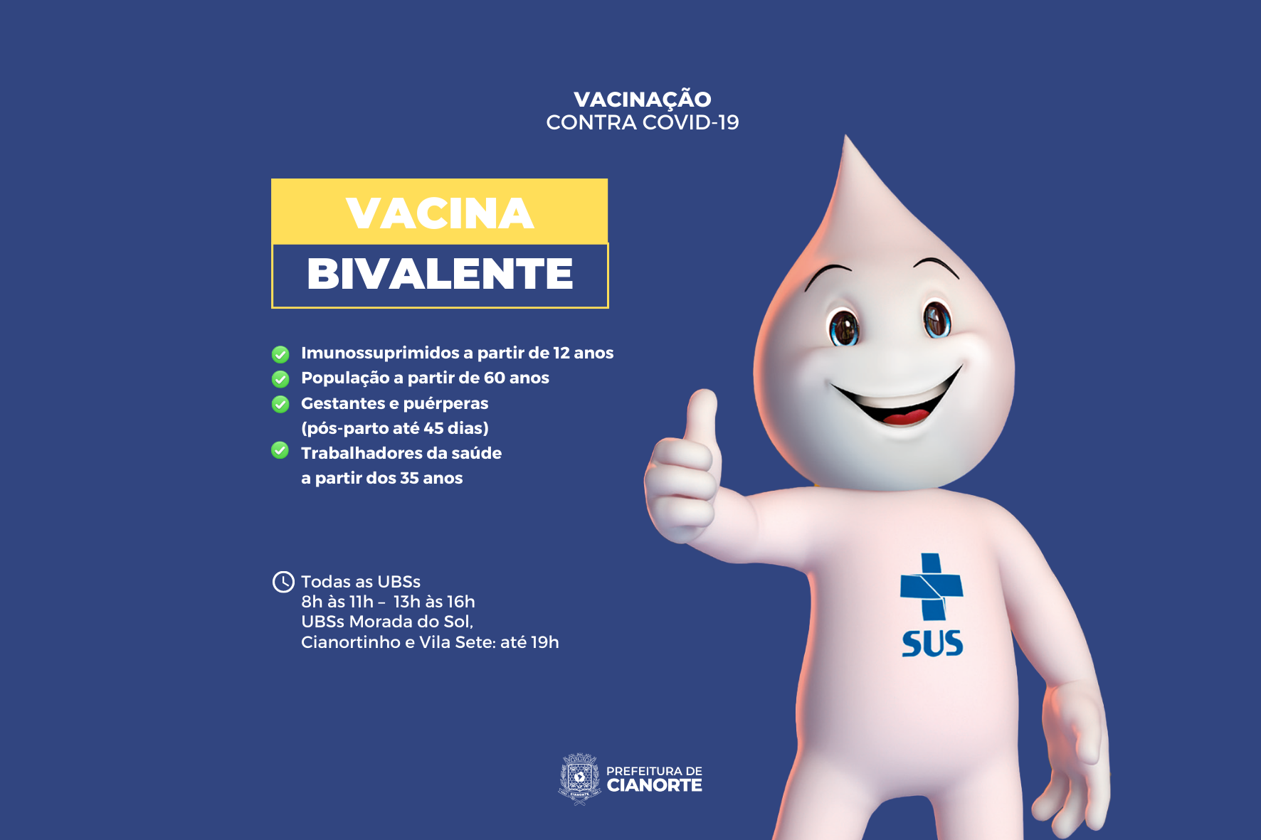 A ampliação dos grupos prioritários para a vacina bivalente ocorre gradualmente. Até o momento, no município e distritos, podem receber a dose: os imunossuprimidos com idade a partir dos 12 anos, população em geral a partir dos 60 anos, gestantes (independente do tempo gestacional), puérperas (pós-parto até 45 dias) e trabalhadores da saúde a partir dos 35 anos. É preciso ter, pelo menos, duas doses dos imunizantes anteriores e 120 dias de intervalo após a última.
