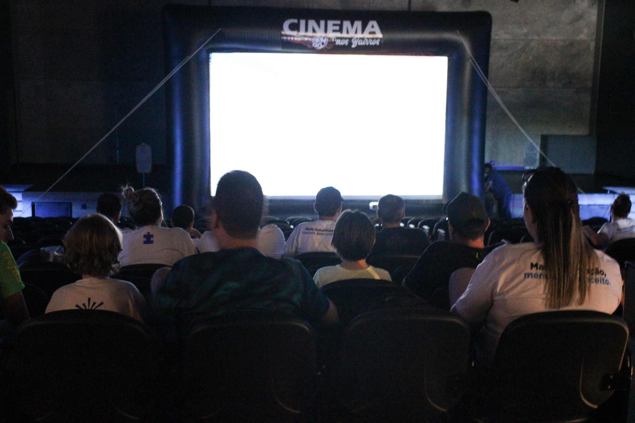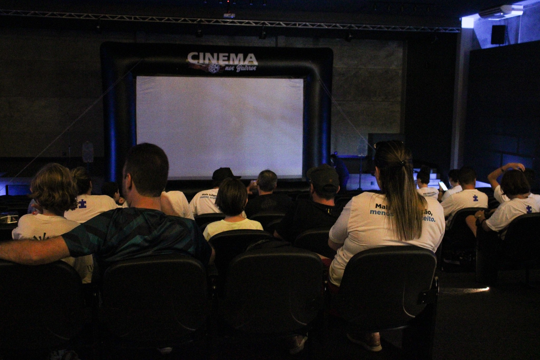 Na parte da tarde, aproximadamente 100 pessoas prestigiaram uma sessão de cinema adaptada da Pref Flix. A iniciativa da Secretaria Municipal de Cultura, gratuita, foi no auditório da FACEC e contou com ajuste de luminosidade e do volume e livre circulação da plateia. Na tela, o filme “Como treinar seu dragão 3”, com duração de 1h40.