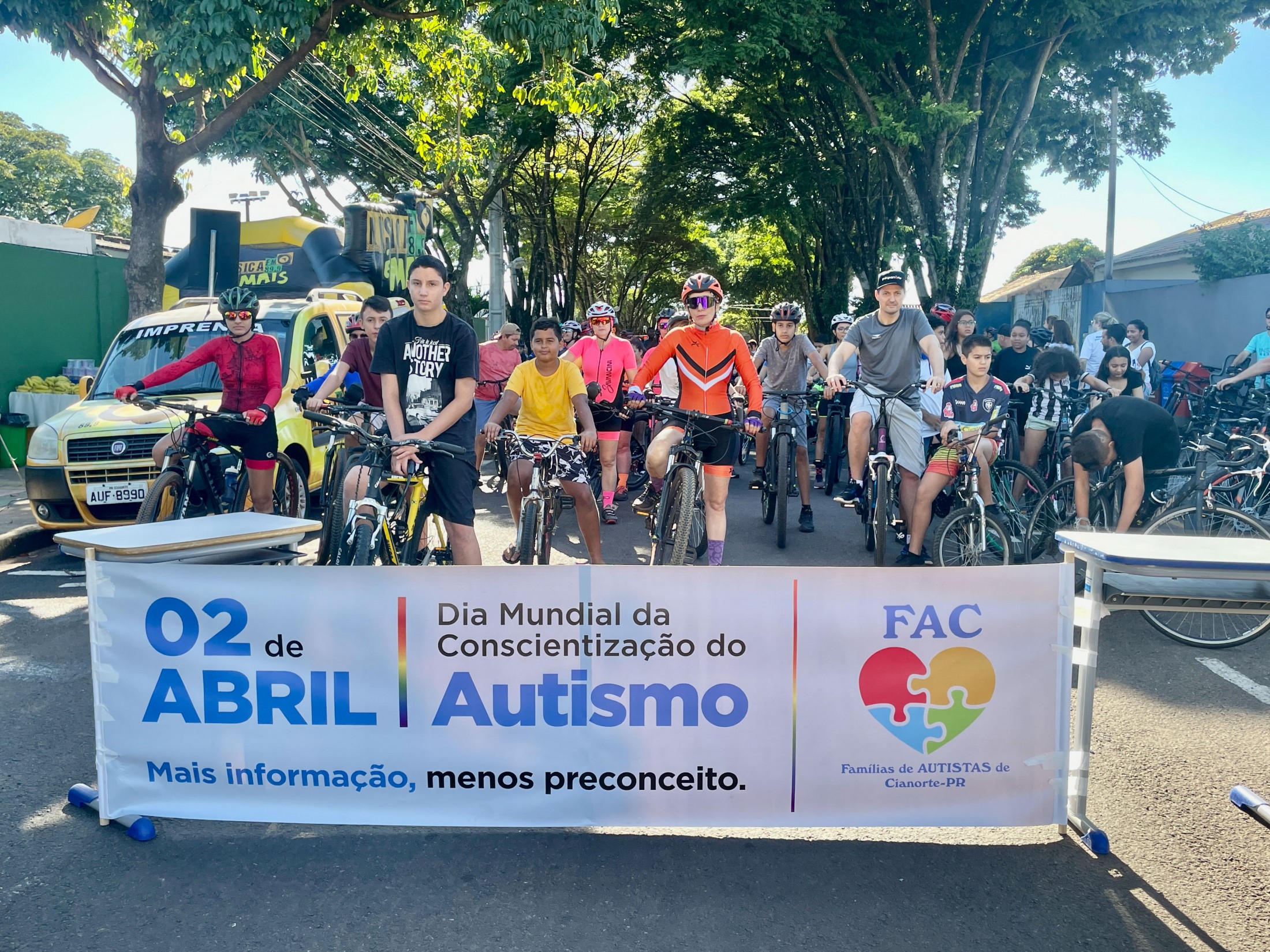 Em Cianorte, o primeiro fim de semana do mês que se inicia contou com mobilizações do Abril Azul, campanha de conscientização sobre o Transtorno do Espectro Autista (TEA). Representantes dos poderes Executivo e Legislativo, de órgãos estaduais, clínicas privadas, membros da sociedade civil organizada e familiares de autistas reuniram-se em três eventos: a passeata “Mais informação, menos preconceito”; a sessão de cinema da Pref Flix adaptada ao público com TEA; e o 1º Pedala Colégio Cívico-militar Primo Manfrinato. Os dois primeiros realizados no sábado (01) e, o último, no domingo (02).
