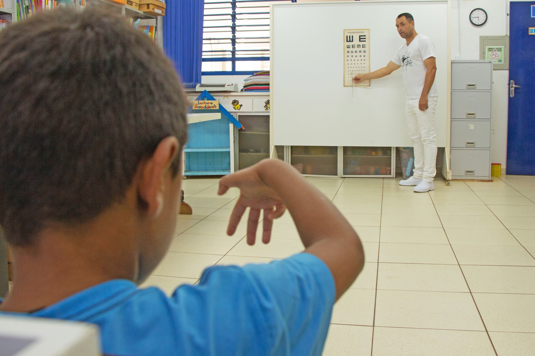 Os alunos da Escola Municipal João Bueno de Godoy, em Vidigal, passaram por avaliações de acuidade visual, na tarde desta segunda-feira (03). A instituição de ensino foi a primeira a receber o Projeto Saúde Visual, que percorrerá todas as escolas municipais, com o objetivo de detectar problemas de visão. Na primeira tarde de avaliação, 32 estudantes foram atendidos.