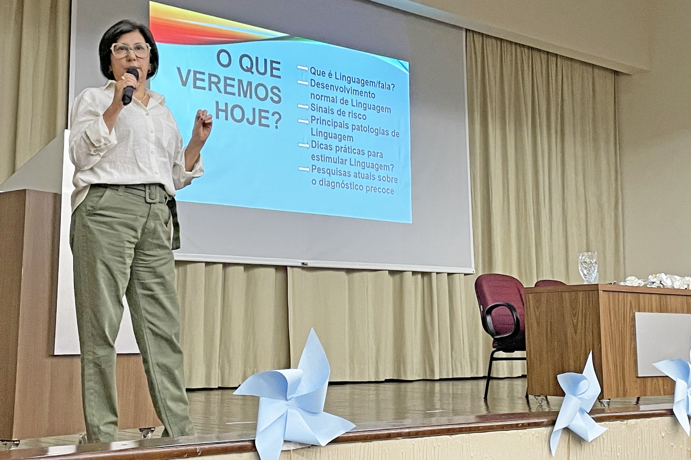 Já a segunda noite do simpósio foi aberta com a apresentação da música “Enrola”, de Cris Barulins, pela qual as crianças atendidas pelo CAPSi, sob a supervisão da terapeuta ocupacional e da psicopedagoga da instituição, envolveram e animaram toda a plateia na coreografia. Posteriormente, o advogado Antônio Augusto Ferreira Neto e a ativista da causa do autismo, Lilian Ferreira, ministraram a palestra “Legalmente Autista: Direitos da pessoa com TEA”, seguida pela “Sinais de risco e intervenção precoce para o atraso de linguagem”, com a fonoaudióloga Vania Sutil Guarezi. Encerrando os trabalhos, a terapeuta ocupacional Daiane Assunção dos Santos falou sobre “A terapia ocupacional no cuidado da pessoa com TEA”.
