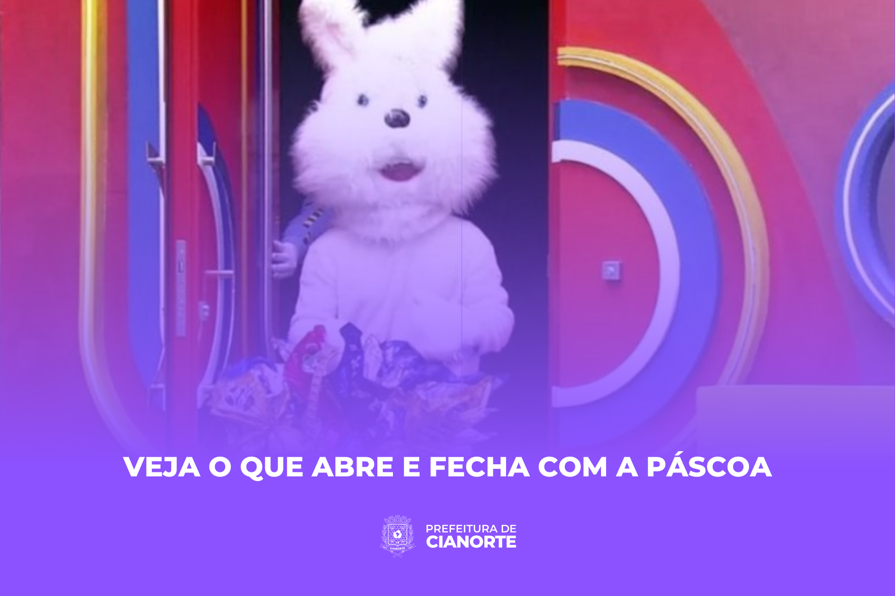 Em decorrência da Páscoa, uma das festividades mais importantes para o cristianismo, marcada para 09 de abril, a Prefeitura de Cianorte decretou feriado municipal para esta sexta-feira – Paixão de Cristo (07). Não haverá expediente nas repartições públicas municipais da Administração Direta e Indireta, com retorno do expediente na segunda-feira (10).