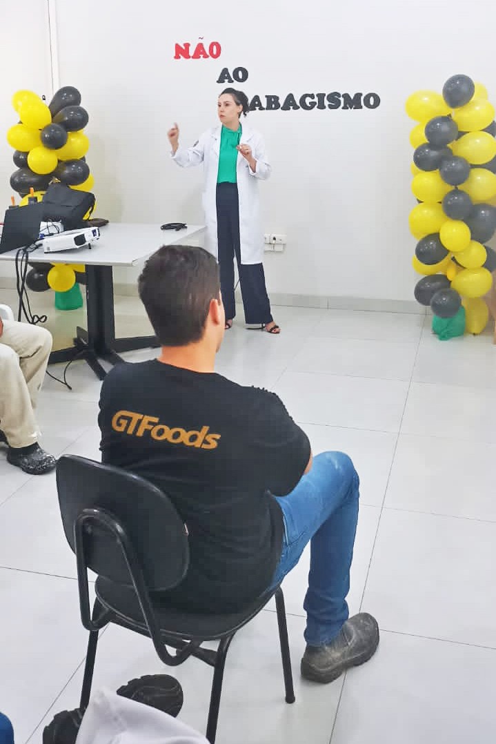 Uma parceria firmada entre a Secretaria Municipal de Saúde de Cianorte e a empresa Lorenz GT Foods levou o tema “Diga não ao tabagismo” para 65 colaboradores da indústria, distribuídos em três turnos, na última semana. A equipe, formada pelas nutricionistas Milena Costa e Isamara Póvoa, pela enfermeira Héglen Cássia Nicolau e pela psicóloga Ana Cristina Araújo, apresentou os malefícios do cigarro para a saúde, dicas de como abandonar o vício e também divulgou os grupos de combate ao tabagismo desenvolvidos pela secretaria.